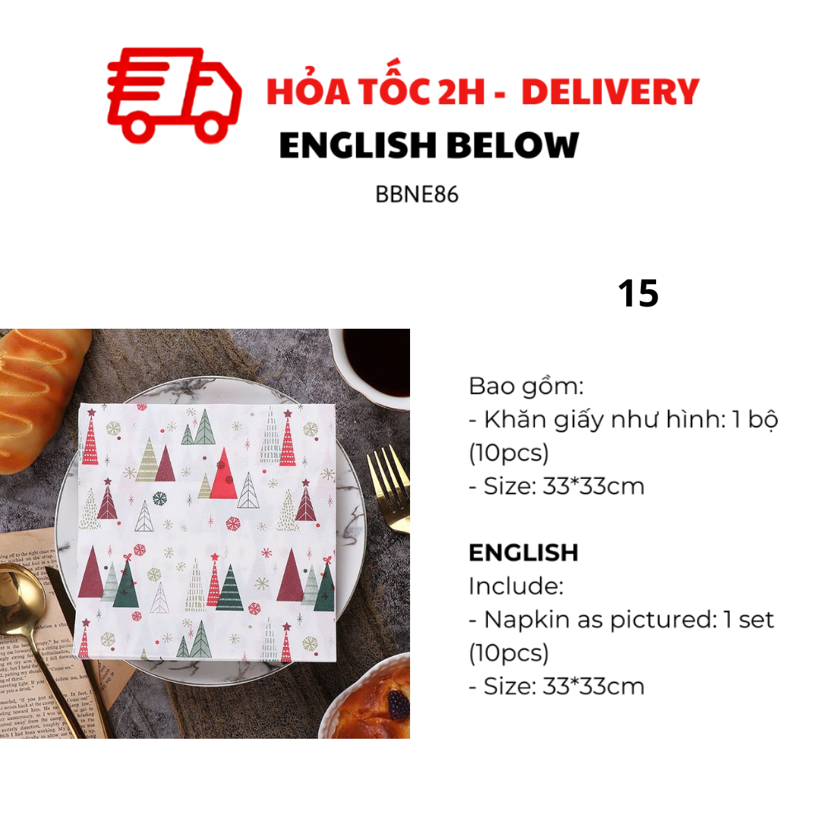 - Napkins as pictured: 1 set (10pcs)