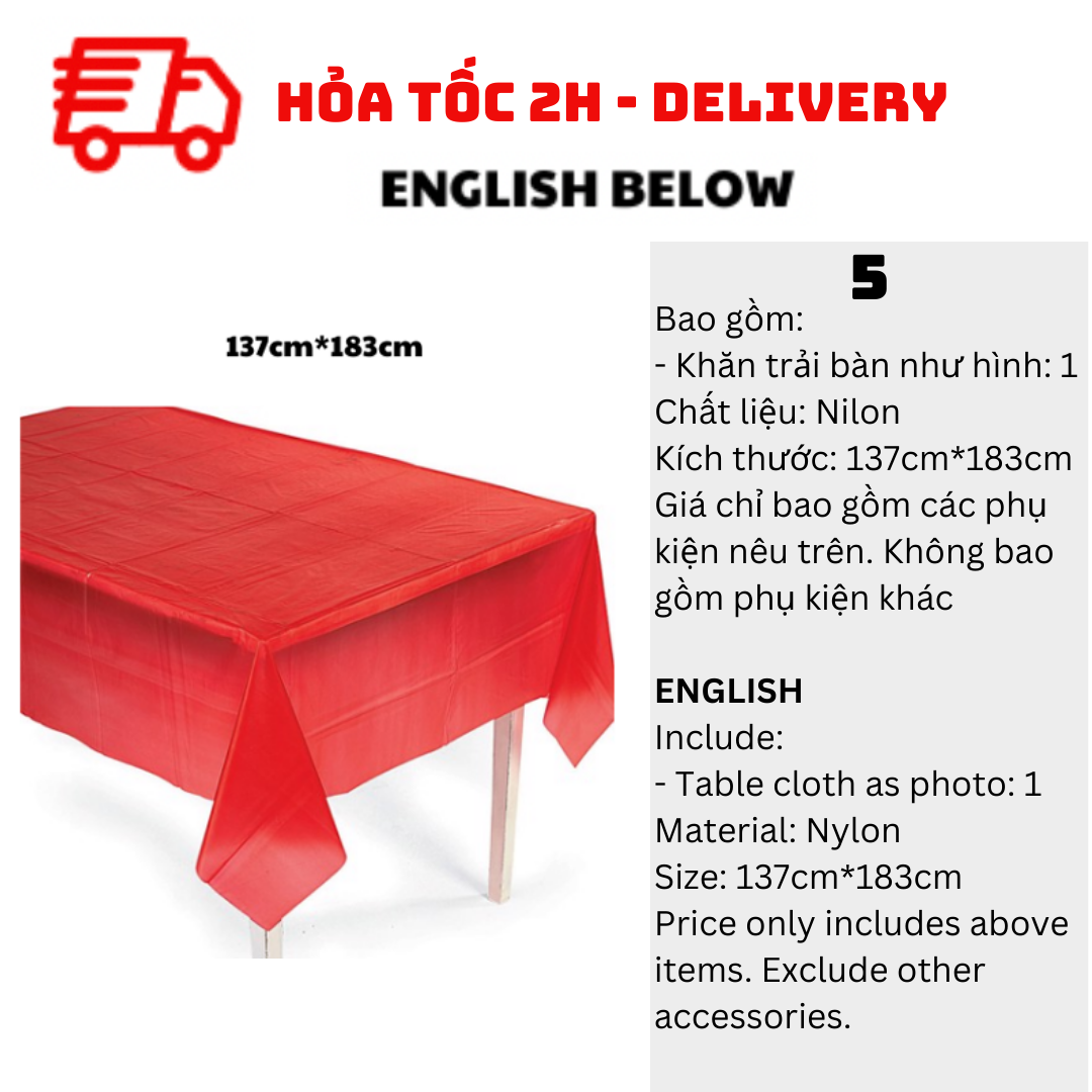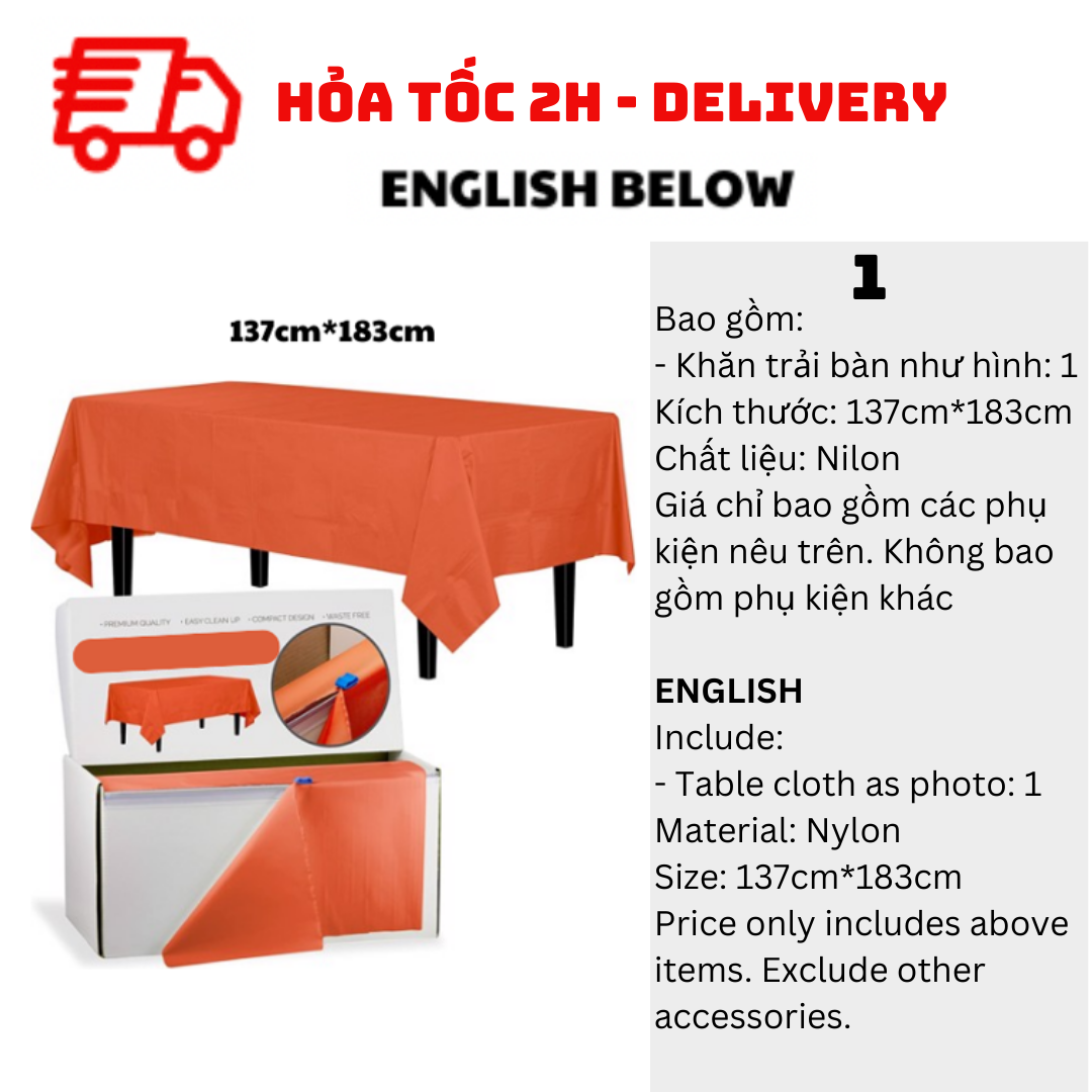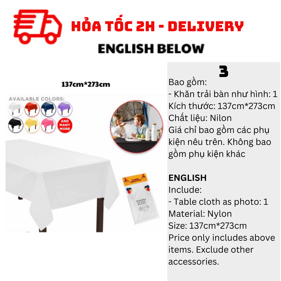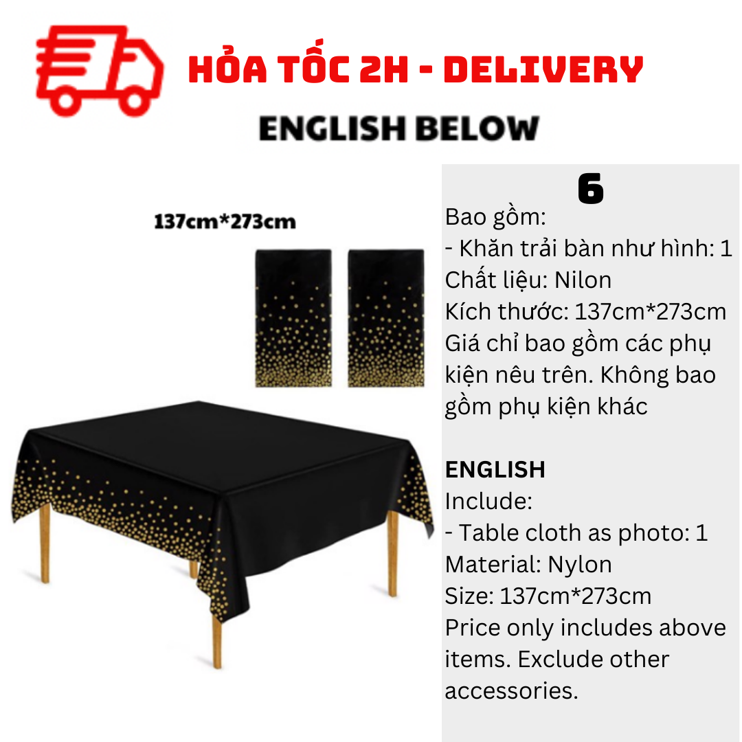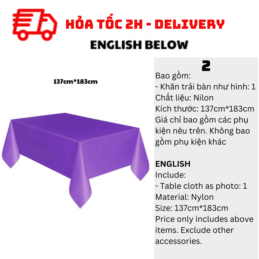 Lưu ý: Giá chỉ bao gồm khăn trải bàn. Không bao gồm phụ kiện khác