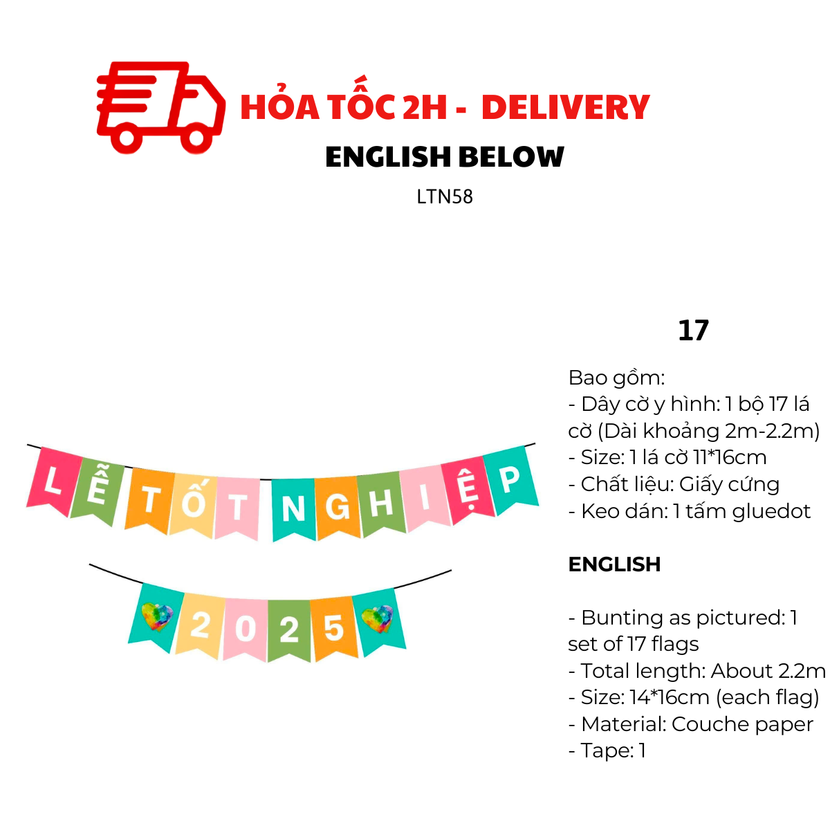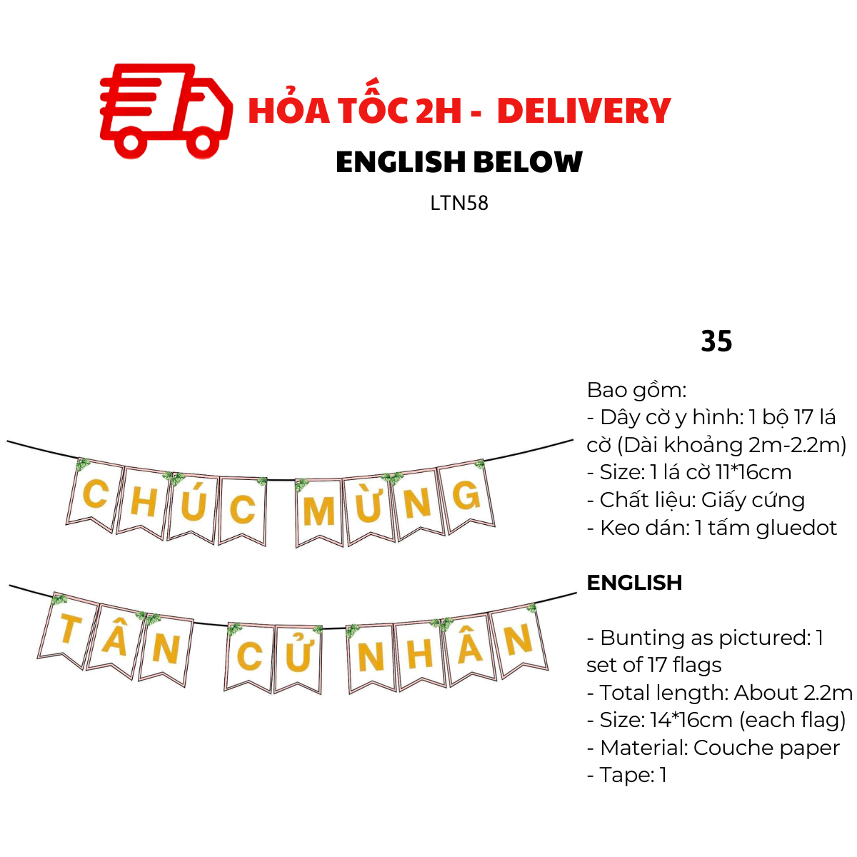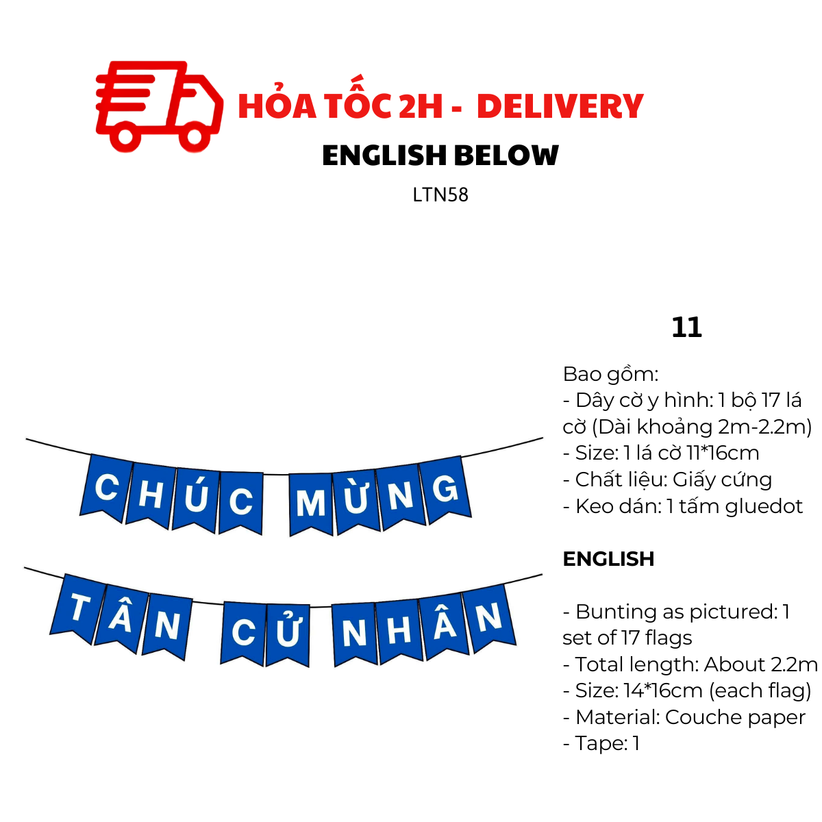 - Dây cờ y hình: 1 bộ 17 lá cờ (Dài khoảng 2m-2.2)
