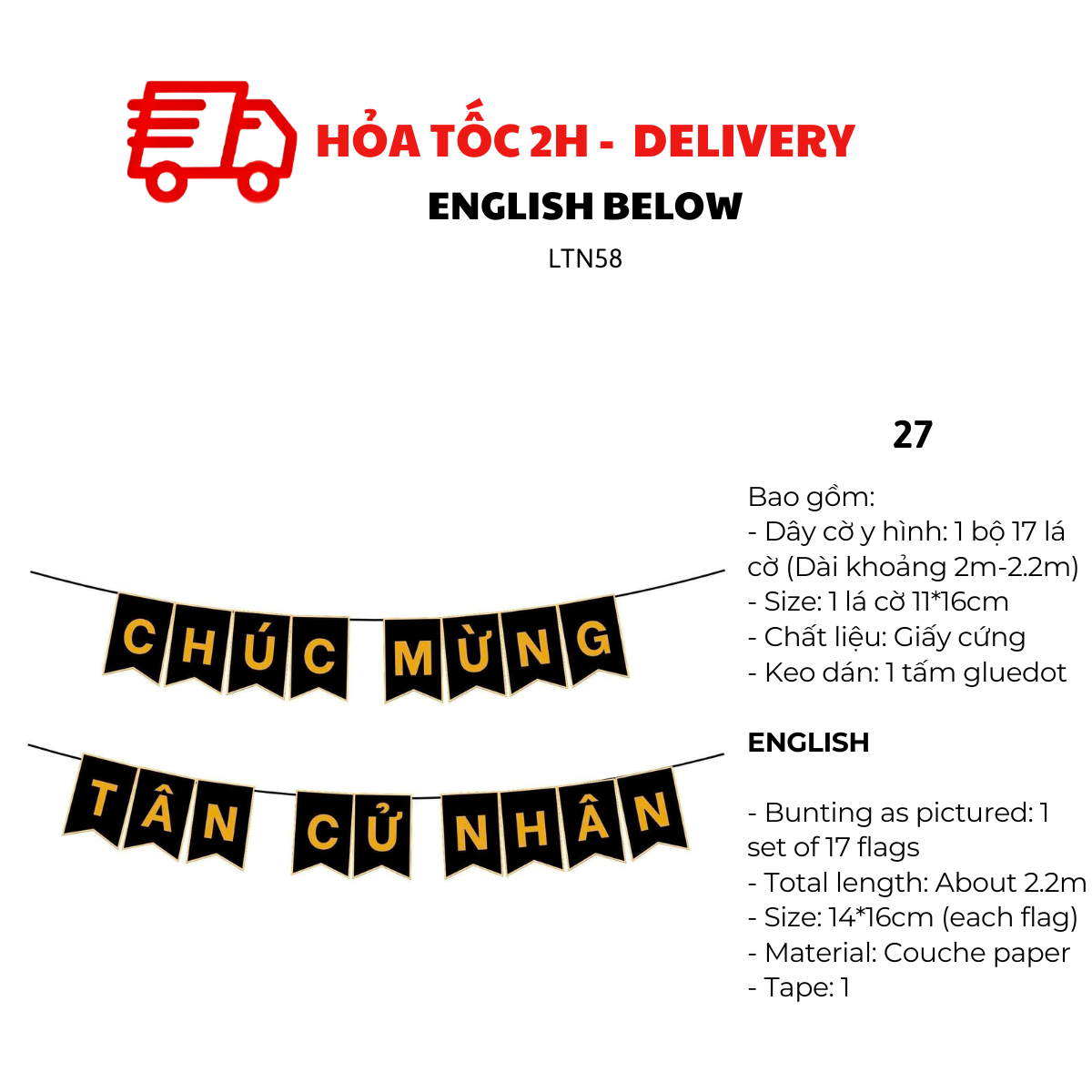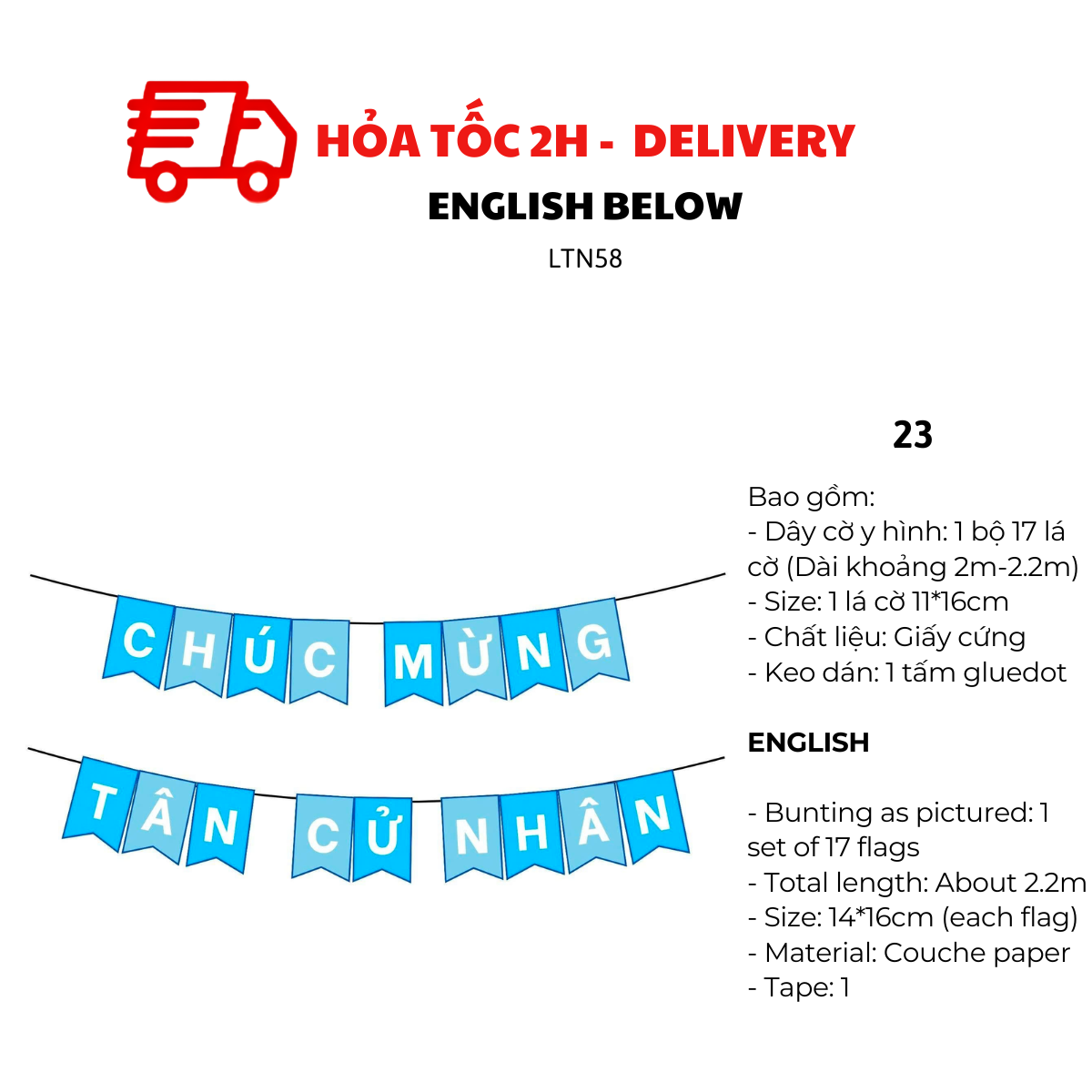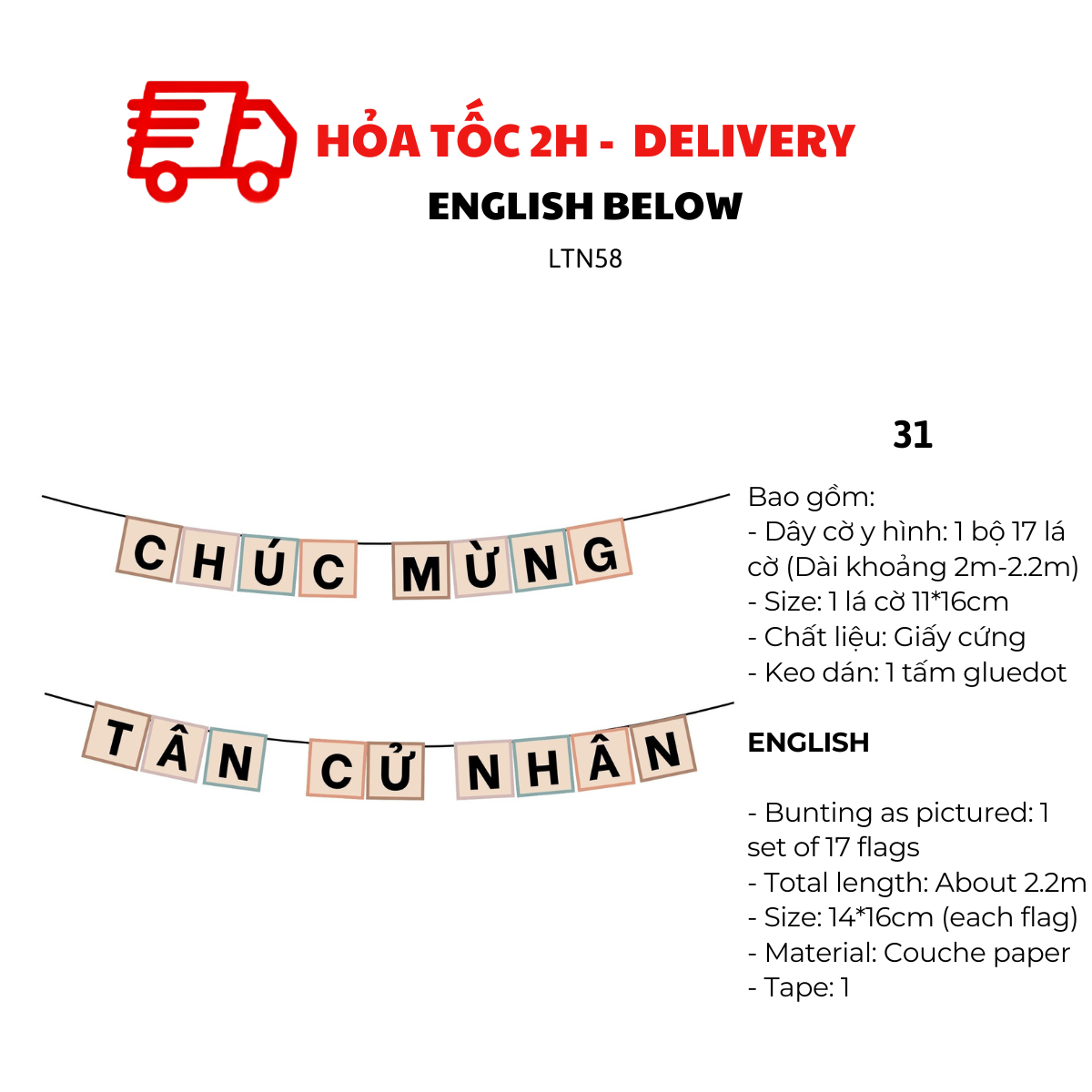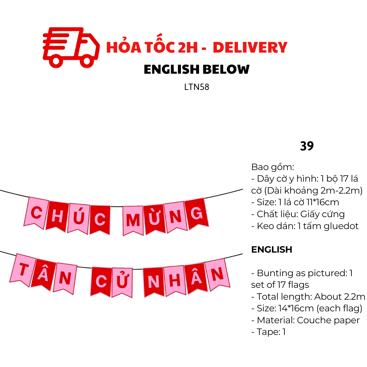 - Dây cờ y hình: 1 bộ 17 lá cờ (Dài khoảng 2m-2.2)