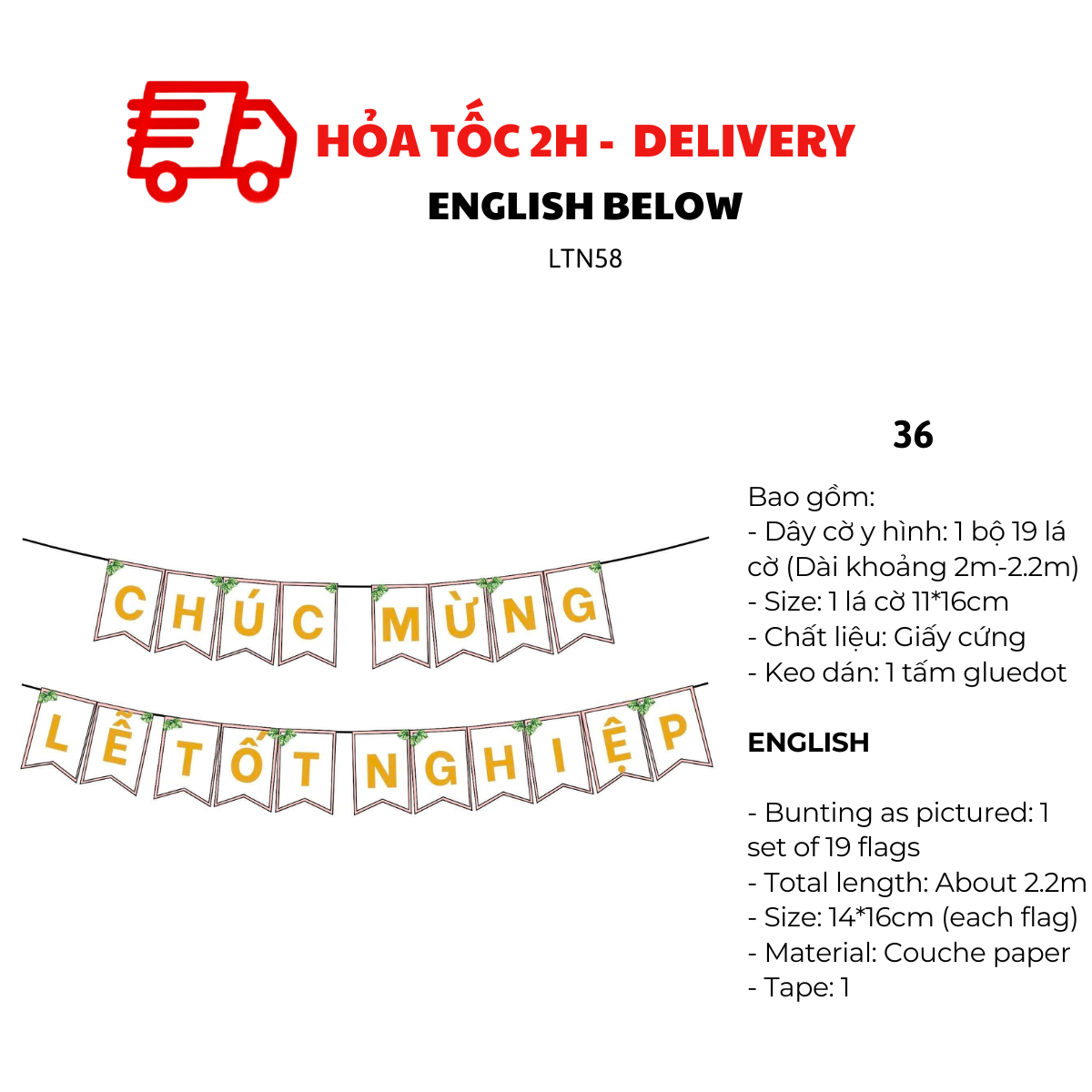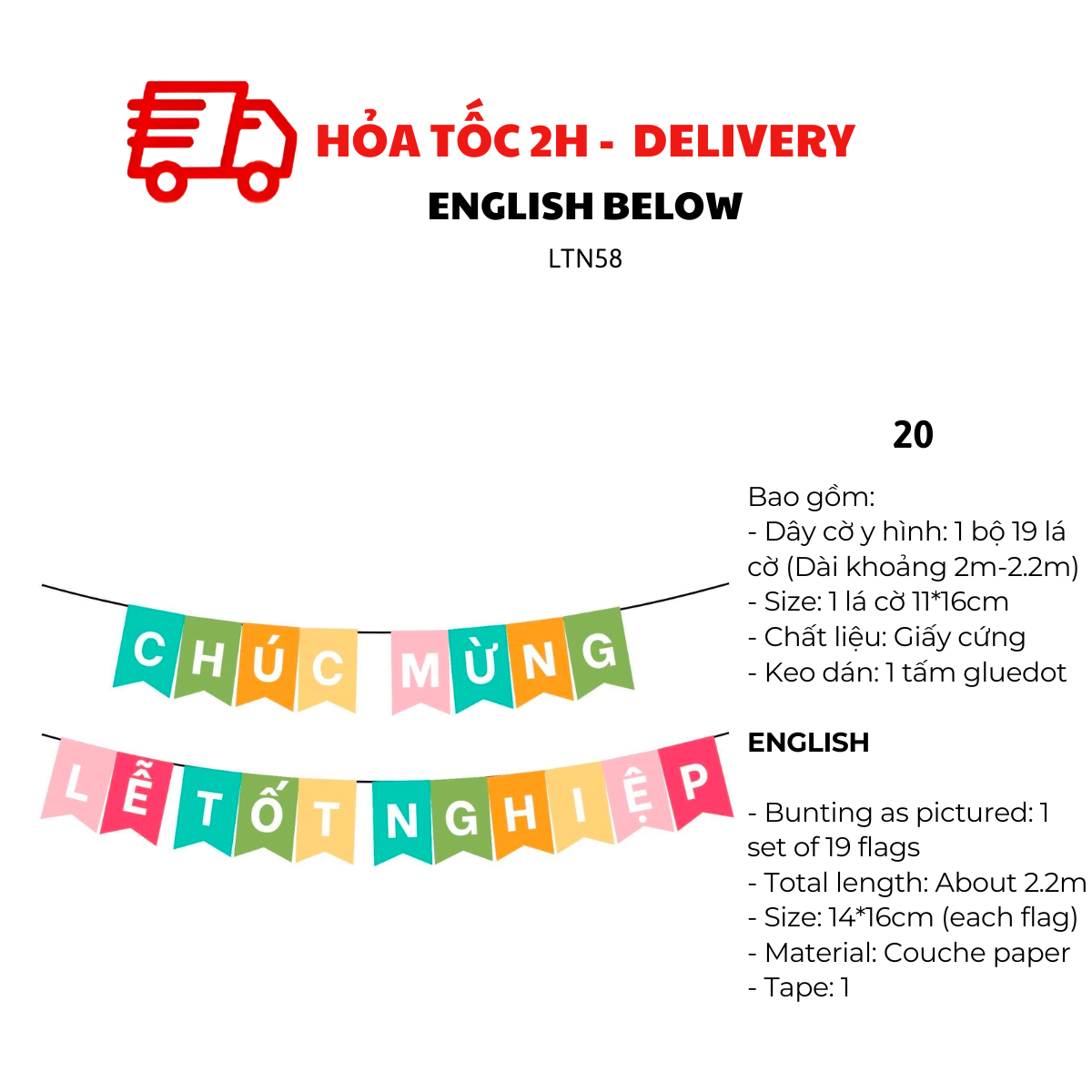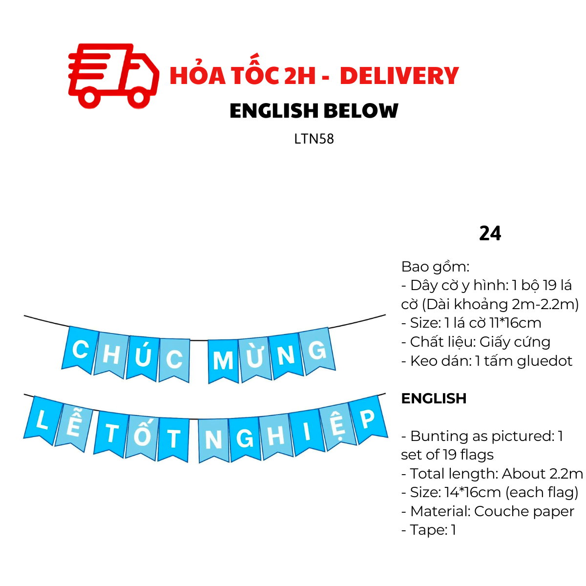 - Dây cờ y hình: 1 bộ 19 lá cờ (Dài khoảng 2m5)