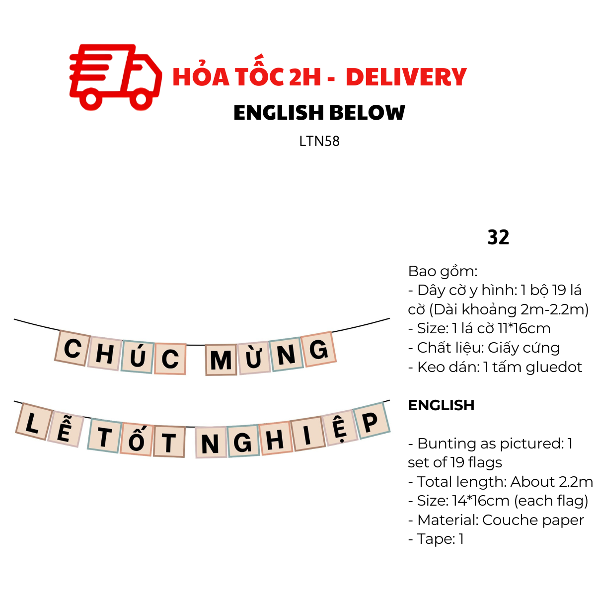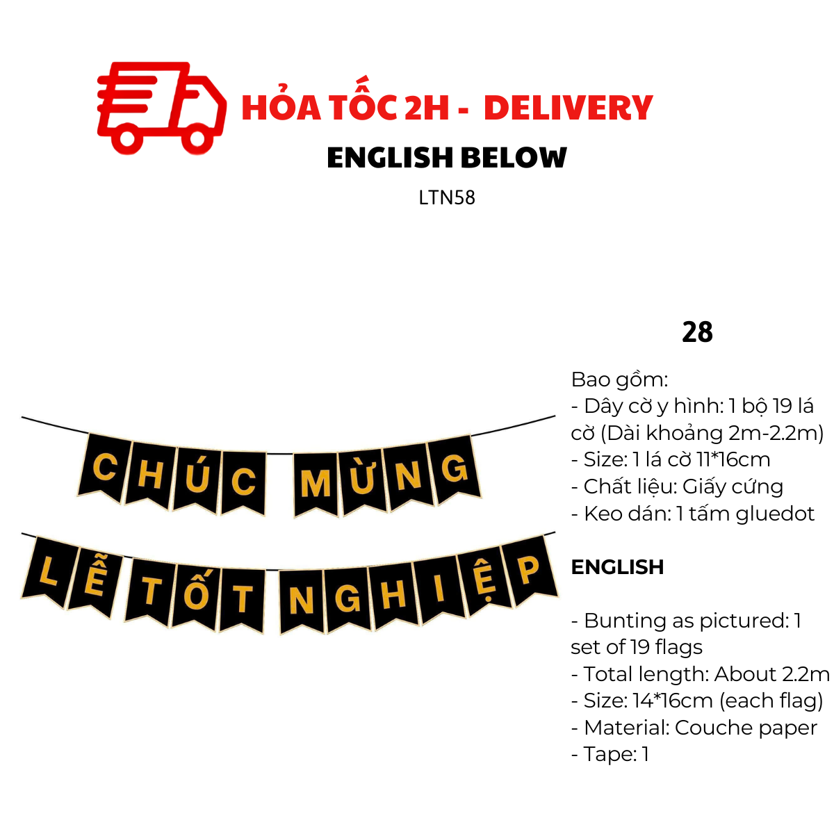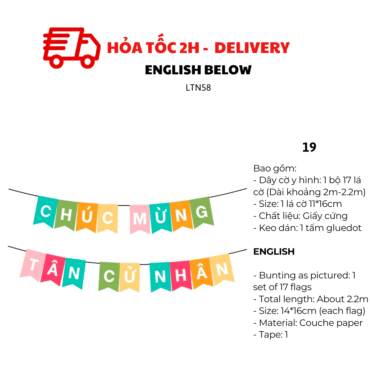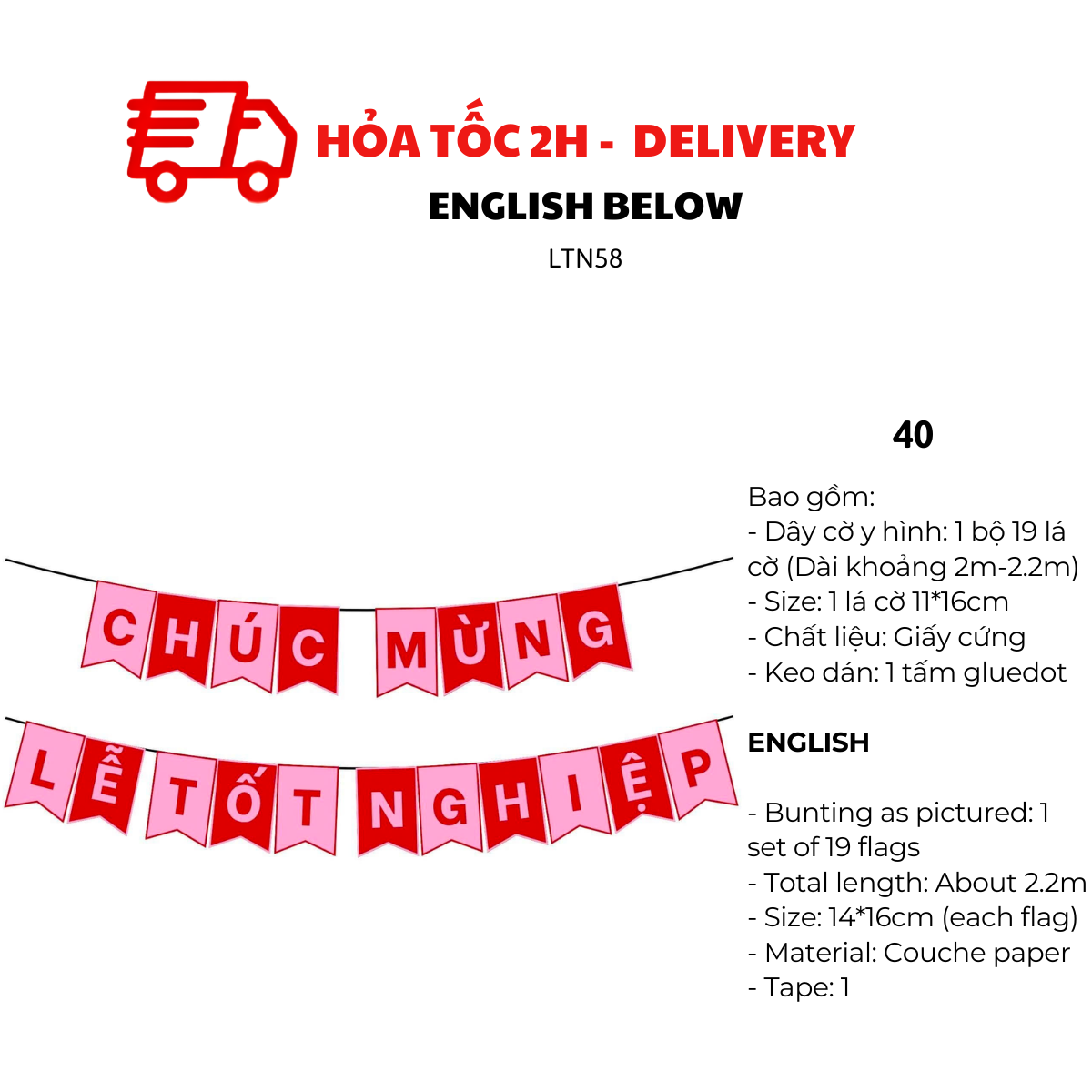 - Dây cờ y hình: 1 bộ 19 lá cờ (Dài khoảng 2m5)