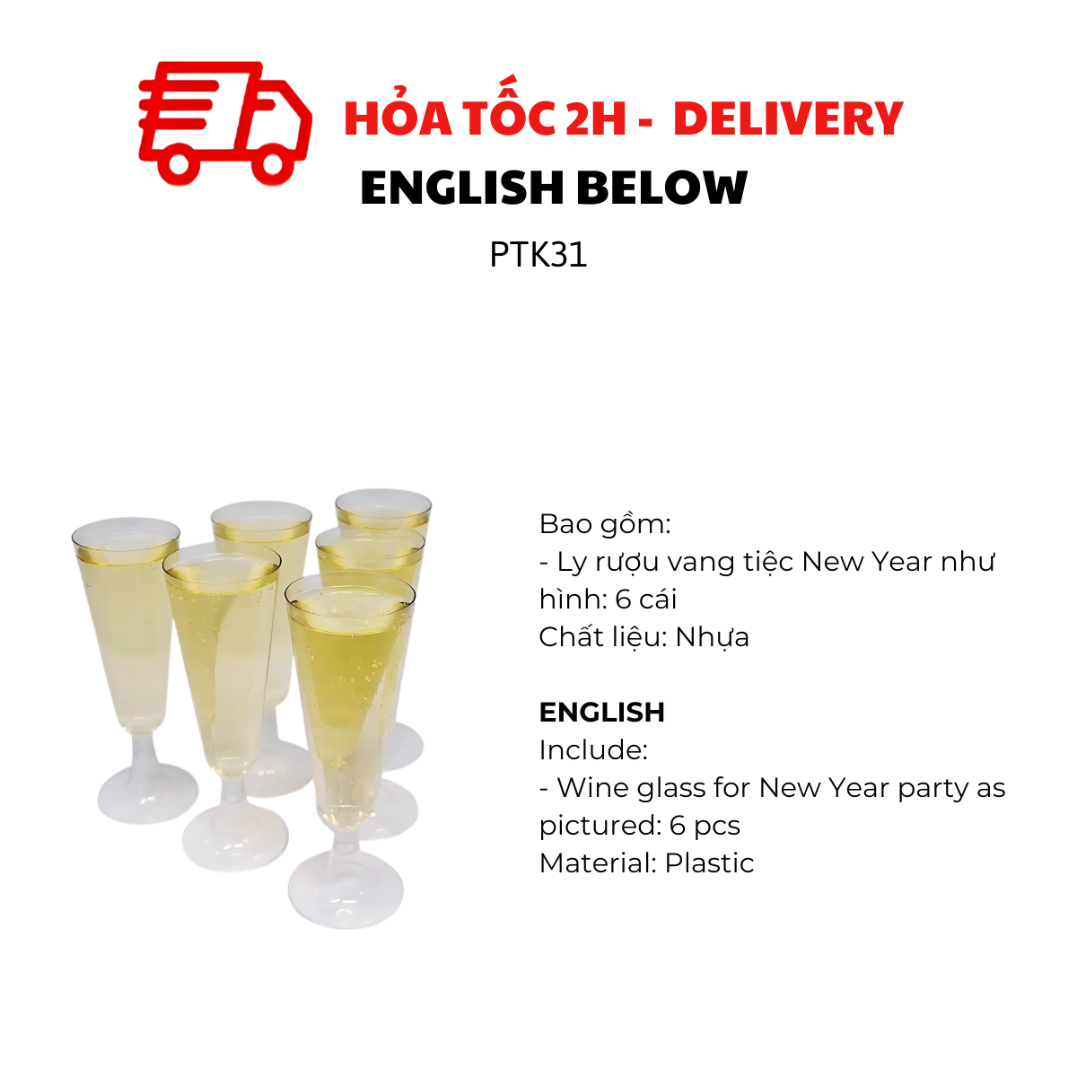 1. Ly rượu vang tiệc New Year: 1 bộ 6 ly