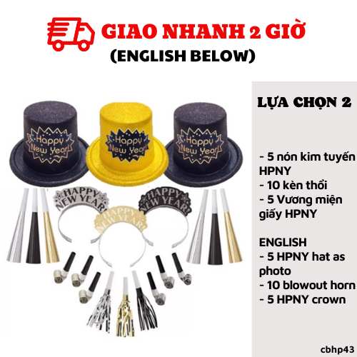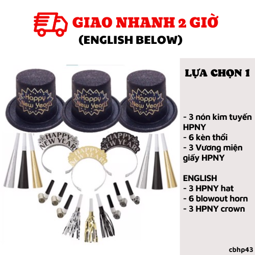 LỰA CHỌN 2: BỘ COMBO NÓN HAPPY NEW YEAR GIÀNH CHO 10 KHÁCH