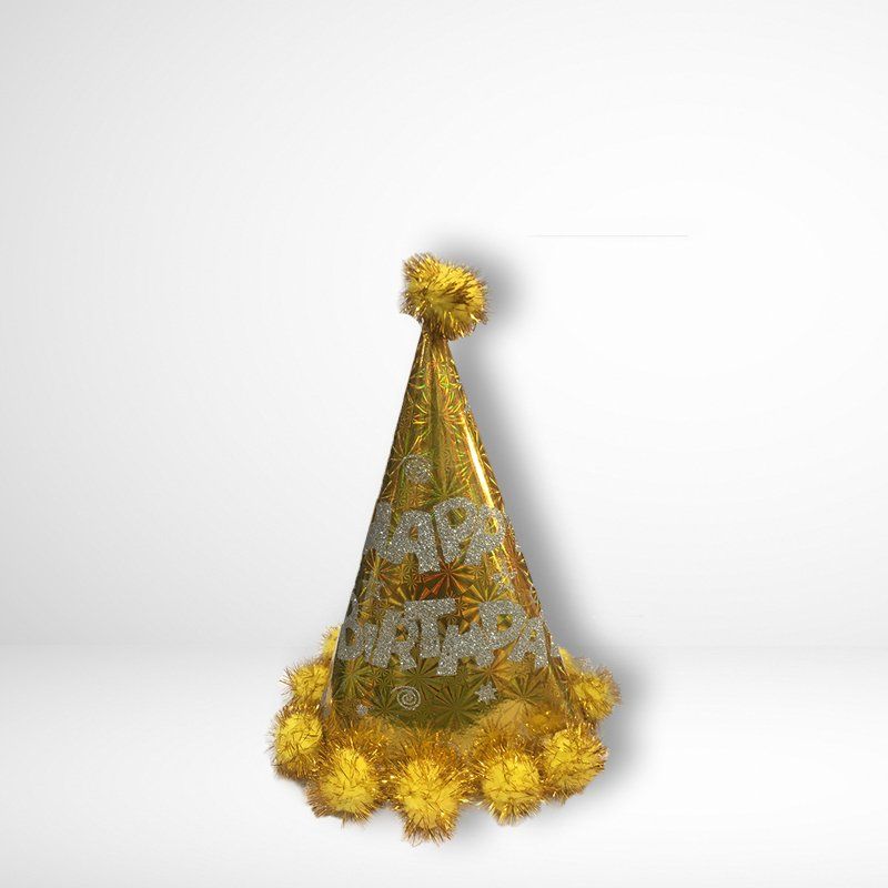 Nón Happy Birthday Bằng Giấy Gắn Bóng Vàng