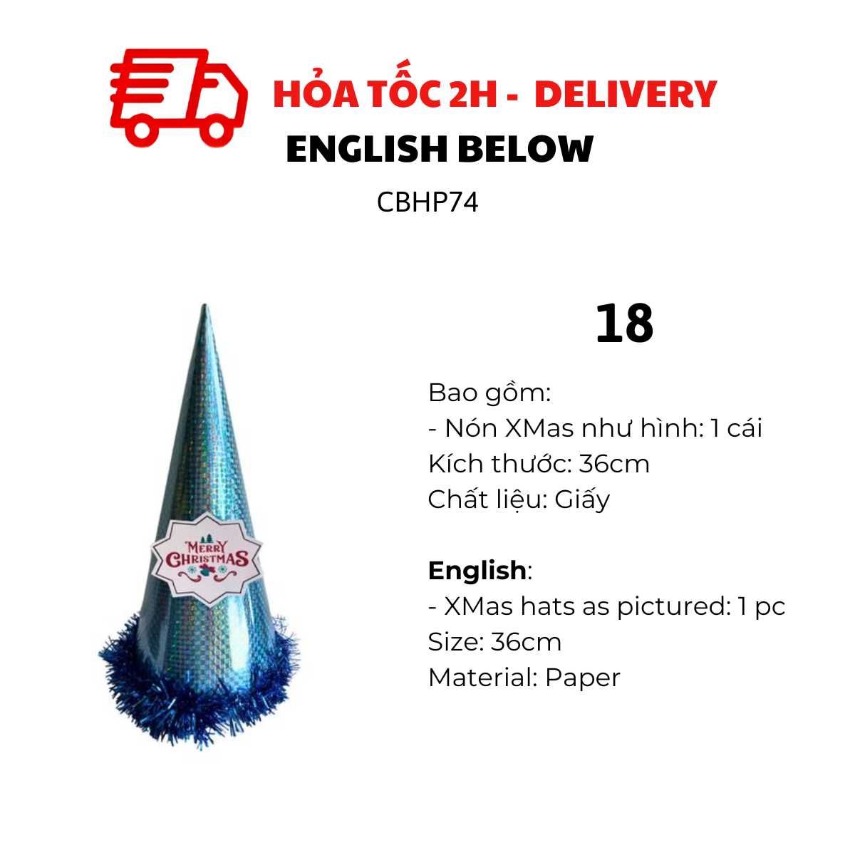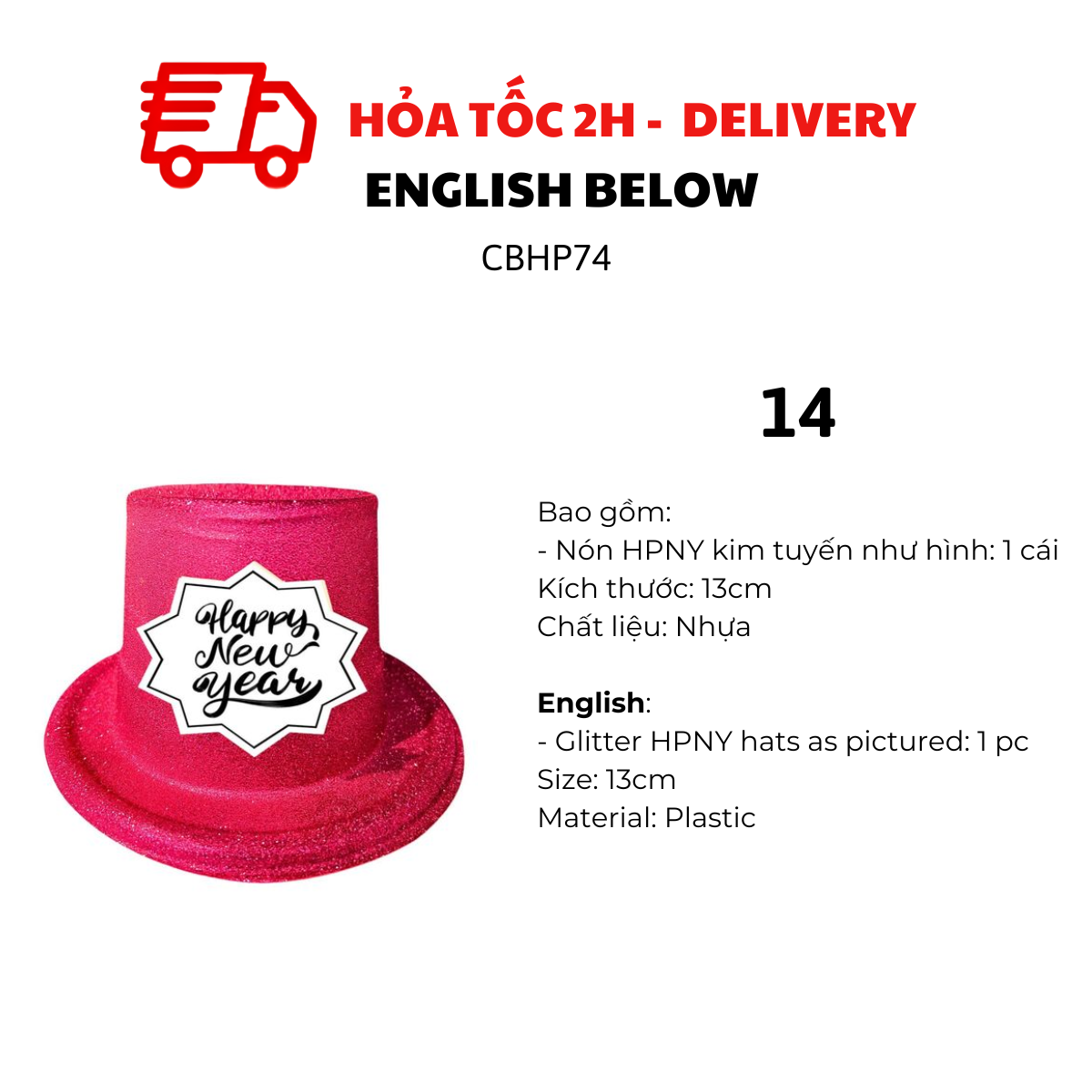 - HPNY or Xmas hats as pictured: 1 pc