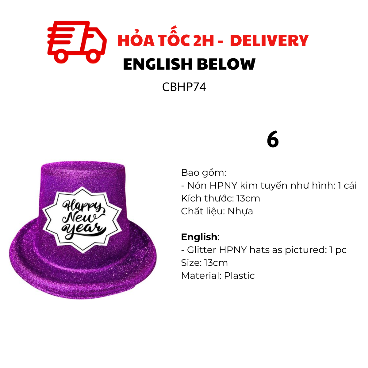 - Glitter HPNY or Xmas hats as pictured: 1 pc