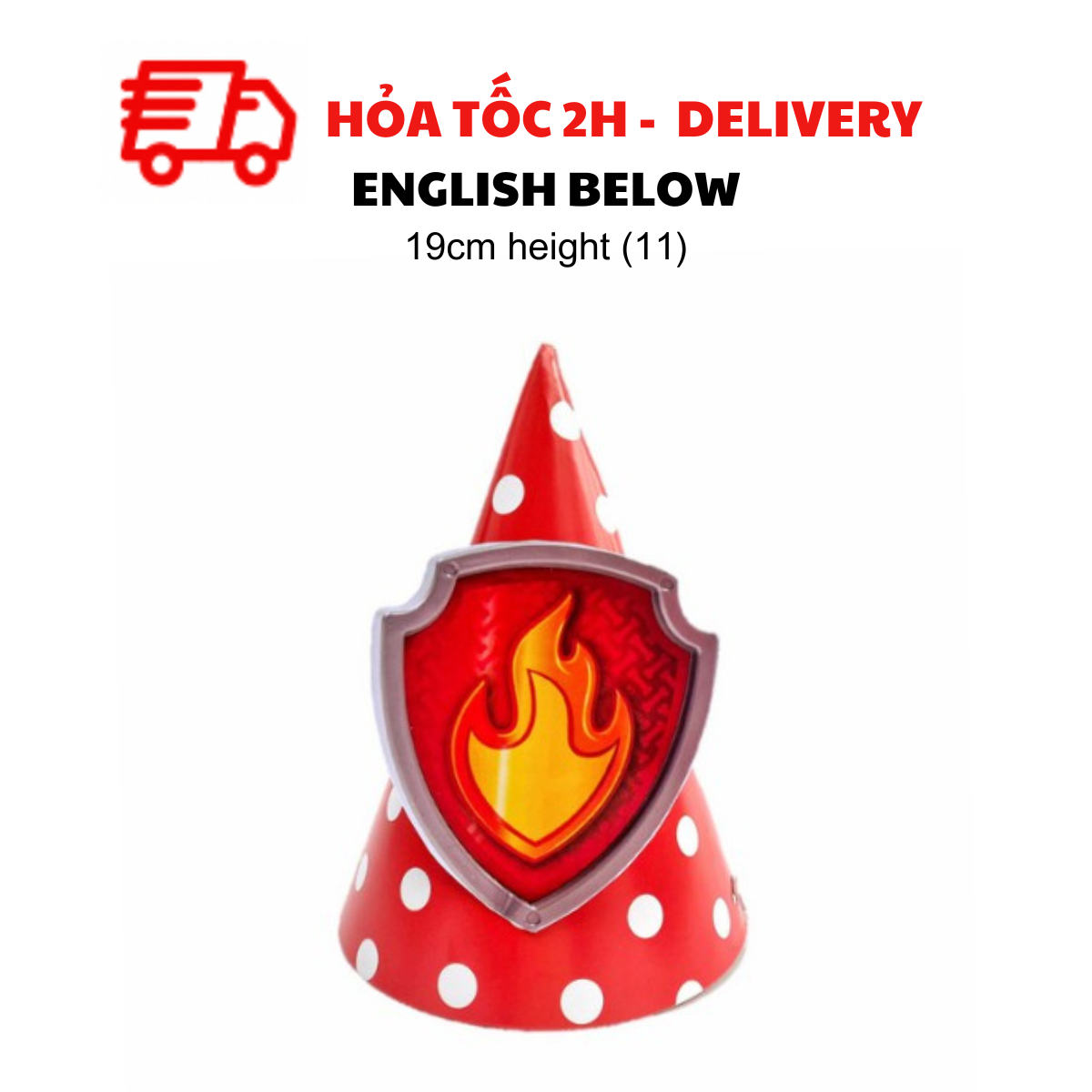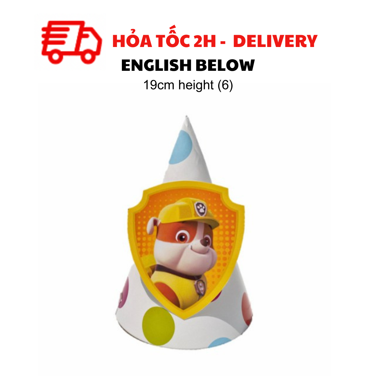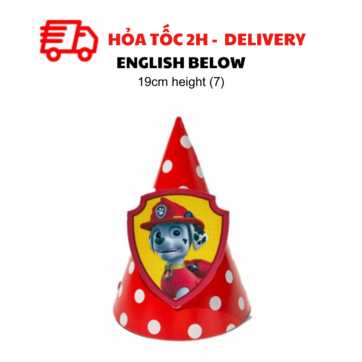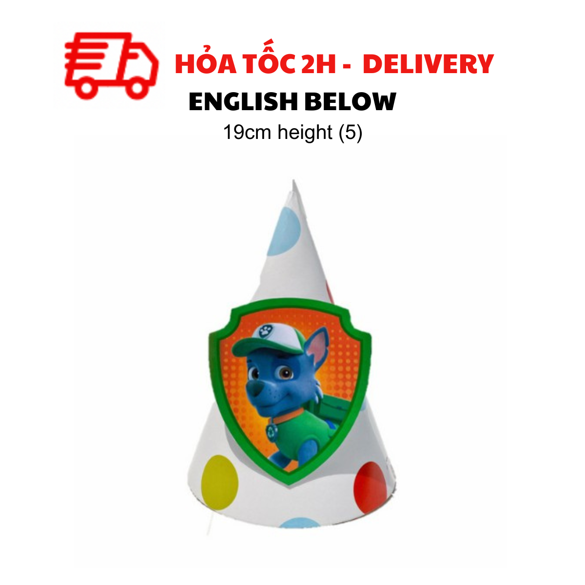 Với thiết kế nhiều màu sắc nổi bật, bộ nón sinh nhật chủ đề Paw Patrol dễ dàng kết hợp cùng bộ bóng trang trí chó cứu hộ, dây cờ HPBD nhiều mẫu và backdrop để mang đến không gian tiệc vui nhộn.
