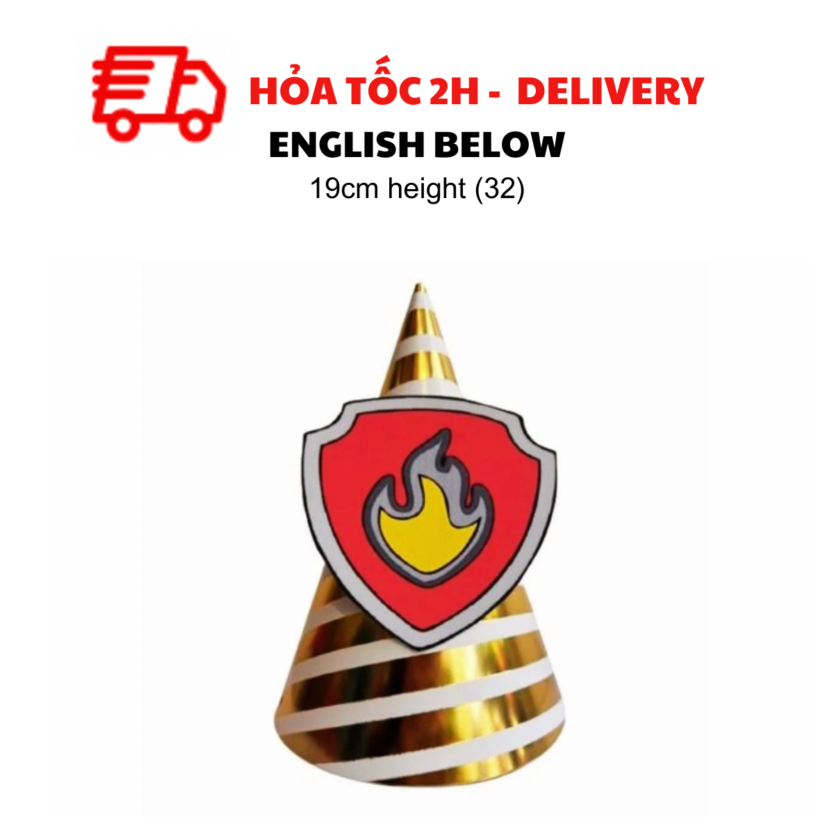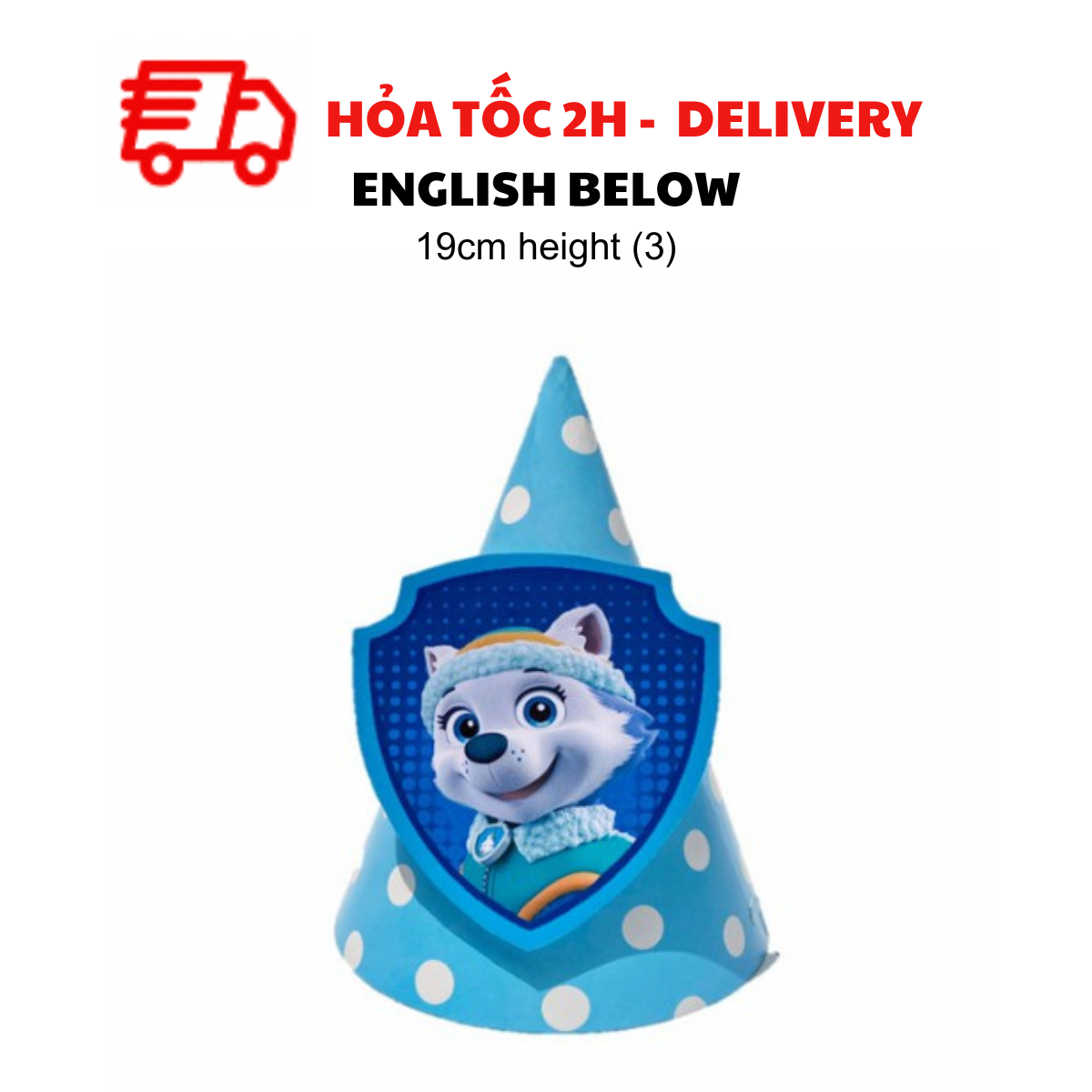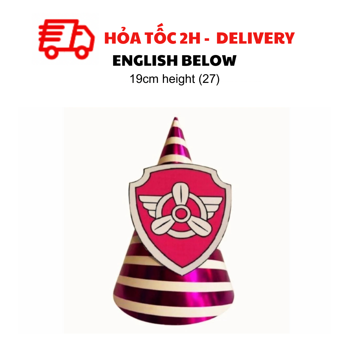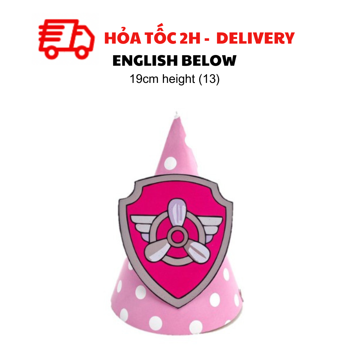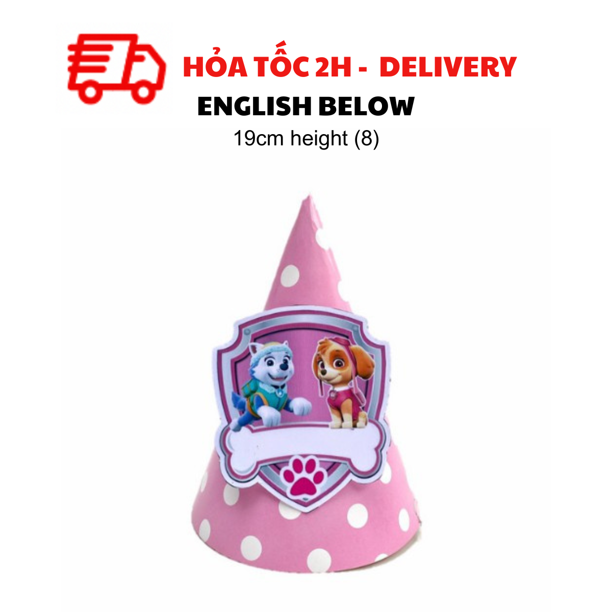 Với thiết kế nhiều màu sắc nổi bật, bộ nón sinh nhật chủ đề Paw Patrol dễ dàng kết hợp cùng bộ bóng trang trí chó cứu hộ, dây cờ HPBD nhiều mẫu và backdrop để mang đến không gian tiệc vui nhộn.