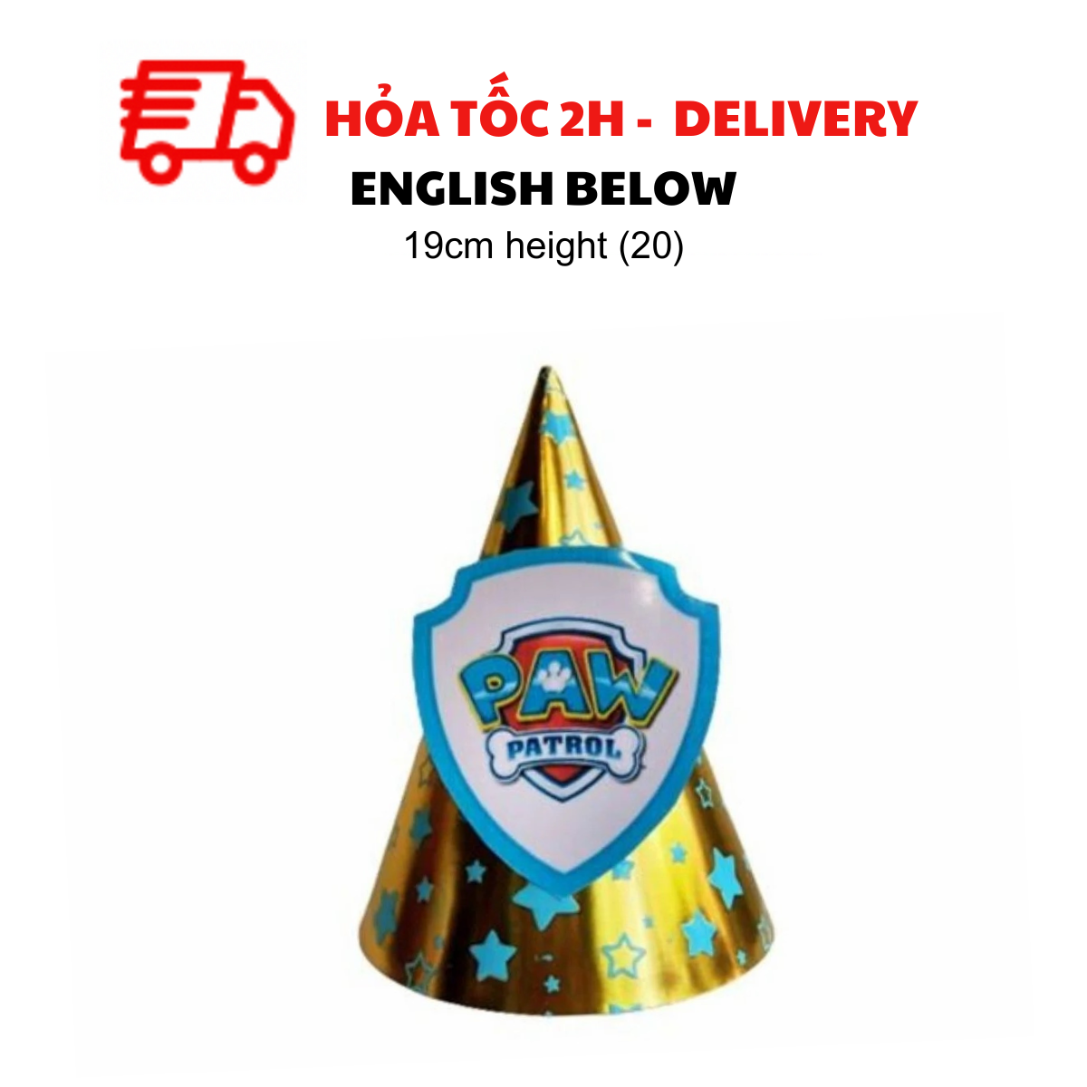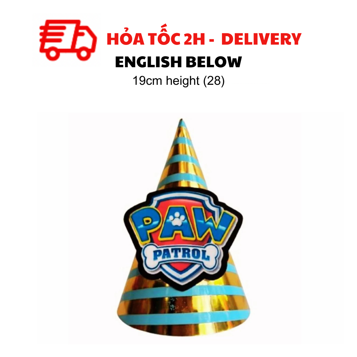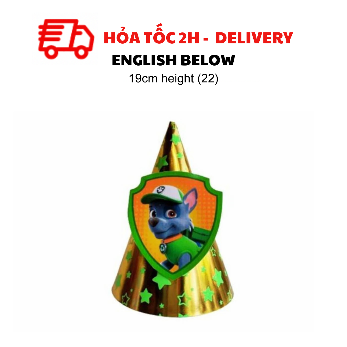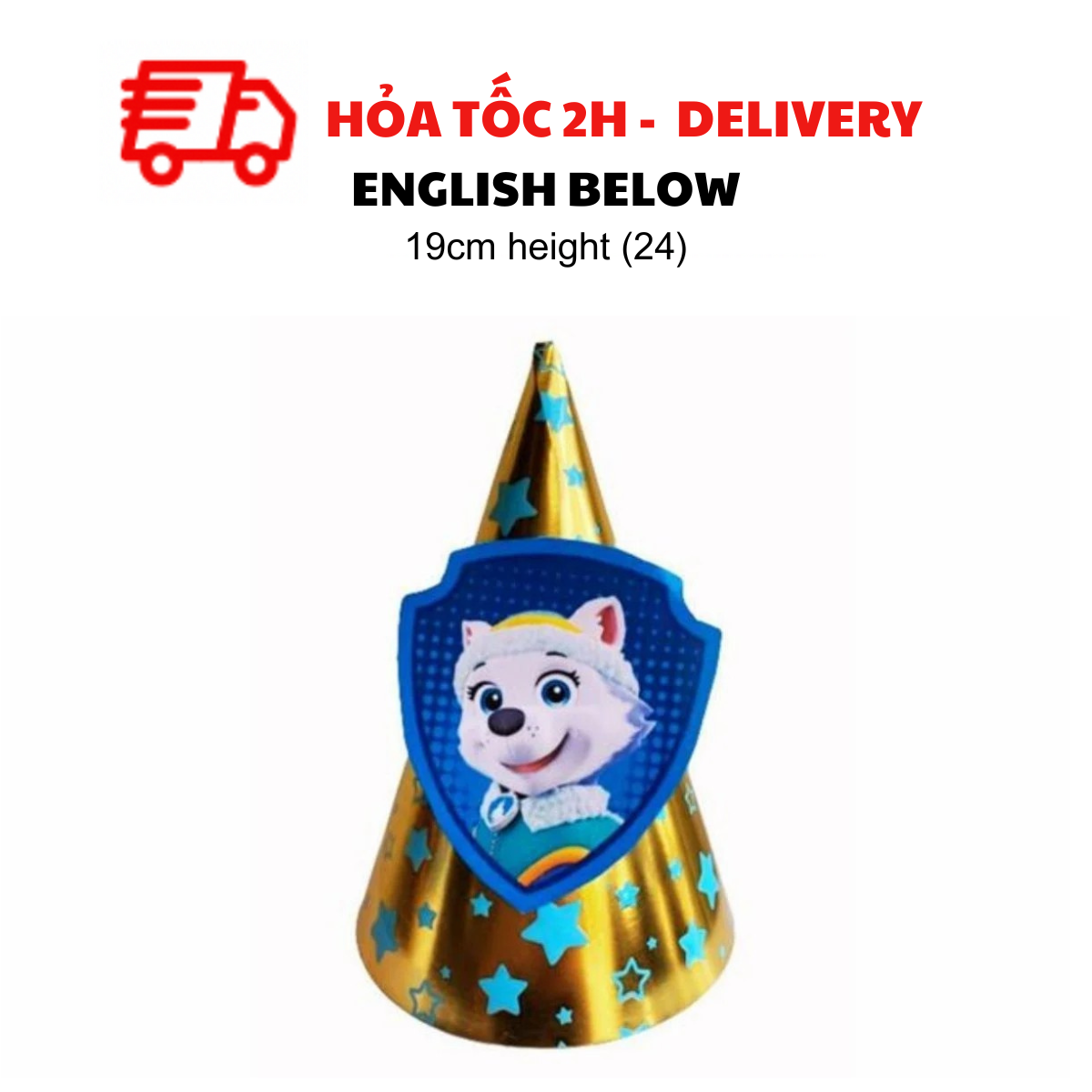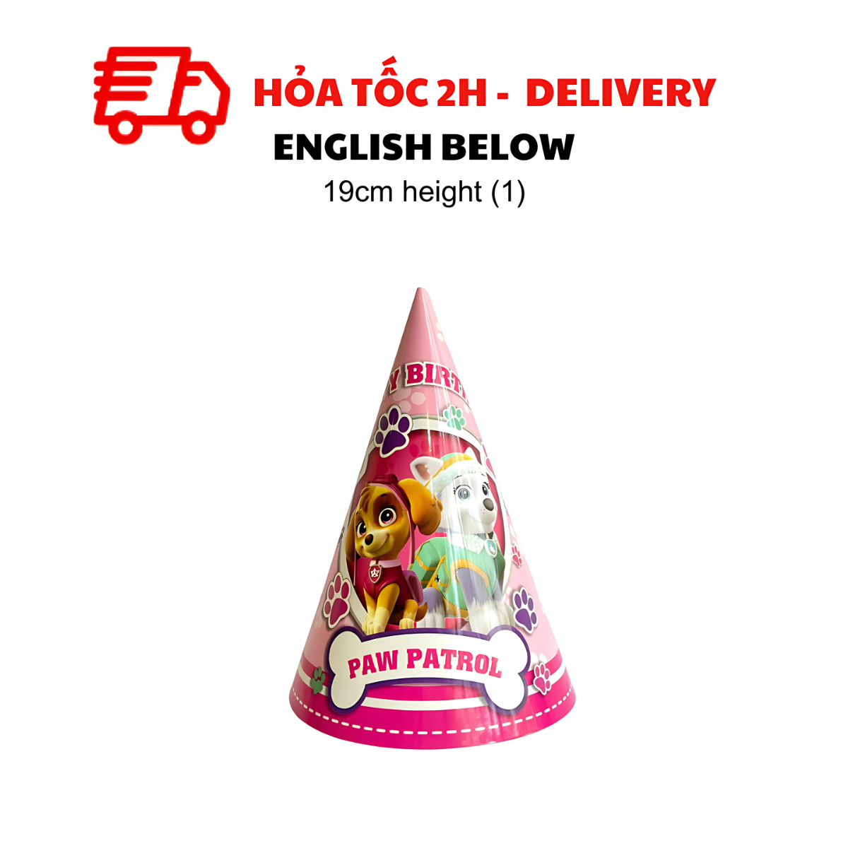 Mang đến không khí sôi động cho bữa tiệc với những chiếc nón sinh nhật chó cứu hộ Paw Patrol đáng yêu! Lấy cảm hứng từ bộ phim hoạt hình nổi tiếng, những chiếc nón này không chỉ giúp bé hòa mình vào thế giới của Paw Patrol, mà còn là điểm nhấn sinh động trong không gian trang trí.
