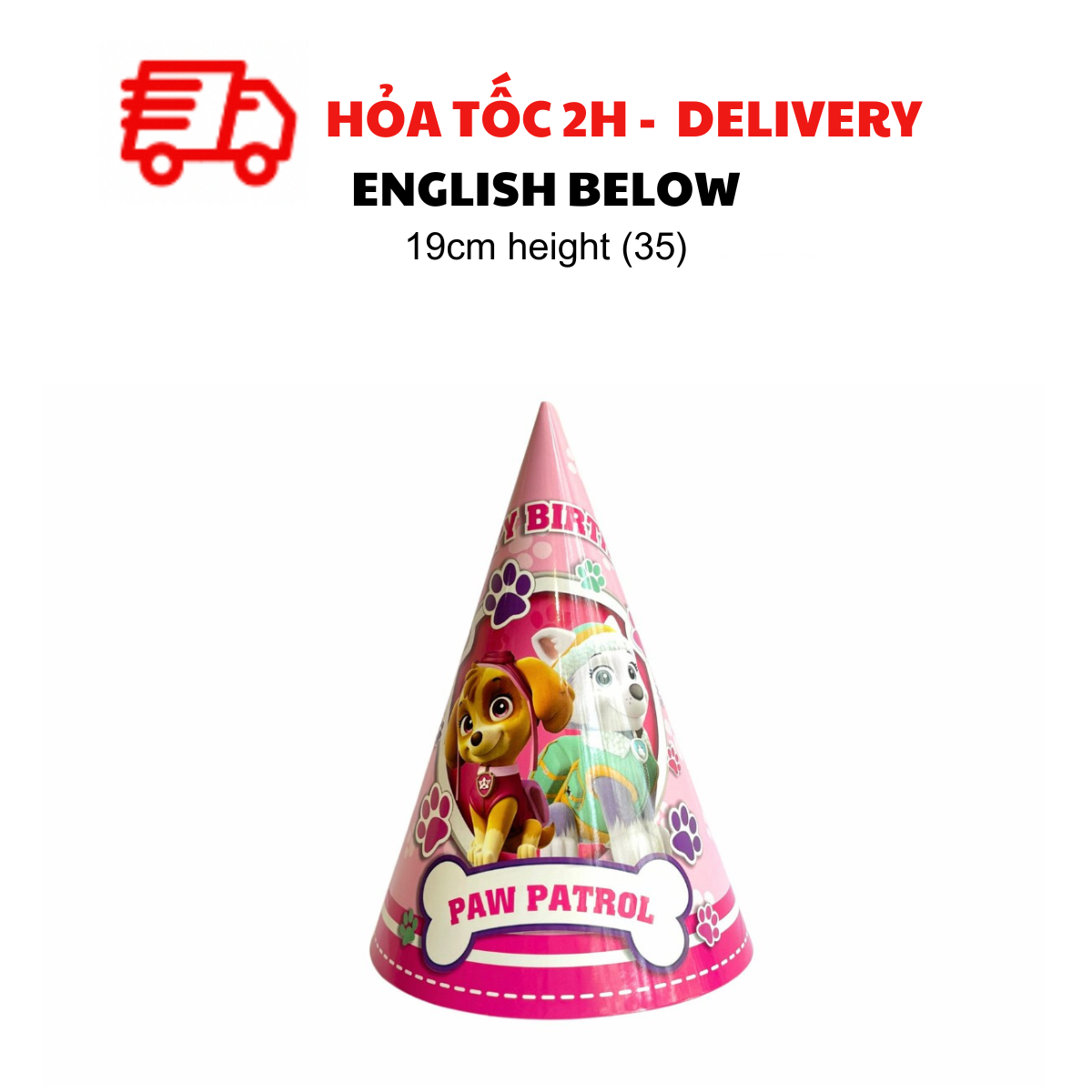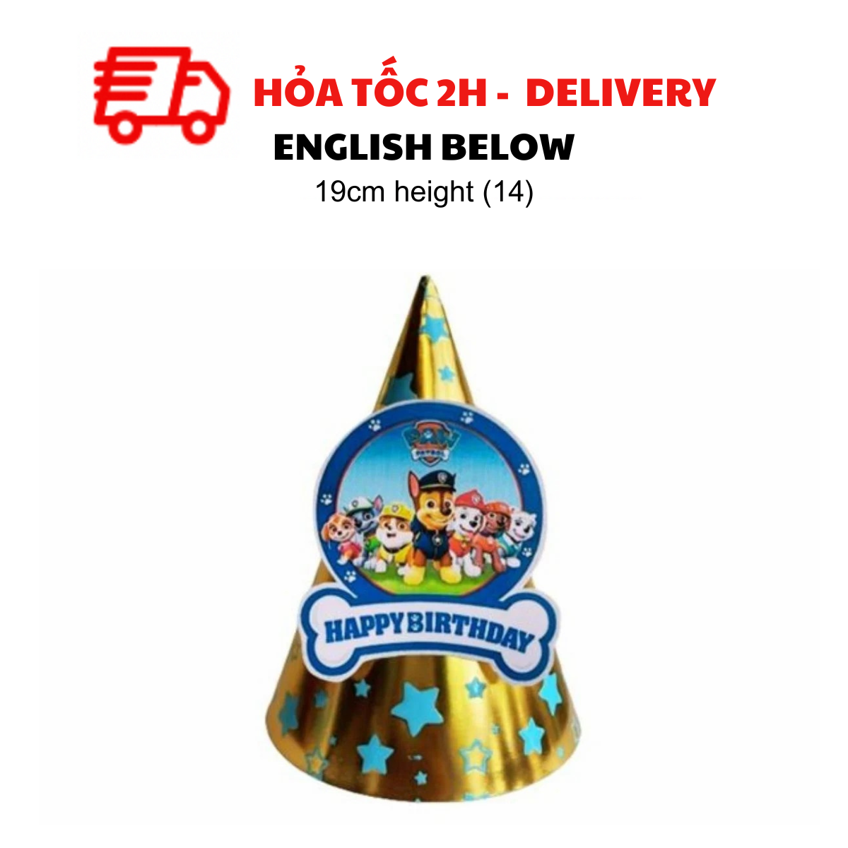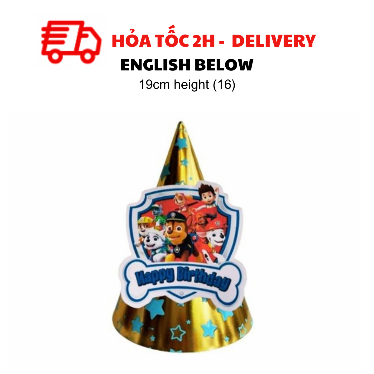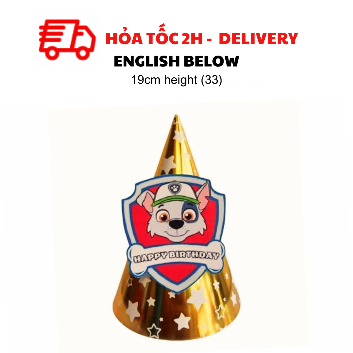 Mang đến không khí sôi động cho bữa tiệc với những chiếc nón sinh nhật chó cứu hộ Paw Patrol đáng yêu! Lấy cảm hứng từ bộ phim hoạt hình nổi tiếng, những chiếc nón này không chỉ giúp bé hòa mình vào thế giới của Paw Patrol, mà còn là điểm nhấn sinh động trong không gian trang trí.