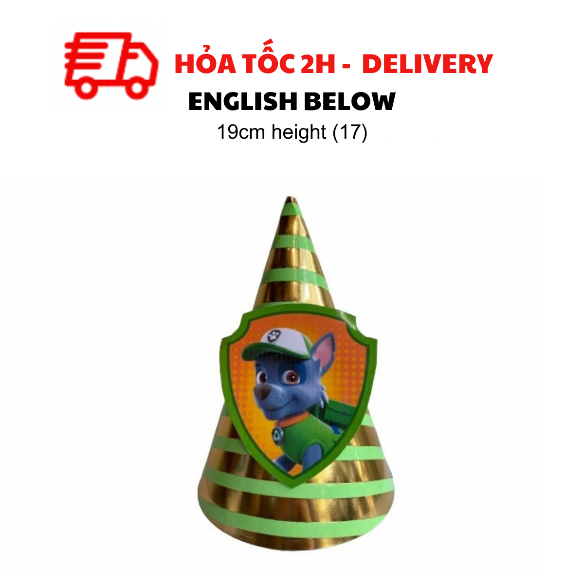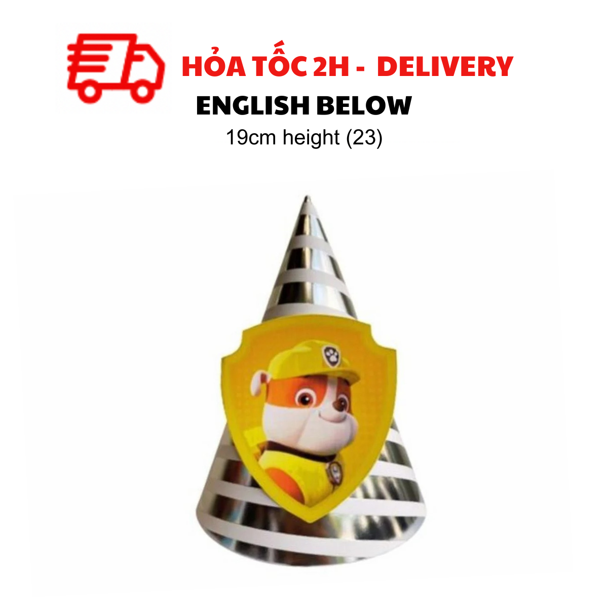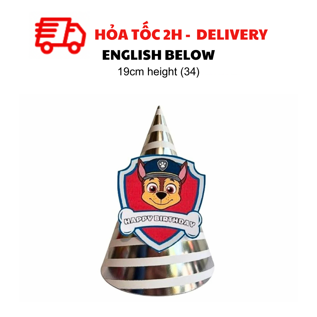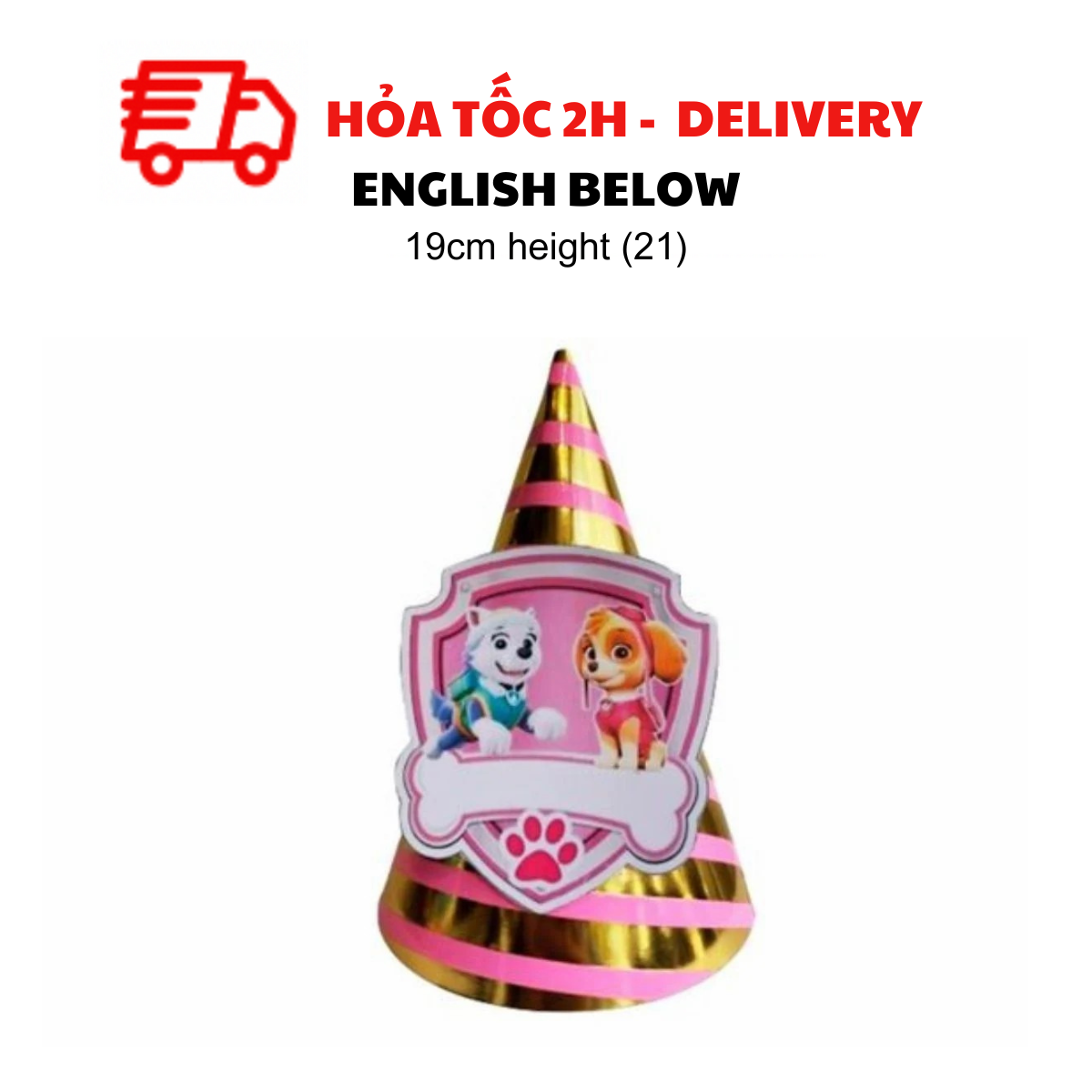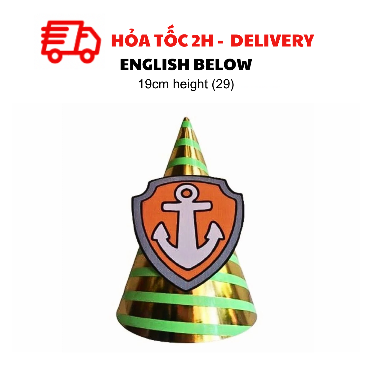 Mang đến không khí sôi động cho bữa tiệc với những chiếc nón sinh nhật chó cứu hộ Paw Patrol đáng yêu! Lấy cảm hứng từ bộ phim hoạt hình nổi tiếng, những chiếc nón này không chỉ giúp bé hòa mình vào thế giới của Paw Patrol, mà còn là điểm nhấn sinh động trong không gian trang trí.