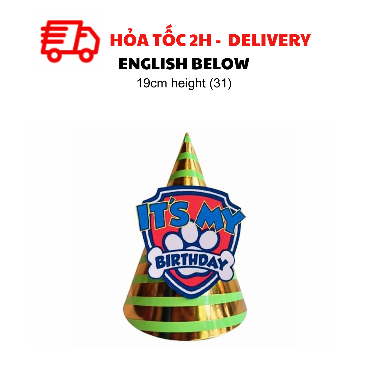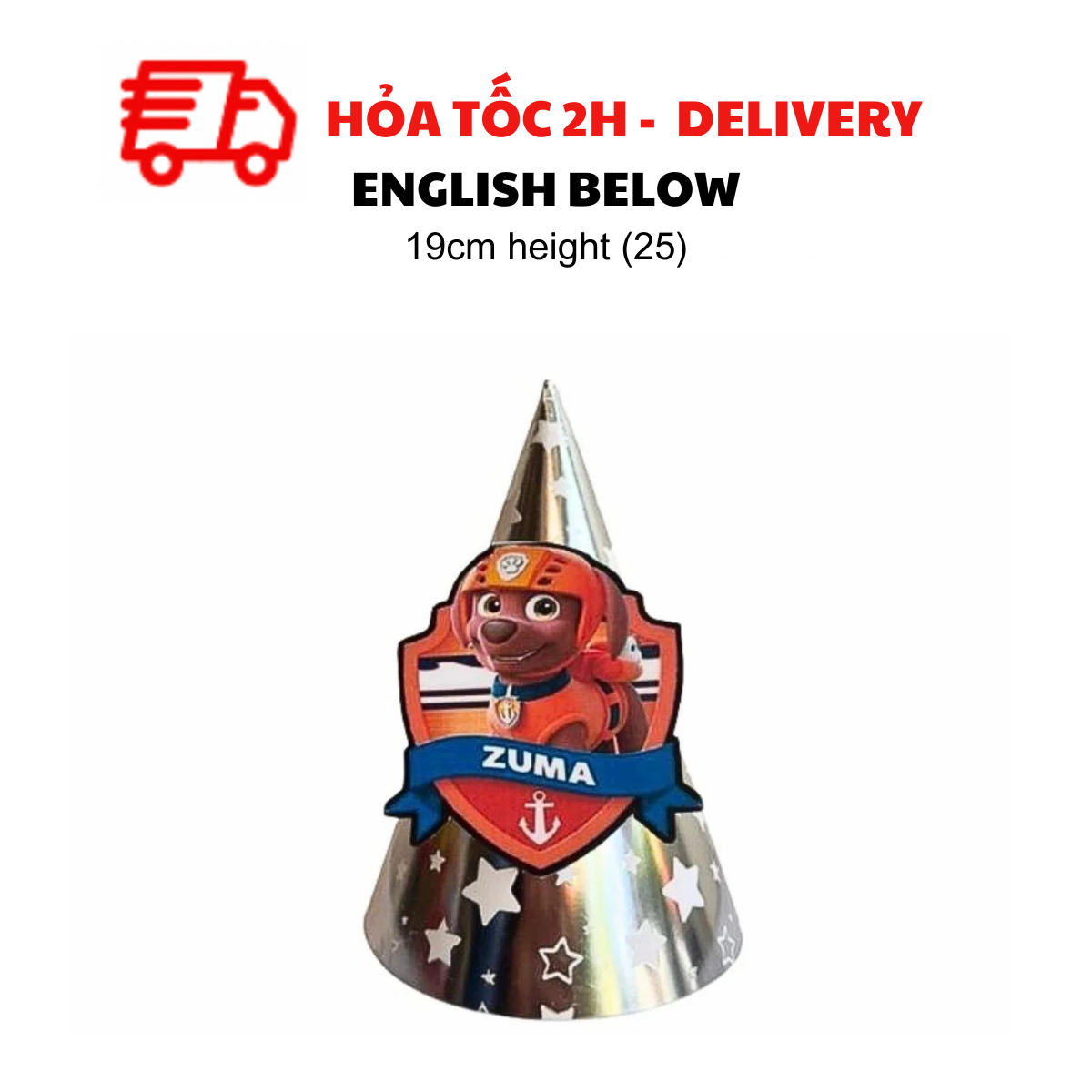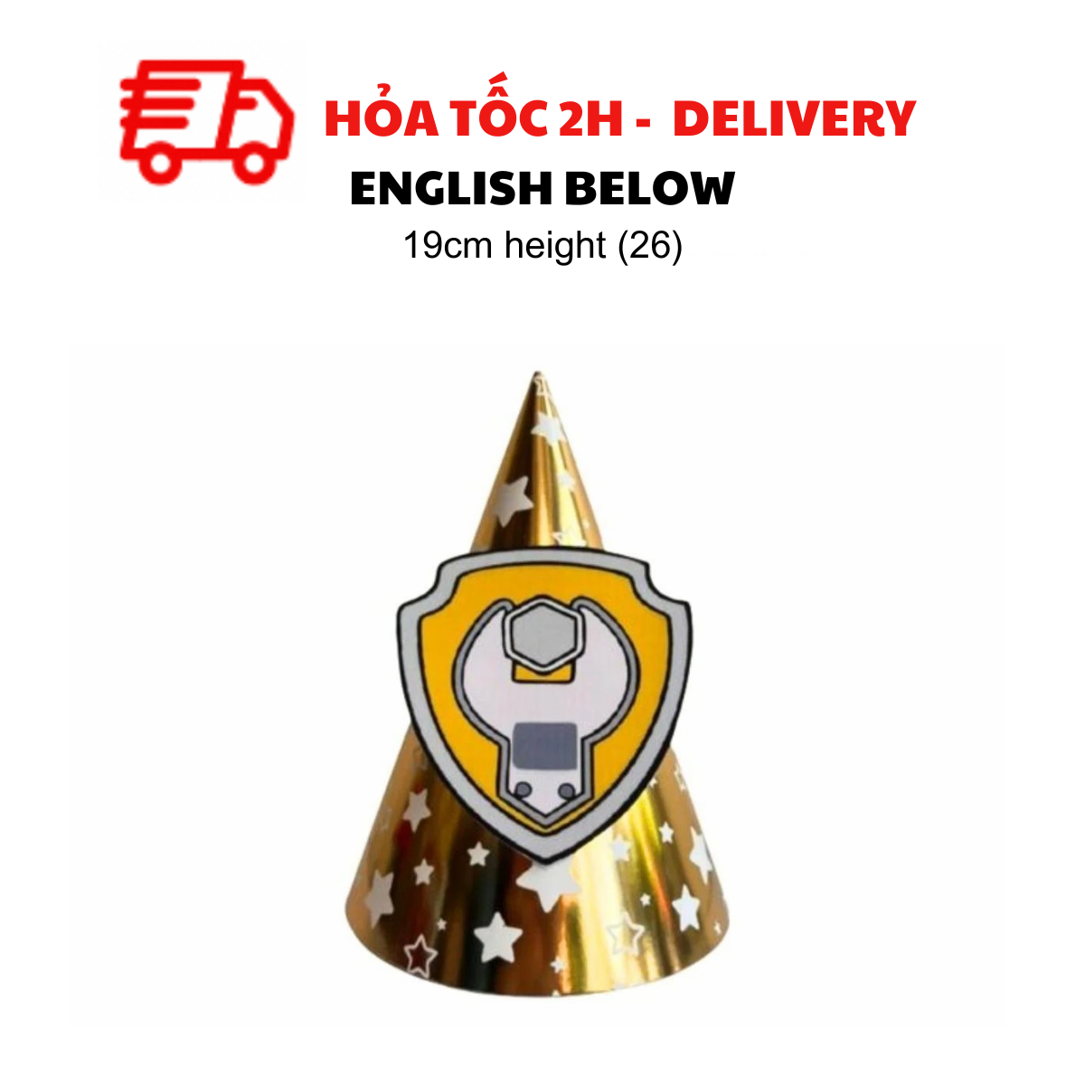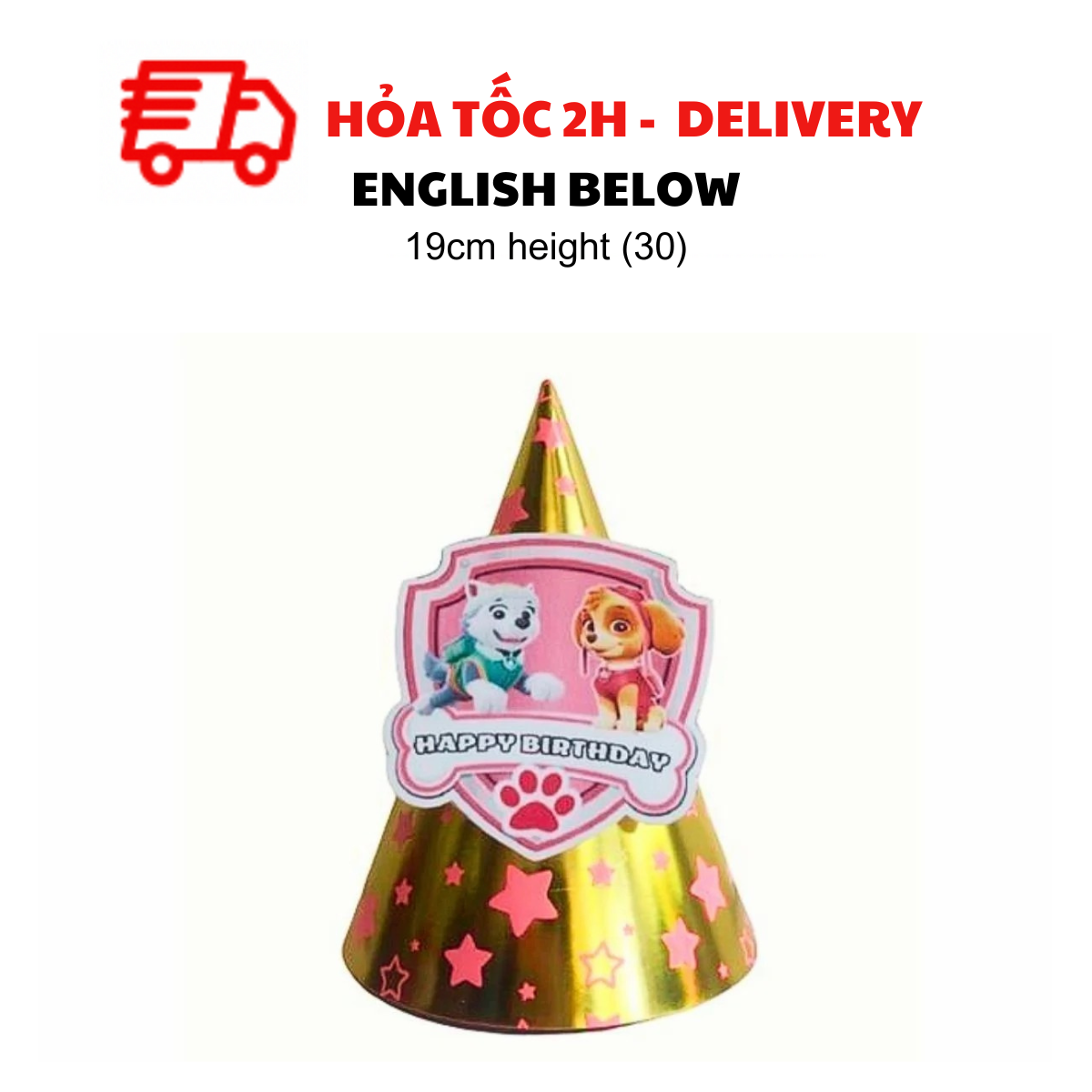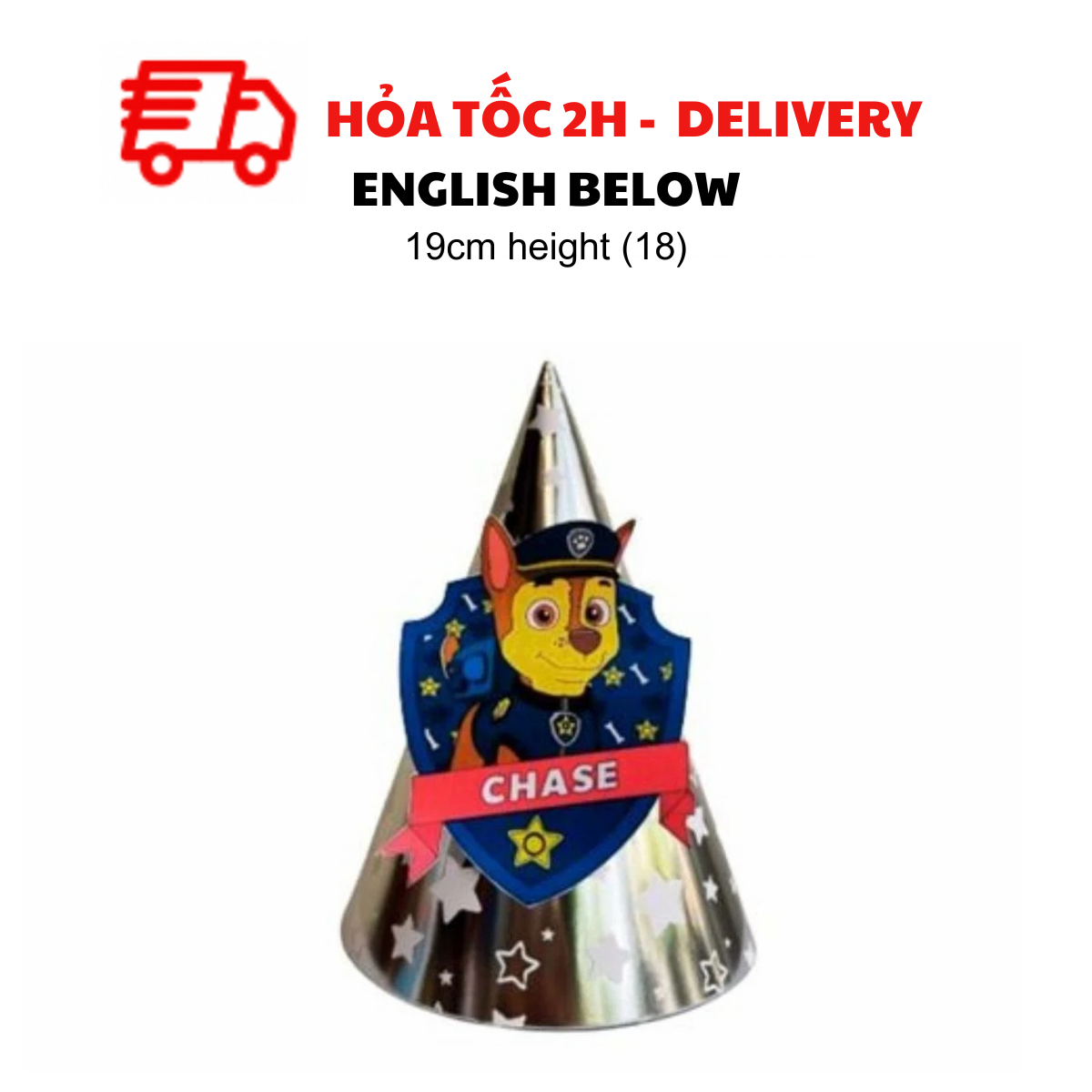 Mang đến không khí sôi động cho bữa tiệc với những chiếc nón sinh nhật chó cứu hộ Paw Patrol đáng yêu! Lấy cảm hứng từ bộ phim hoạt hình nổi tiếng, những chiếc nón này không chỉ giúp bé hòa mình vào thế giới của Paw Patrol, mà còn là điểm nhấn sinh động trong không gian trang trí.