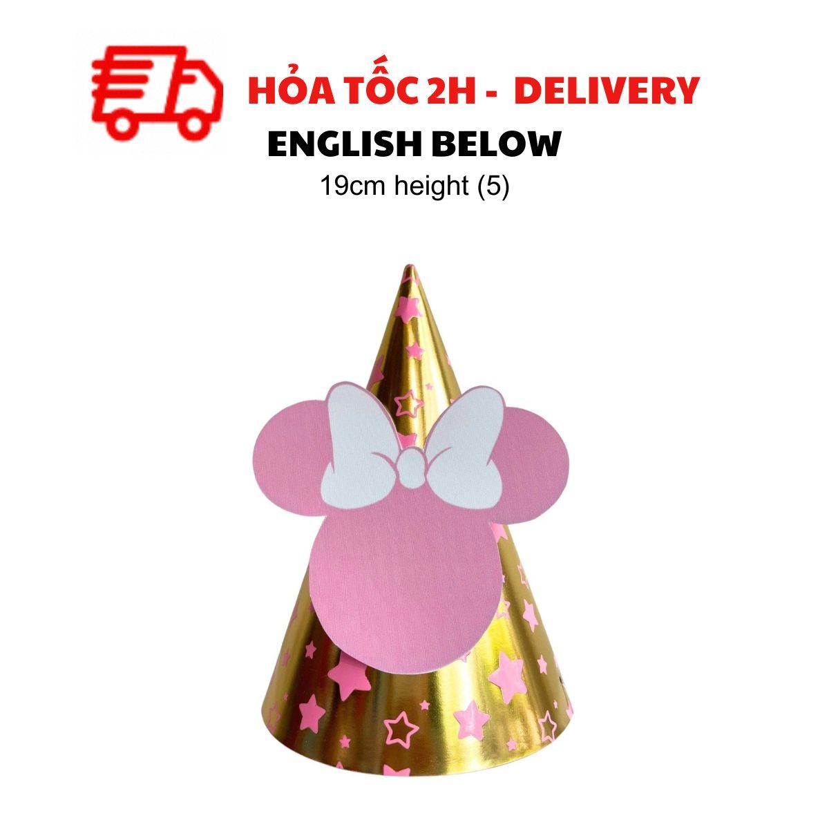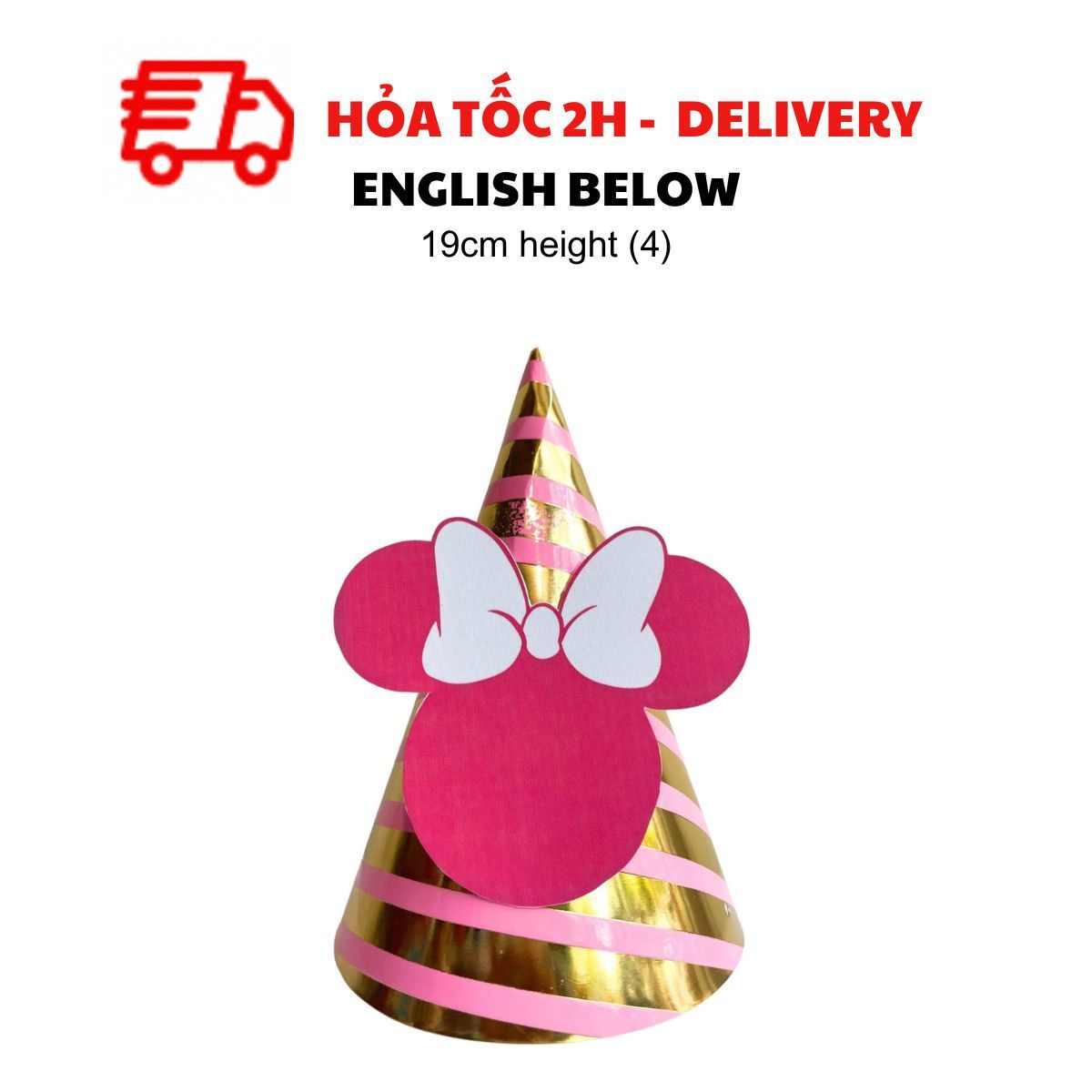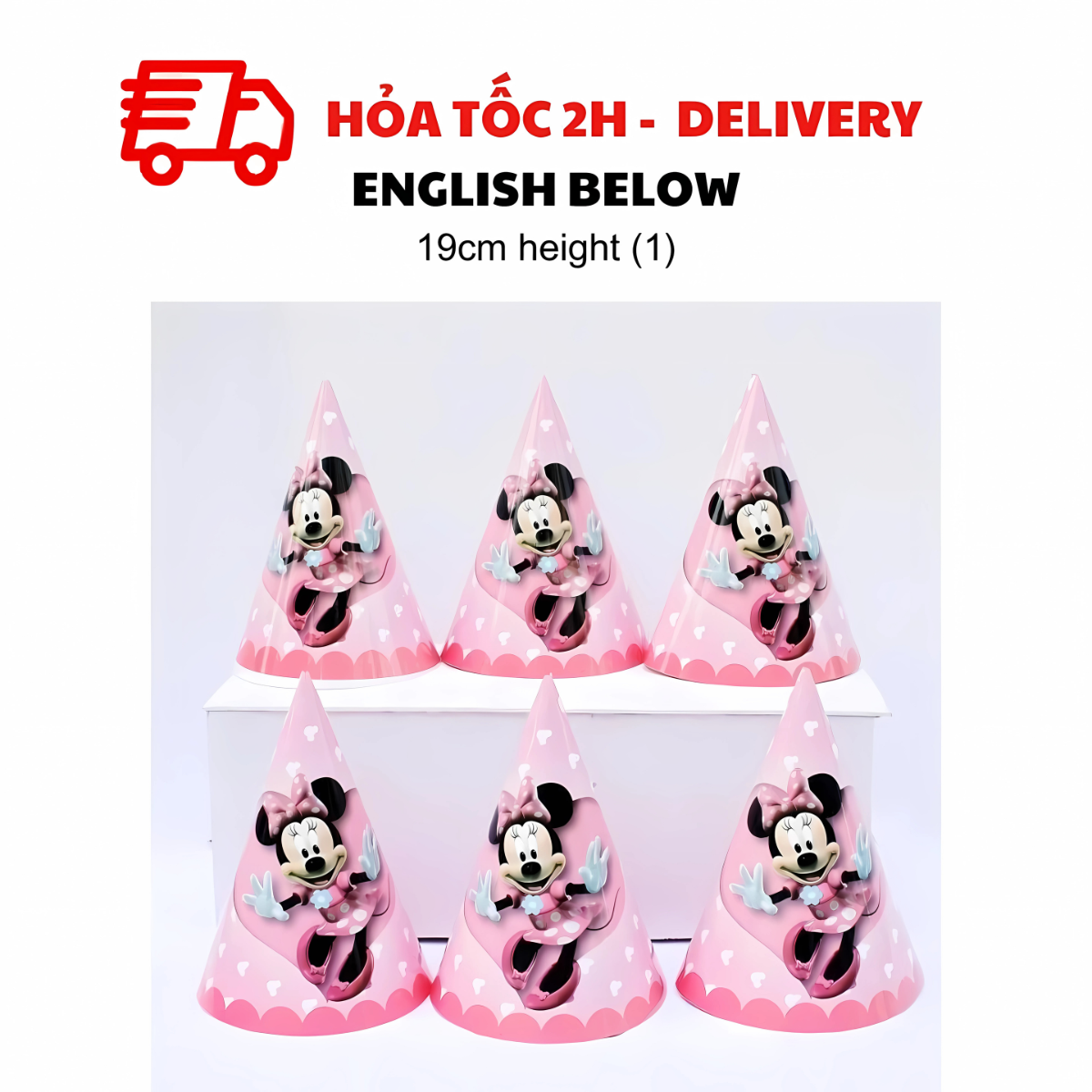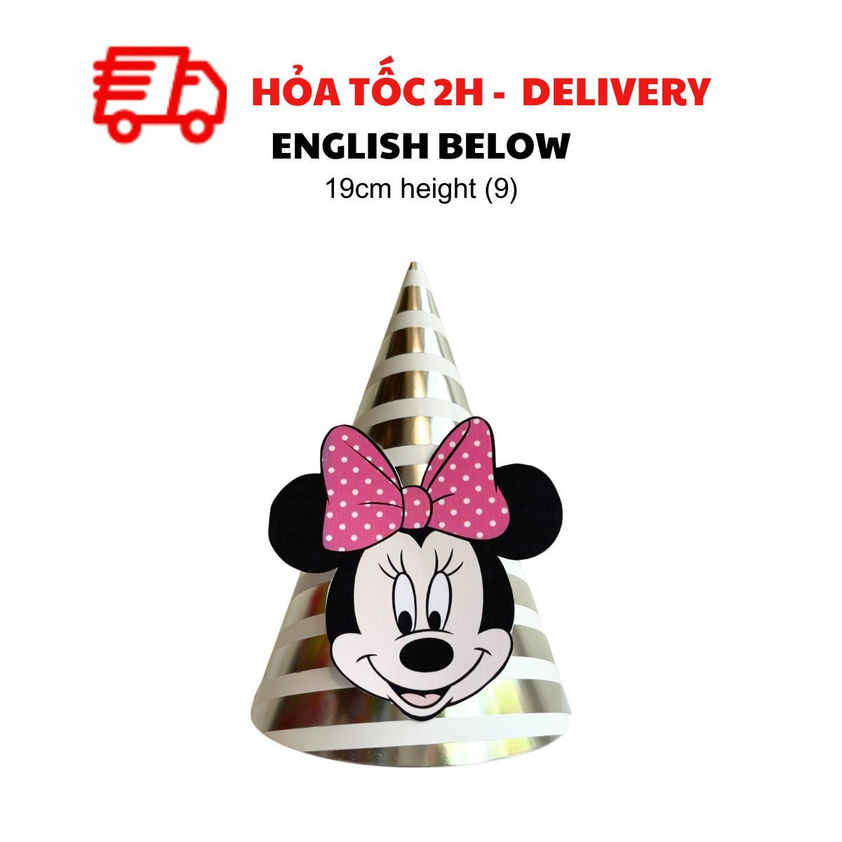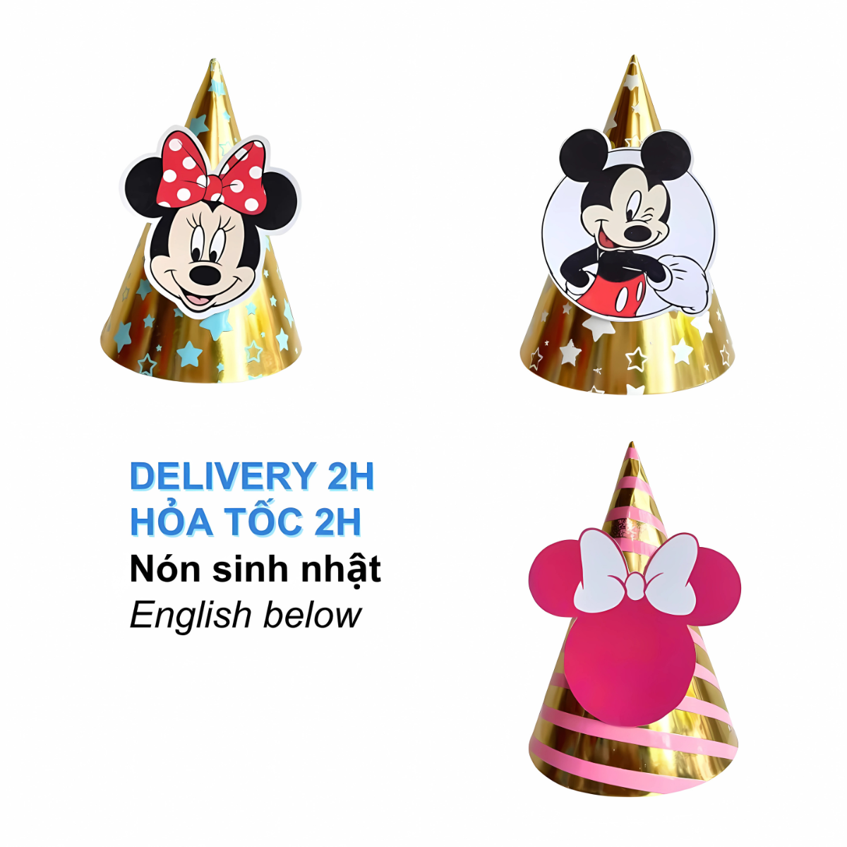 Dù là tiệc của bé trai hay bé gái, mẫu nón sinh nhật Minie Mickey nhiều màu sắc nổi bật sẽ làm tăng thêm niềm vui và tạo điểm nhấn hoàn hảo. Kết hợp với dây cờ trang trí, bóng bay mickey và những món đồ trang trí khác để mang đến một buổi tiệc sinh nhật thật đáng nhớ!