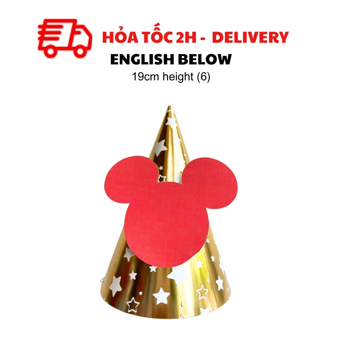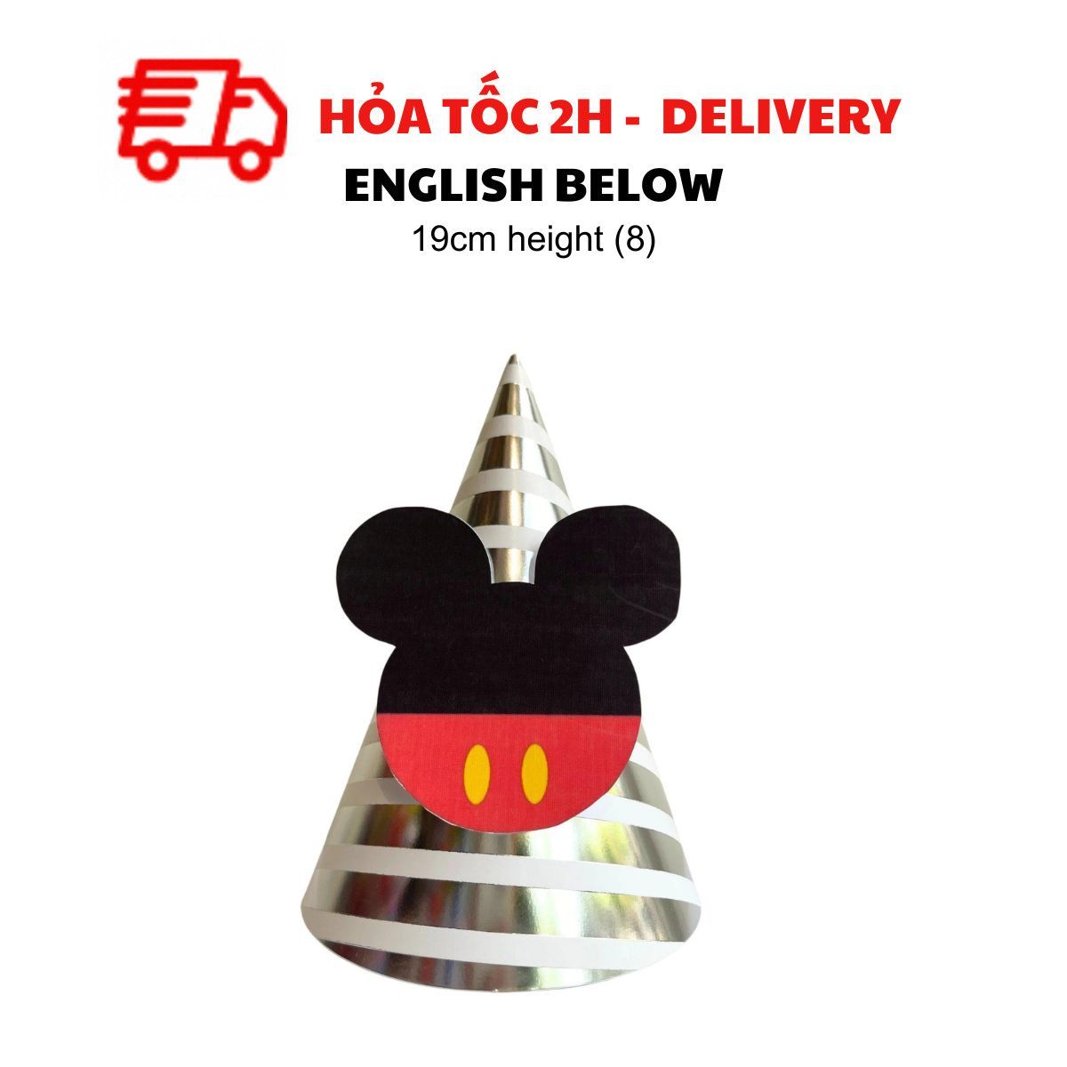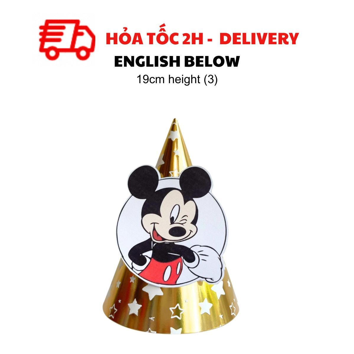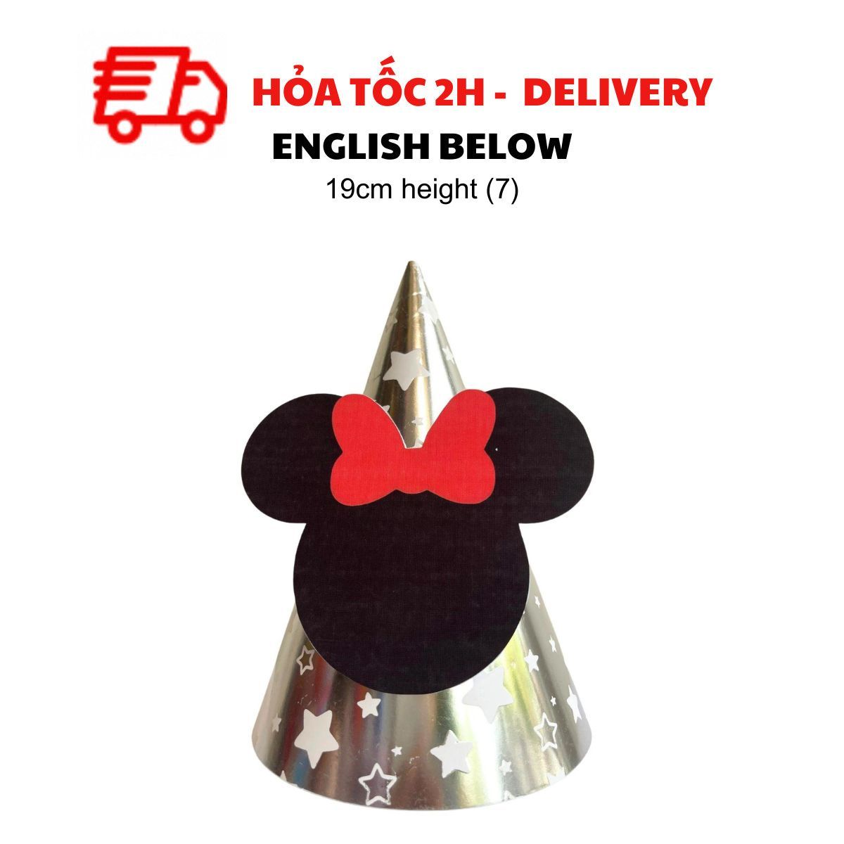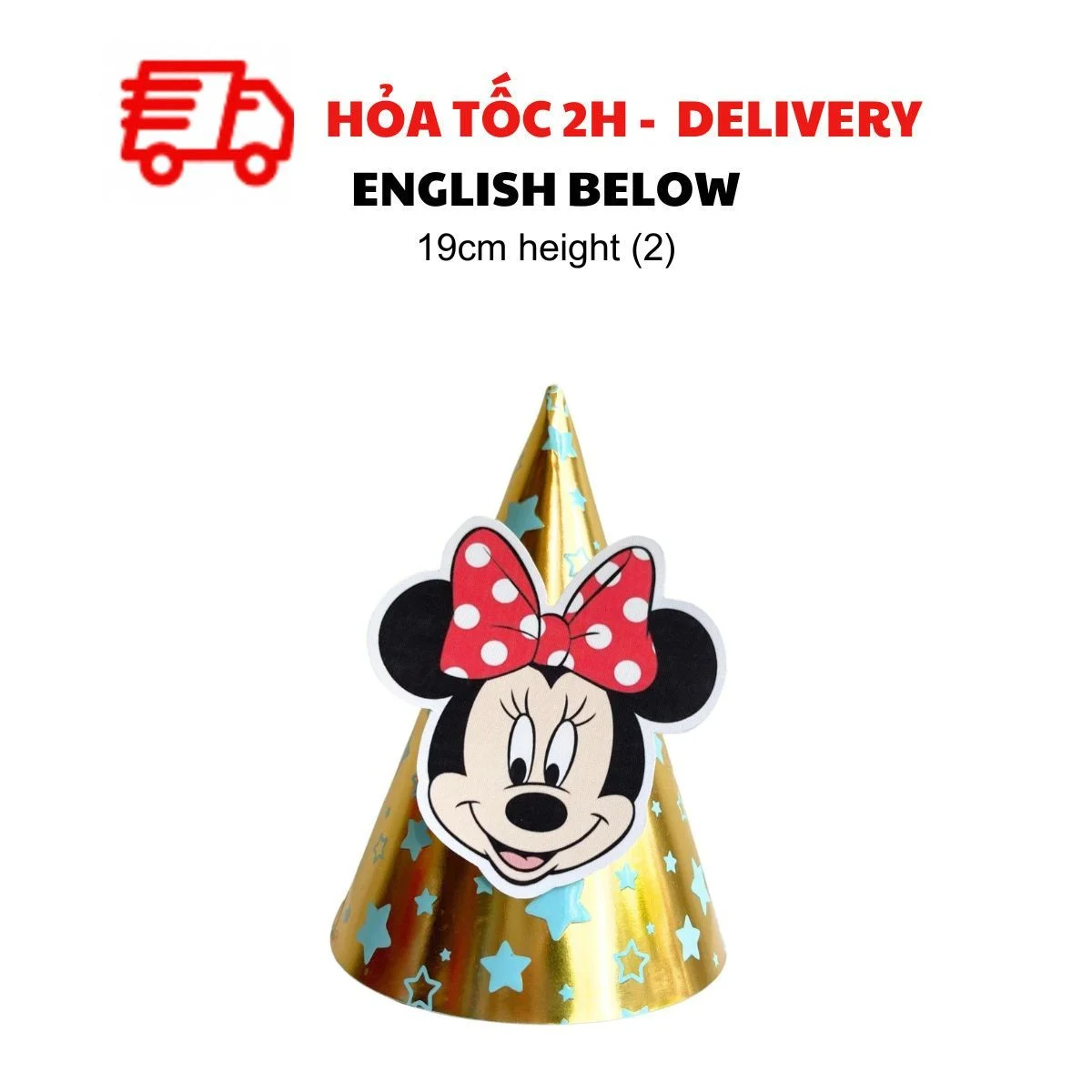Dù là tiệc của bé trai hay bé gái, mẫu nón sinh nhật Minie Mickey nhiều màu sắc nổi bật sẽ làm tăng thêm niềm vui và tạo điểm nhấn hoàn hảo. Kết hợp với dây cờ trang trí, bóng bay mickey và những món đồ trang trí khác để mang đến một buổi tiệc sinh nhật thật đáng nhớ!
