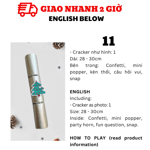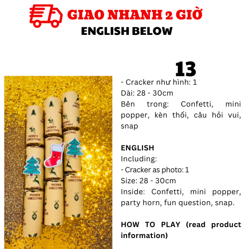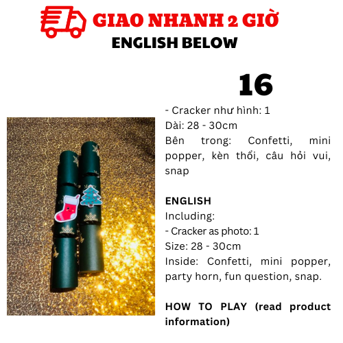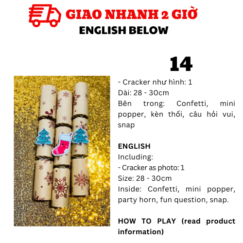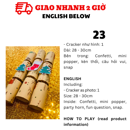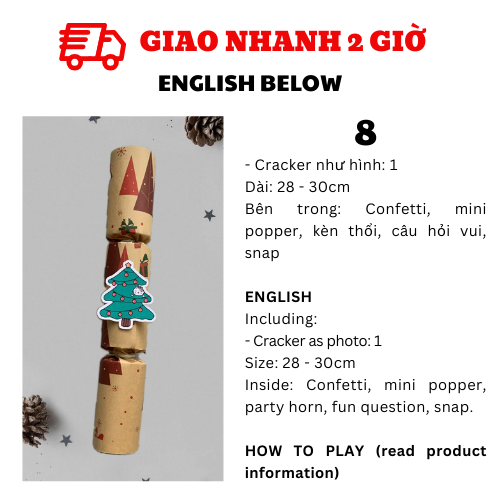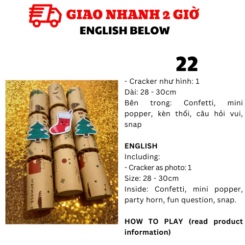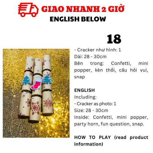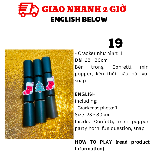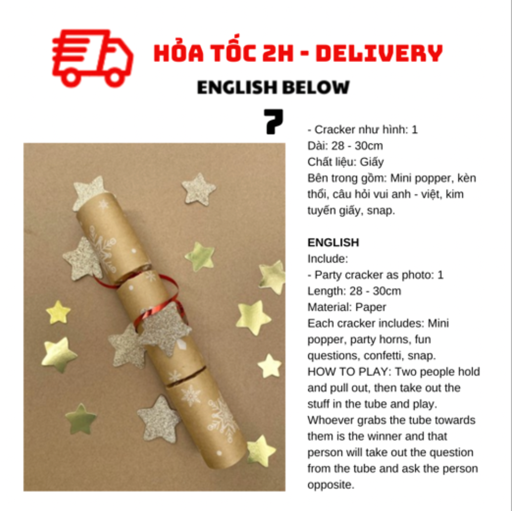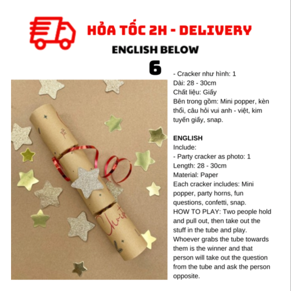 CÁCH CHƠI CRACKERS: Hai người cầm và kéo ra trong bữa tiệc, rồi lấy đồ trong ống giấy ra và chơi. Ai giật được phần ống về phía mình mặc định là người thắng và người đó sẽ lấy câu hỏi trong ống ra và hỏi người đối diện.