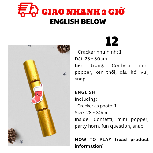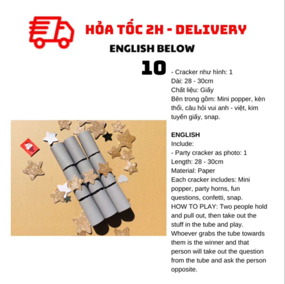 Bên trong bao gồm: Confetti, mini popper, kèn thổi, thiệp chúc nhỏ, câu hỏi