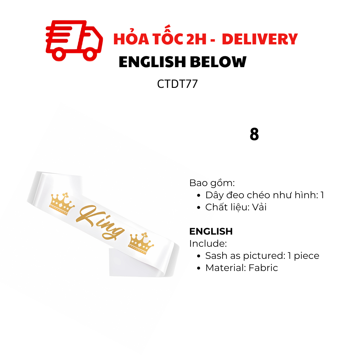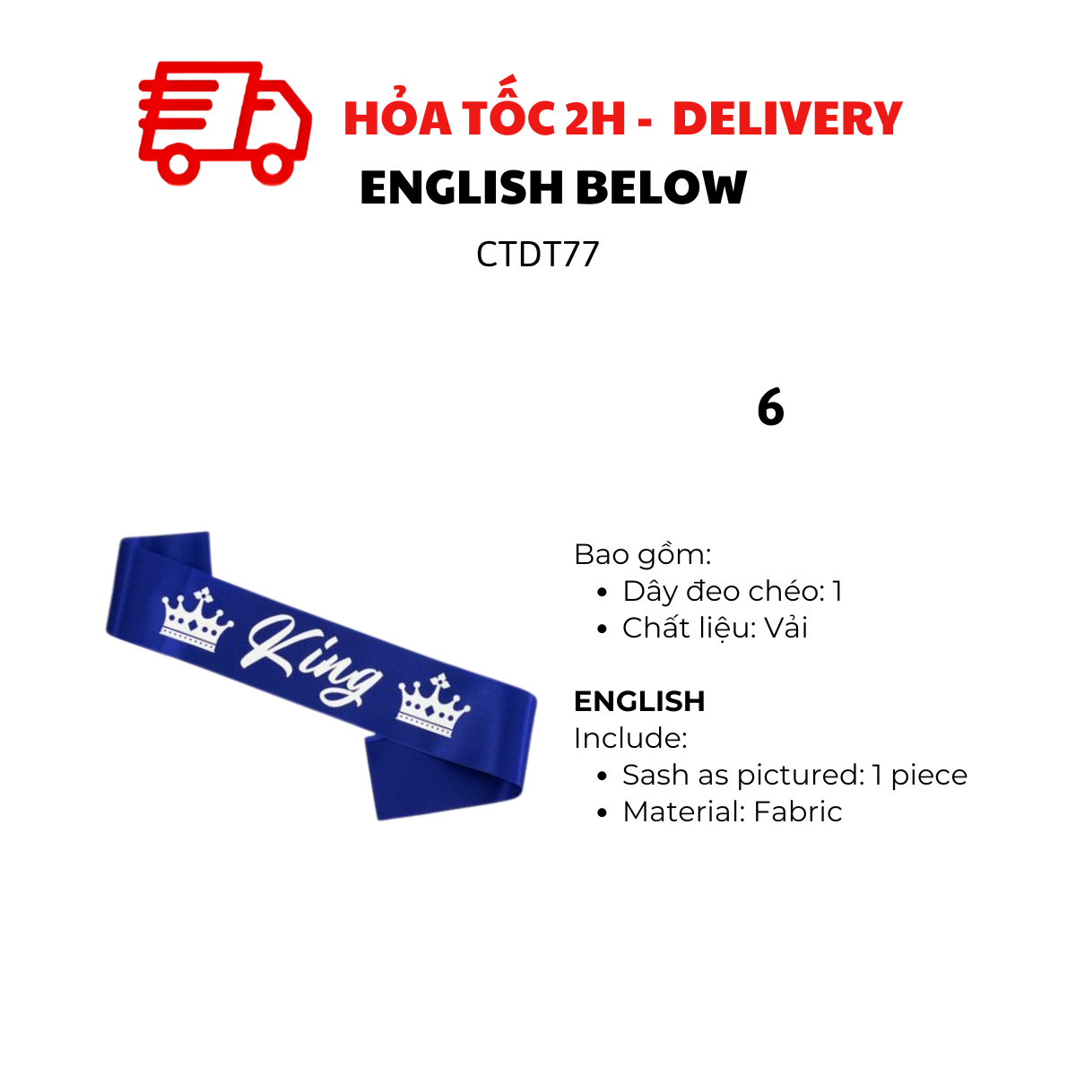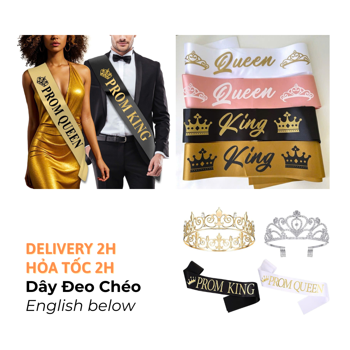 KING, QUEEN SASH COSPLAY FOR PARTY CTDT77
