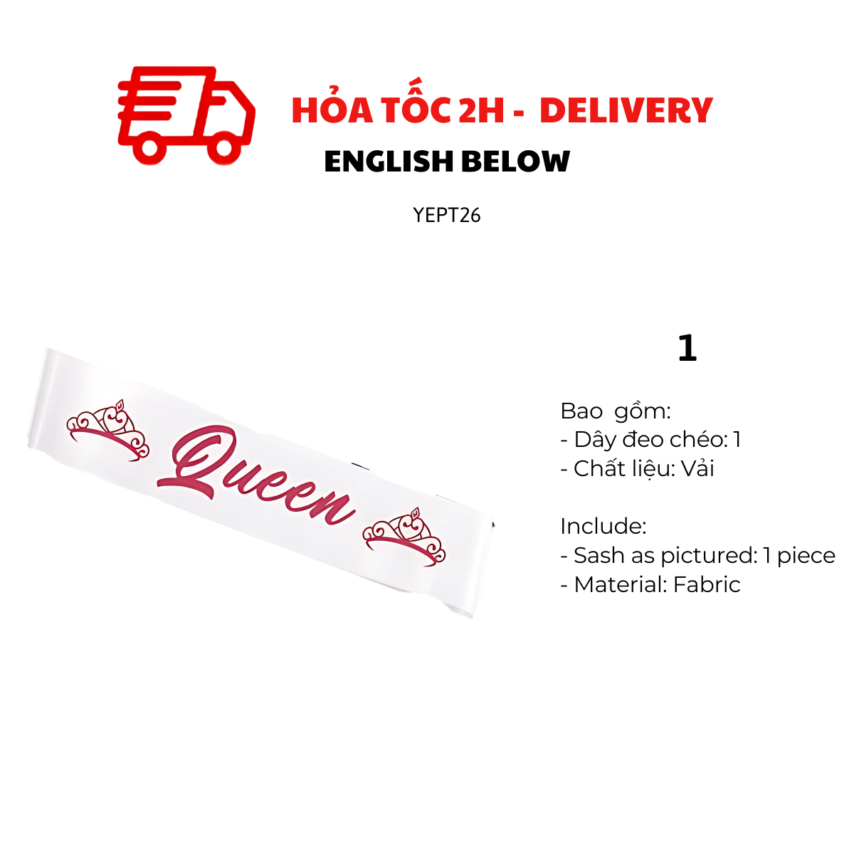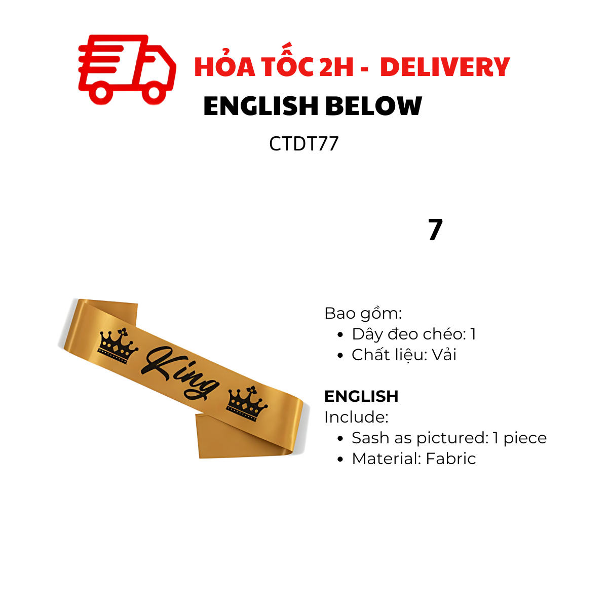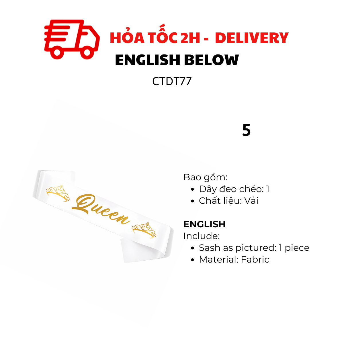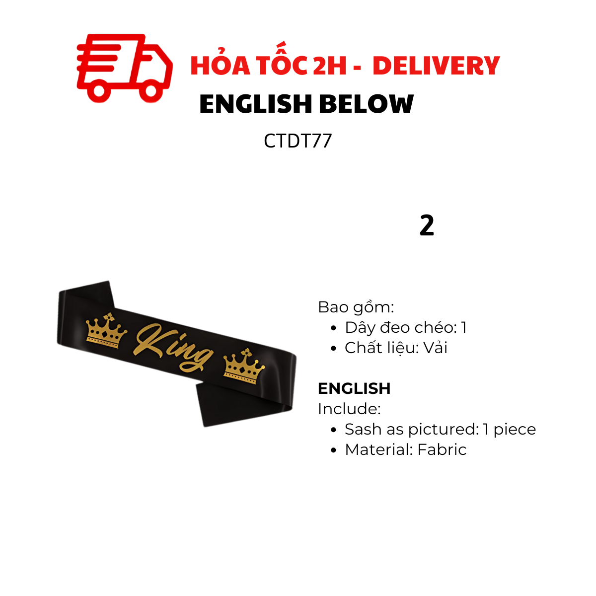 KING, QUEEN SASH COSPLAY FOR PARTY CTDT77