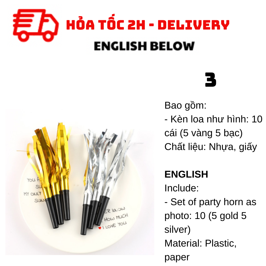 PHỤ KIỆN VƯƠNG MIỆN, KÈN THỔI, CÀI TÓC, NÓN, VÒNG CỔ, MẮT KÍNH CHO TIỆC ĐÓN GIAO THỪA PTK04
