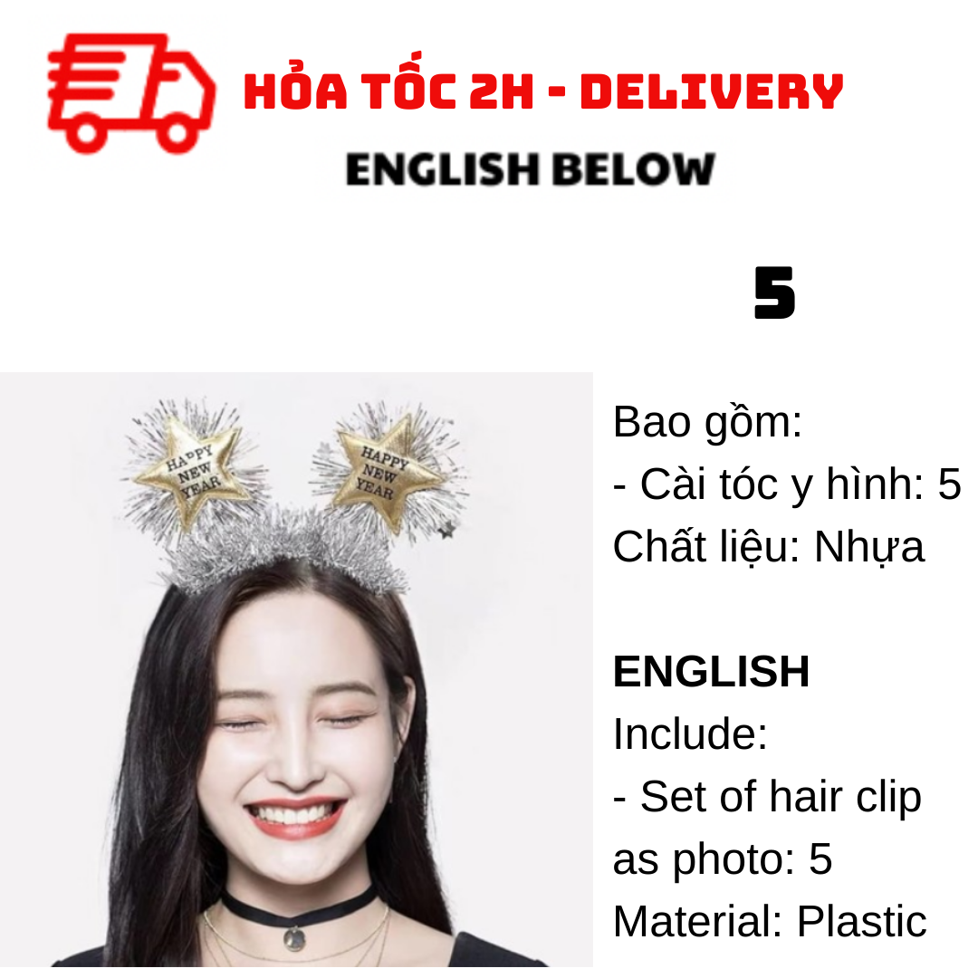 LỰA CHỌN 5: BỘ 5 CÀI TÓC KIM TUYẾN HAPPY NEW YEAR