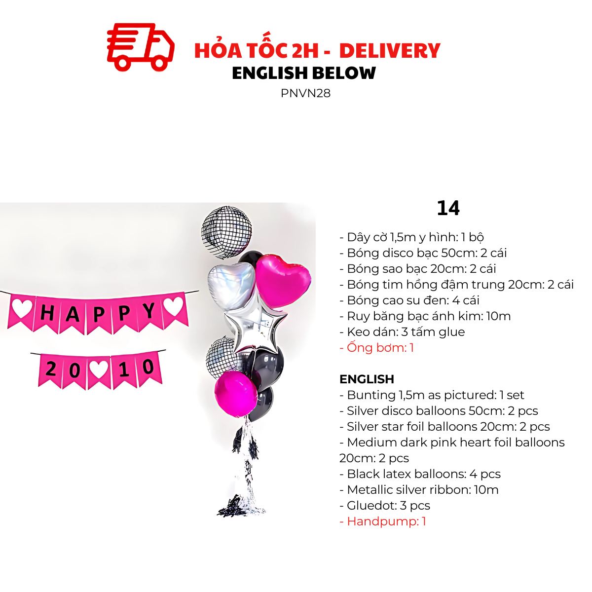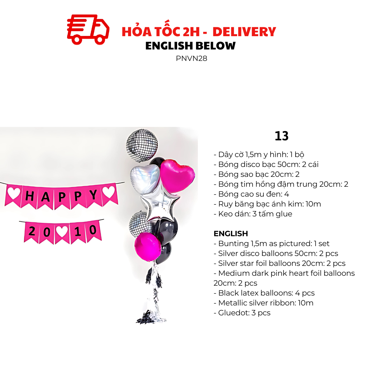 Bạn có thể kết hợp thêm bóng trái tim, trụ bóng, và bóng số để hoàn thiện không gian tiệc nhé!