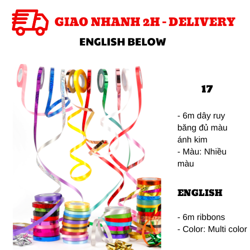 Bao gồm: 6m dây ruy băng đủ màu ánh kim