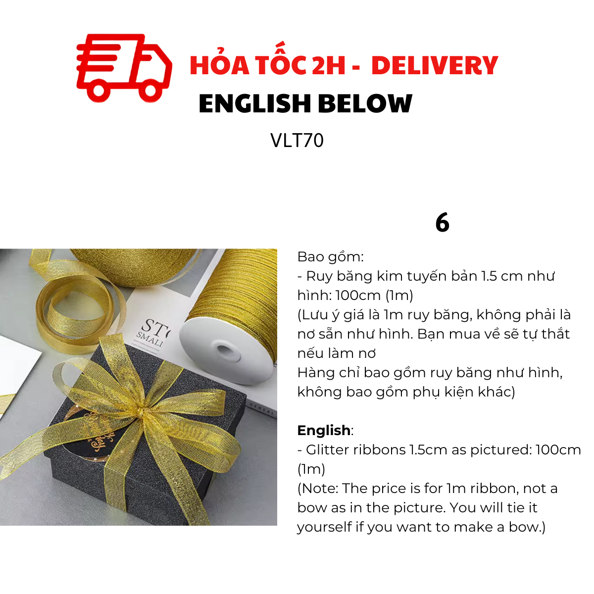 - Ruy băng kim tuyến bản 1,5cm như hình: 100cm (1m)