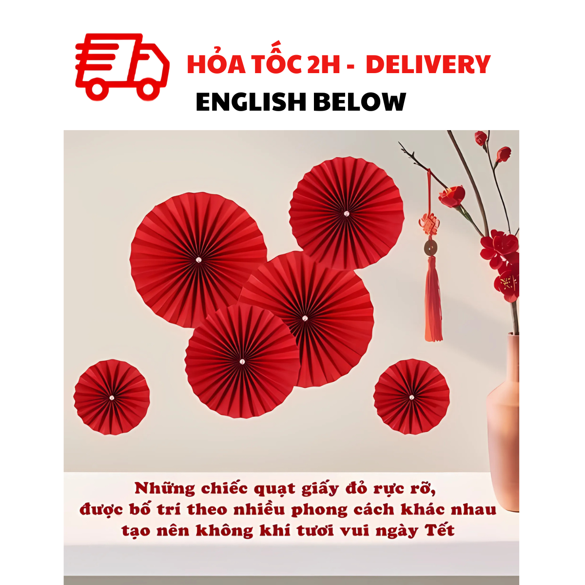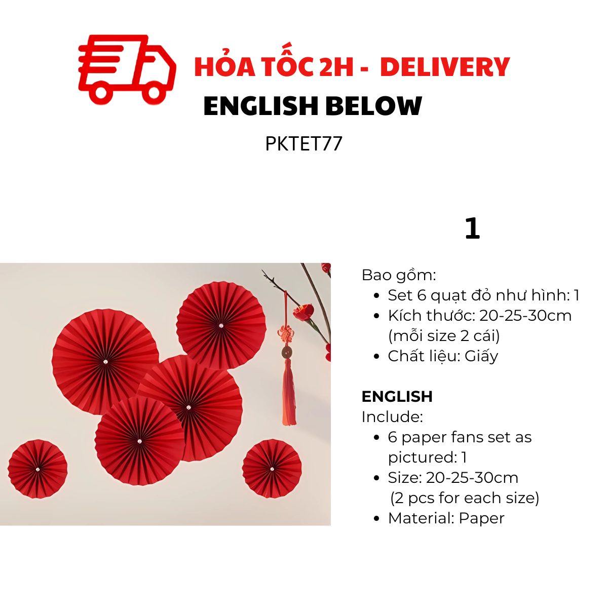 - Set of 6 paper fans as pictured: 1