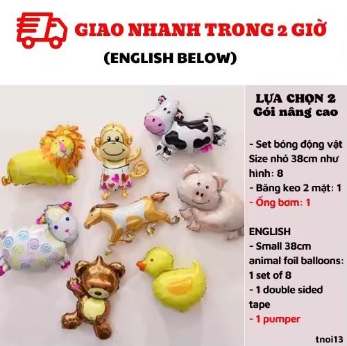 - Small 38cm animal foil balloons: 1 set of 8