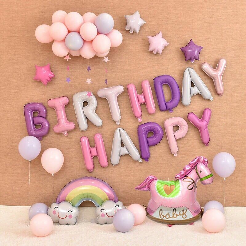 English: Combo balloon 297k now only 189k. Including: 20 latex balloons and string to make group balloon as photo+ 1 birthday set+ 1 big rain bow+ 1 small horse baby+ 4 stars+ 1 tape