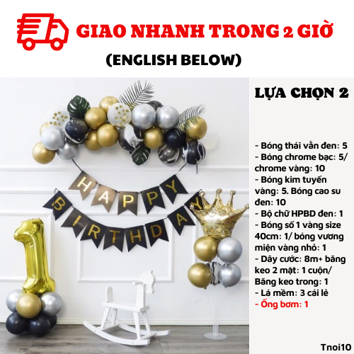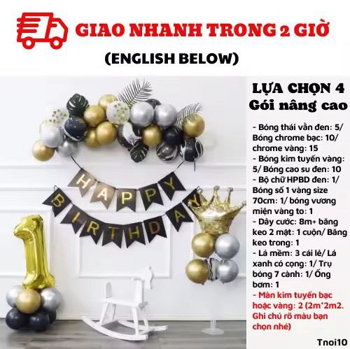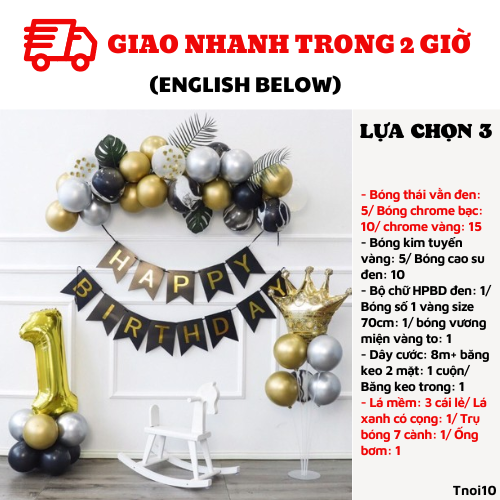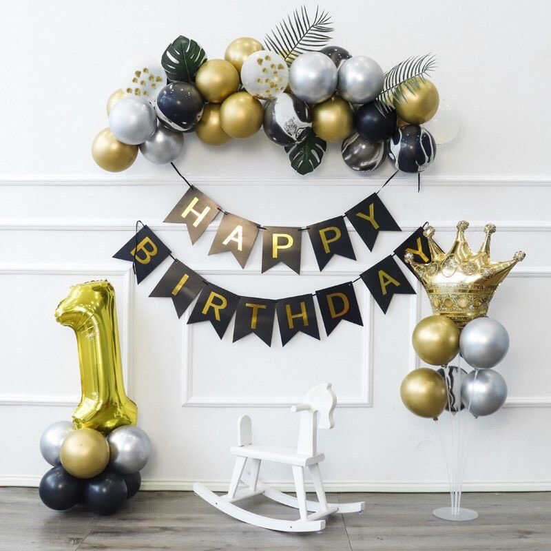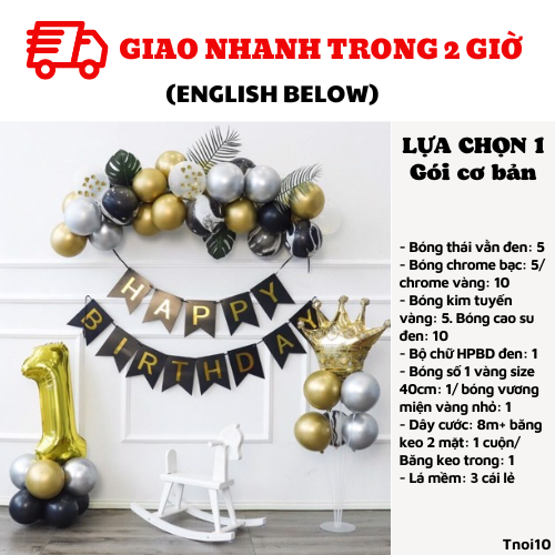 - Bộ chữ HPBD đen: 1/ Bóng số 1 vàng size 70cm: 1/ bóng vương miện vàng to: 1