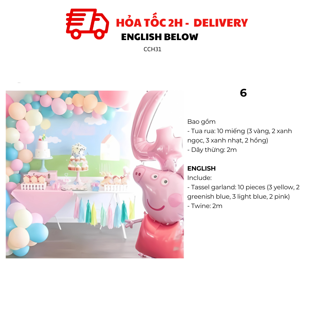Bổ sung thêm bộ bóng Heo Peppa màu xanh trang trí tiệc bé gái cùng những chi tiết nhỏ như dây cờ HPBD nhiều mẫu hay ruy băng sẽ giúp không gian trở nên lung linh hơn, sẵn sàng cho những bức ảnh kỷ niệm đáng yêu!