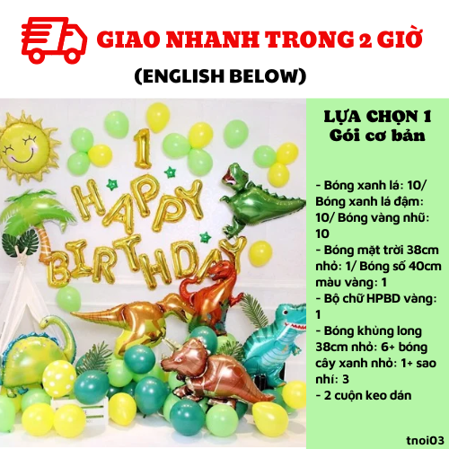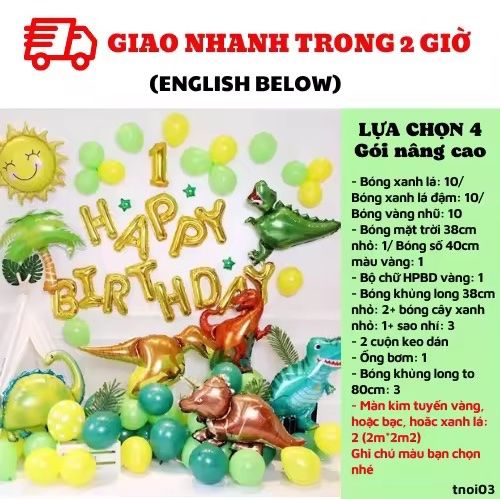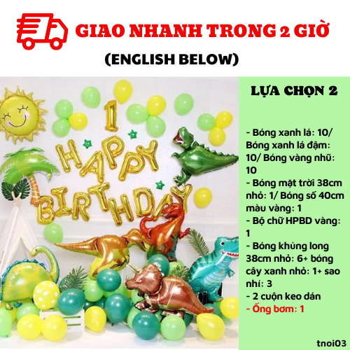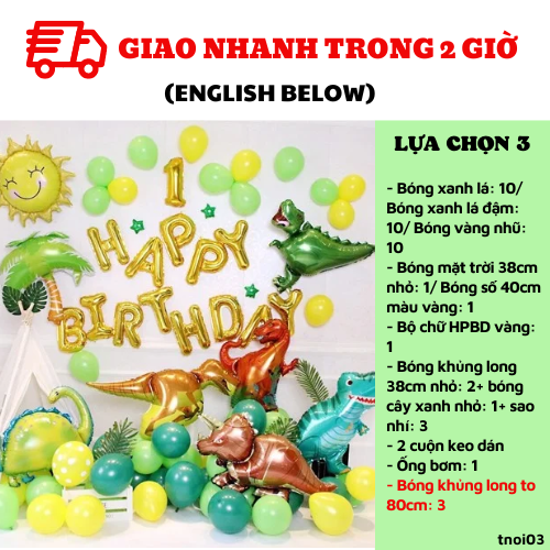 - Bóng khủng long 38cm nhỏ: 2+ bóng cây xanh nhỏ: 1+ sao nhí: 3