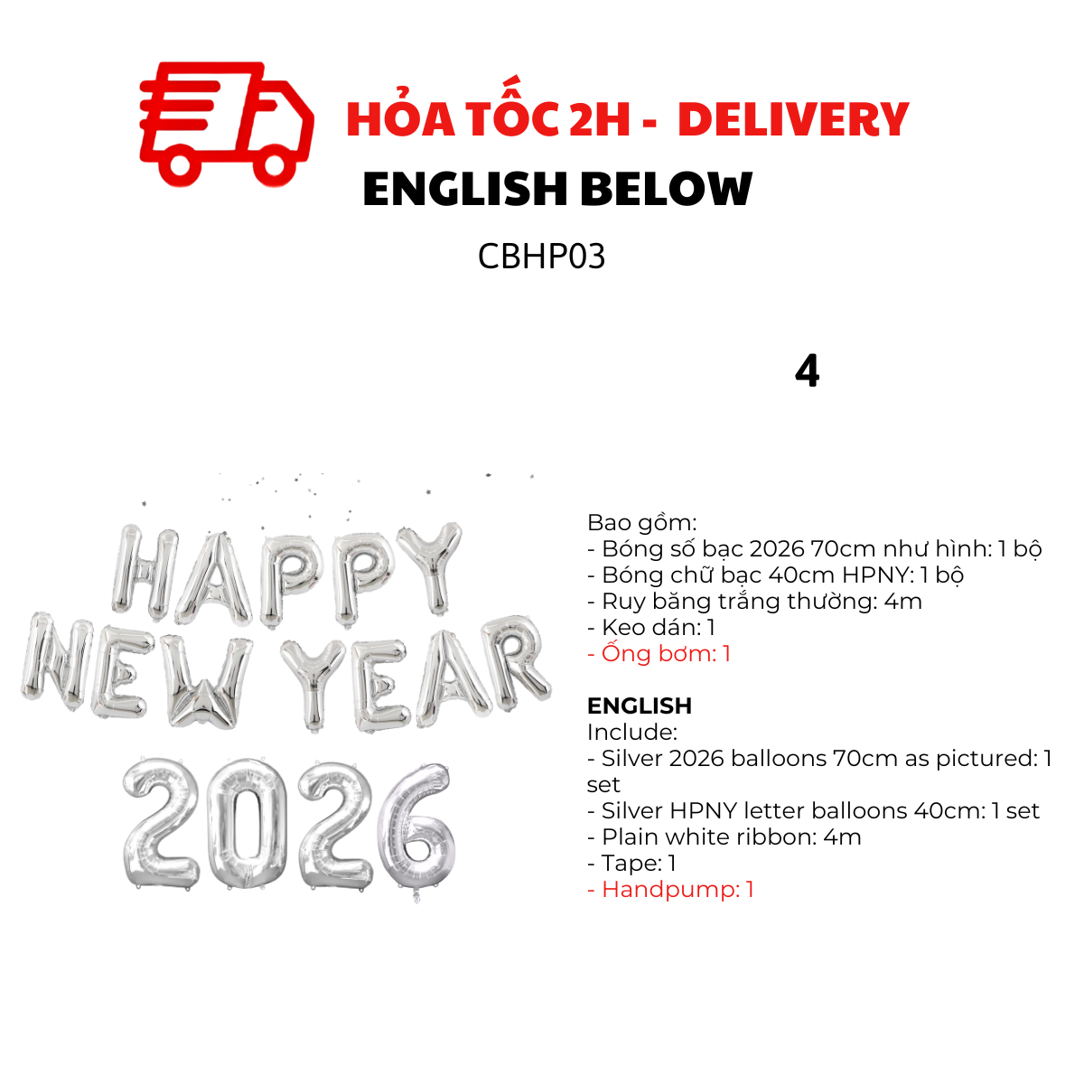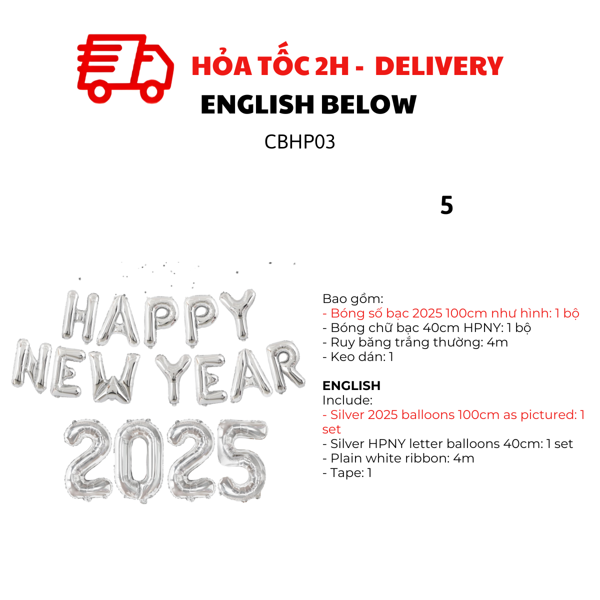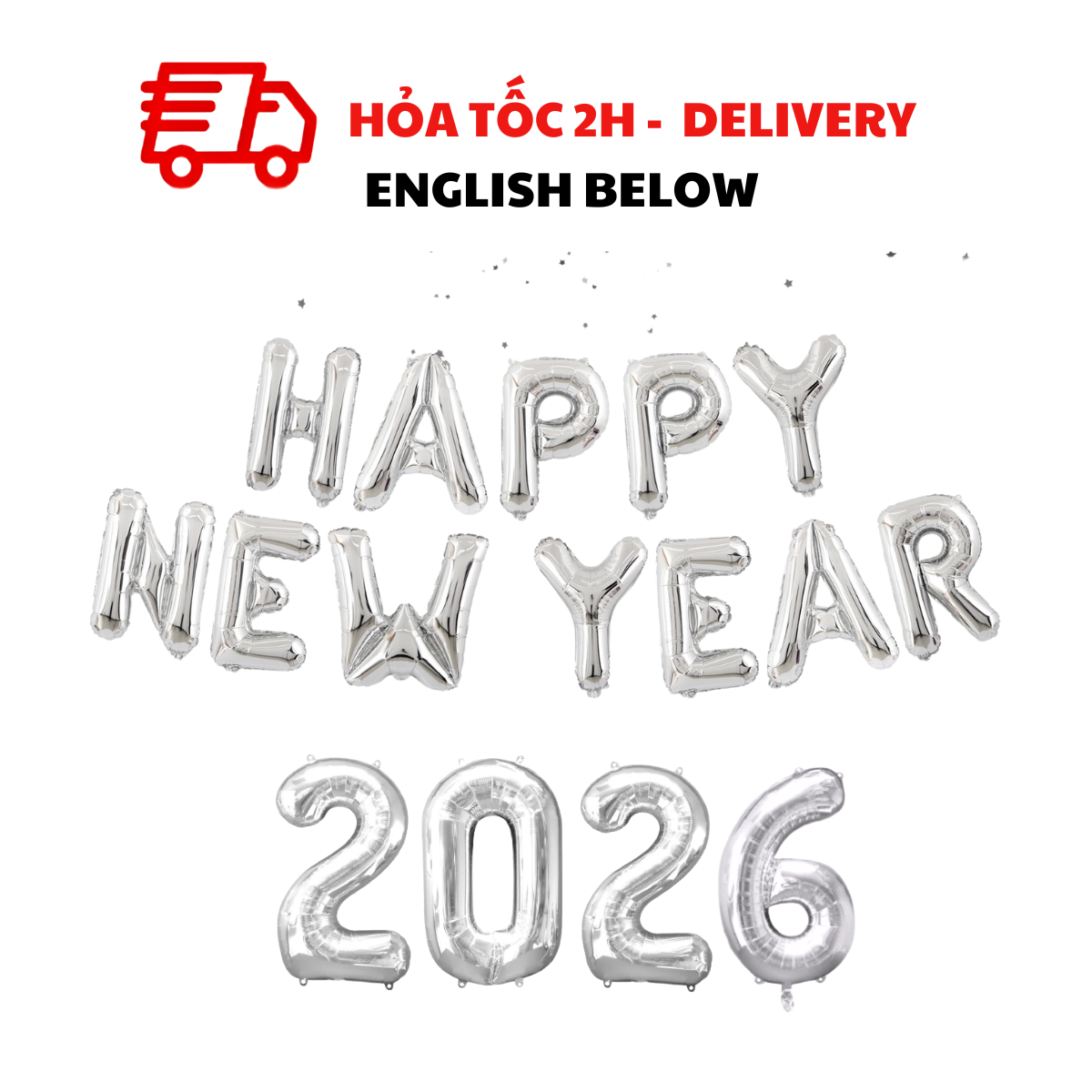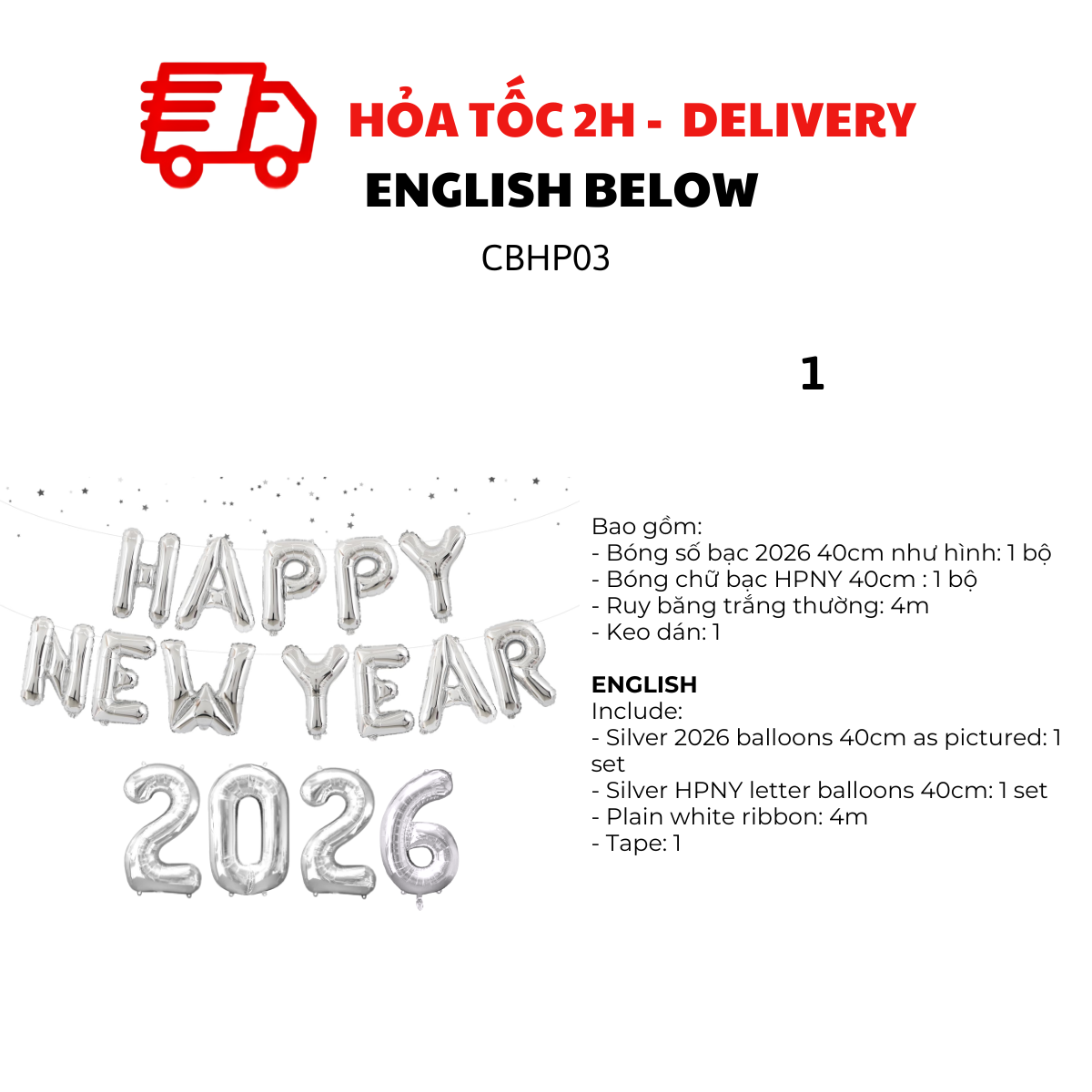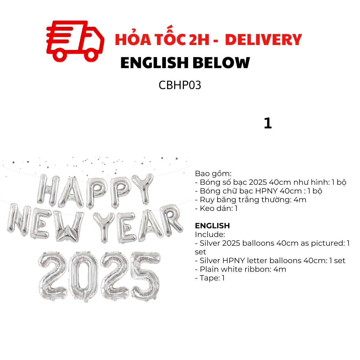- Bộ chữ bạc 40cm Happy New Year: 1 bộ