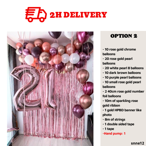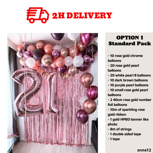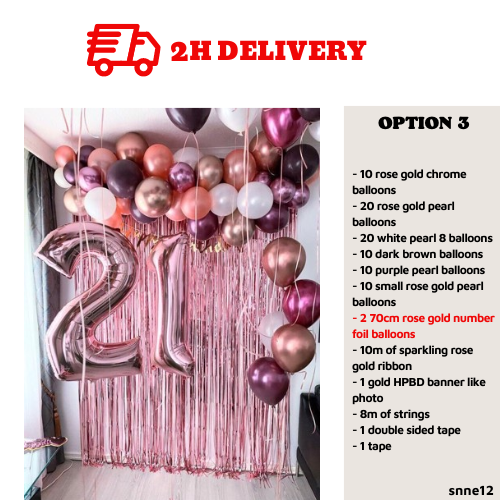 - 2 70cm rose gold number foil balloons (Please note down your choice)