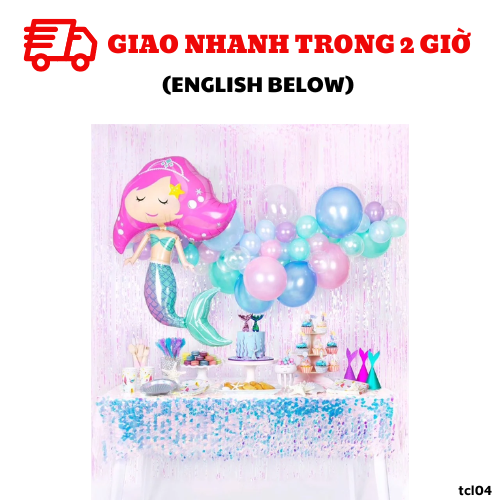 - 70cm Big mermaid foil balloon: 1 (if this mermaid out of stock, we’ll change another mermaid)