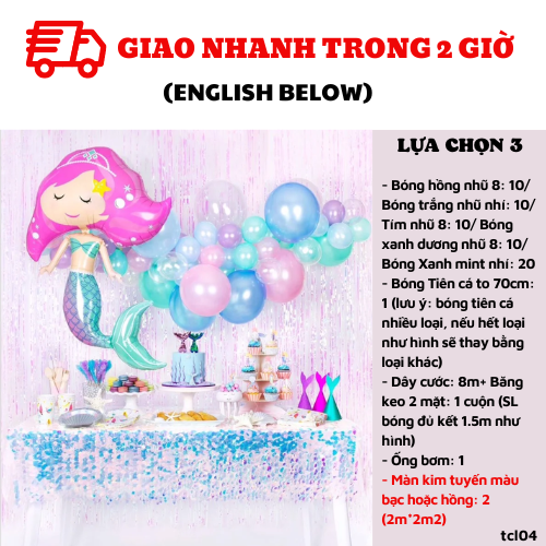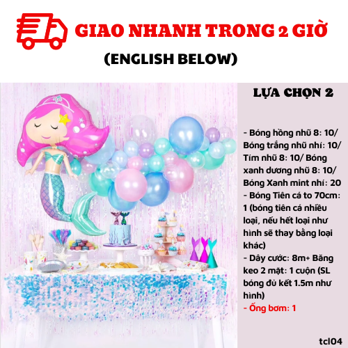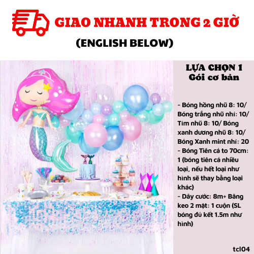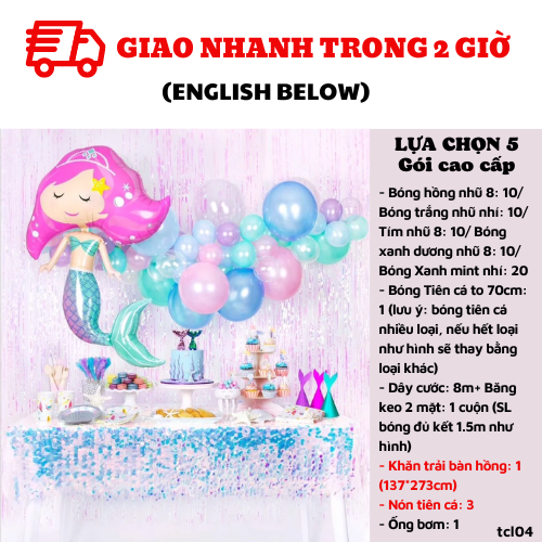 - Bóng Tiên cá to 70cm: 1 (lưu ý: bóng tiên cá nhiều loại, nếu hết loại như hình sẽ thay bằng loại khác)
