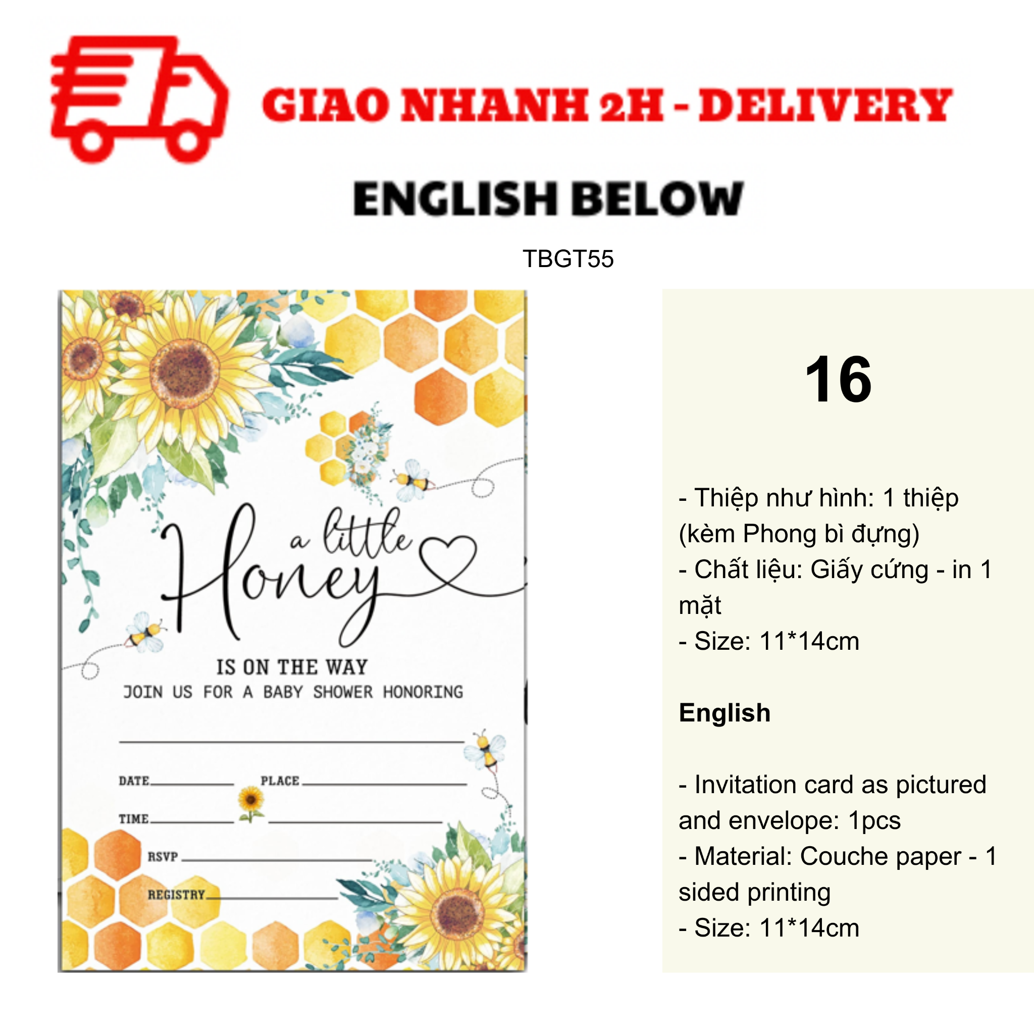 - Thiệp như hình: 1 thiệp (kèm Phong bì đựng)