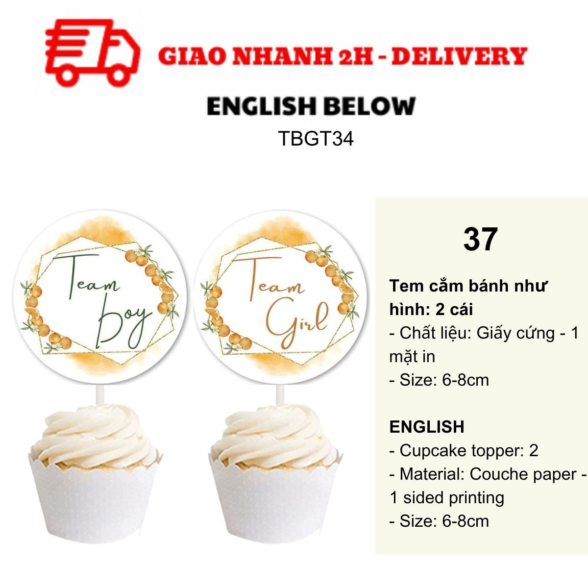 OPTION 15 - 37: 2 CUPCAKE TOPPER