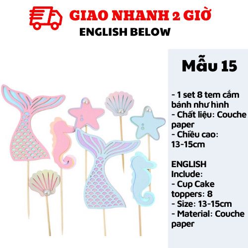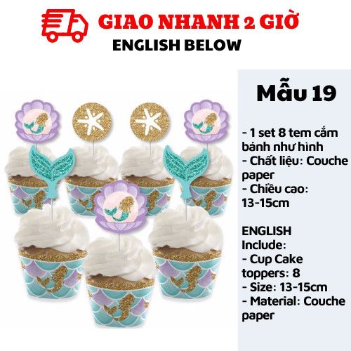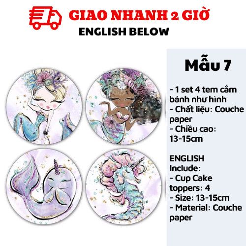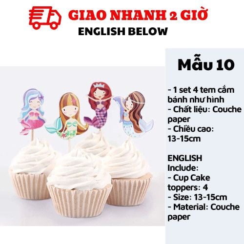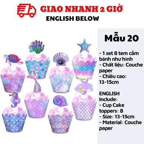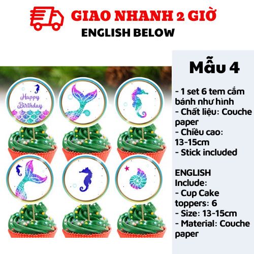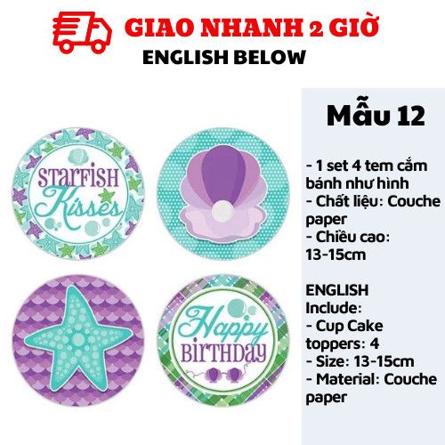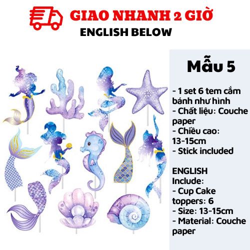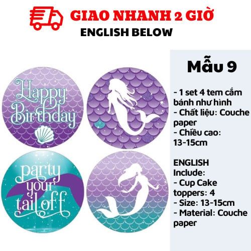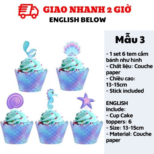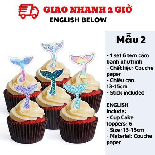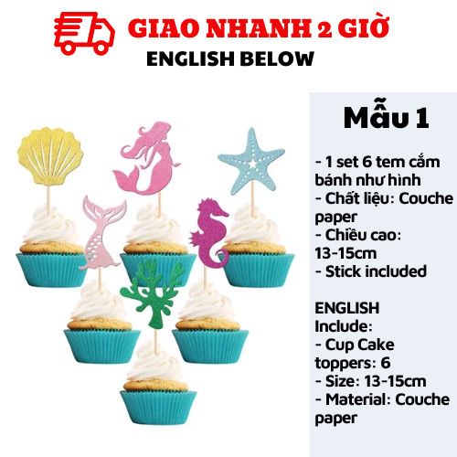 TEM CẮM BÁNH TIÊN CÁ - MERMAID CUPCAKE TOPPERS