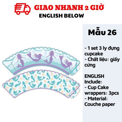 Mẫu 26: BỘ 3 LY ĐỰNG CUPCAKE TIÊN CÁ