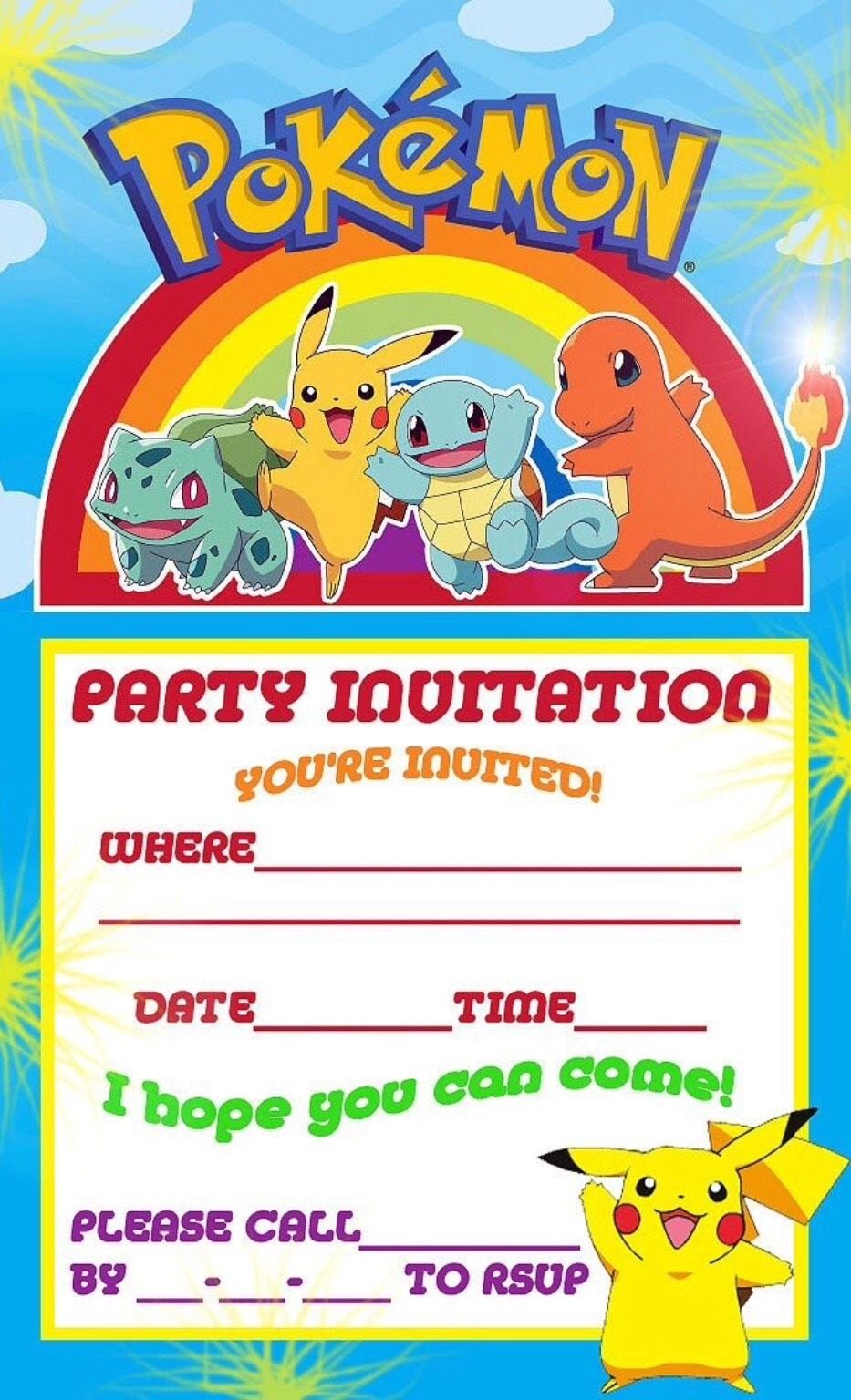 Thiệp mời Pokemon Invitation Card ivtc 24