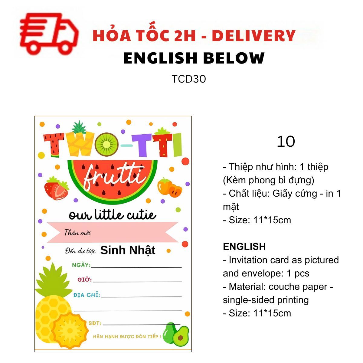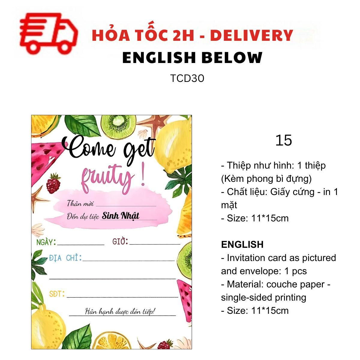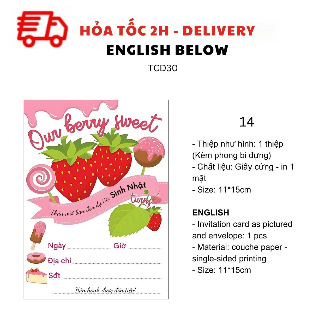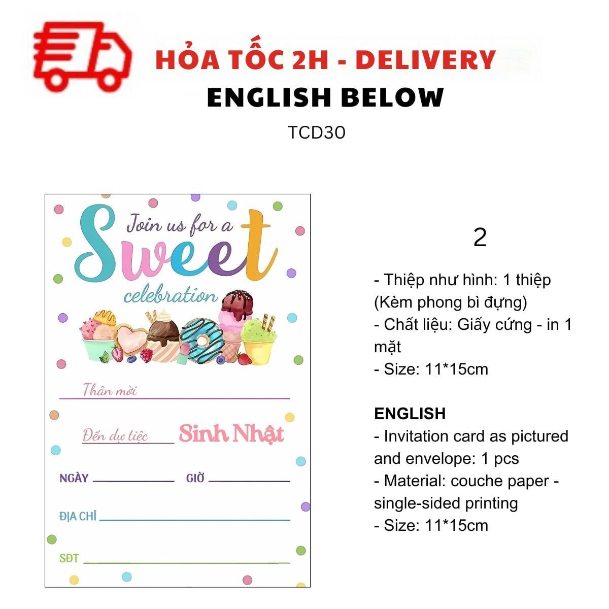 THIỆP MỜI SINH NHẬT CHỦ ĐỀ BÁNH DONUT, BÁNH NGỌT, TRÁI CÂY NHIỀU MẪU TIẾNG VIỆT TCD30