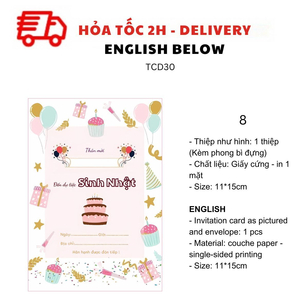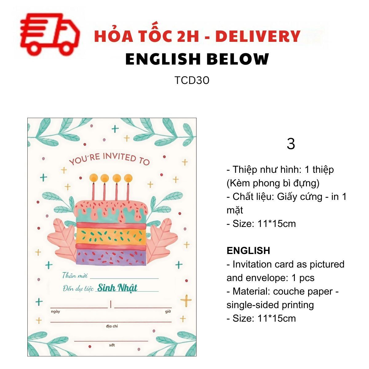 - Chất liệu: Giấy cứng - in 1 mặt