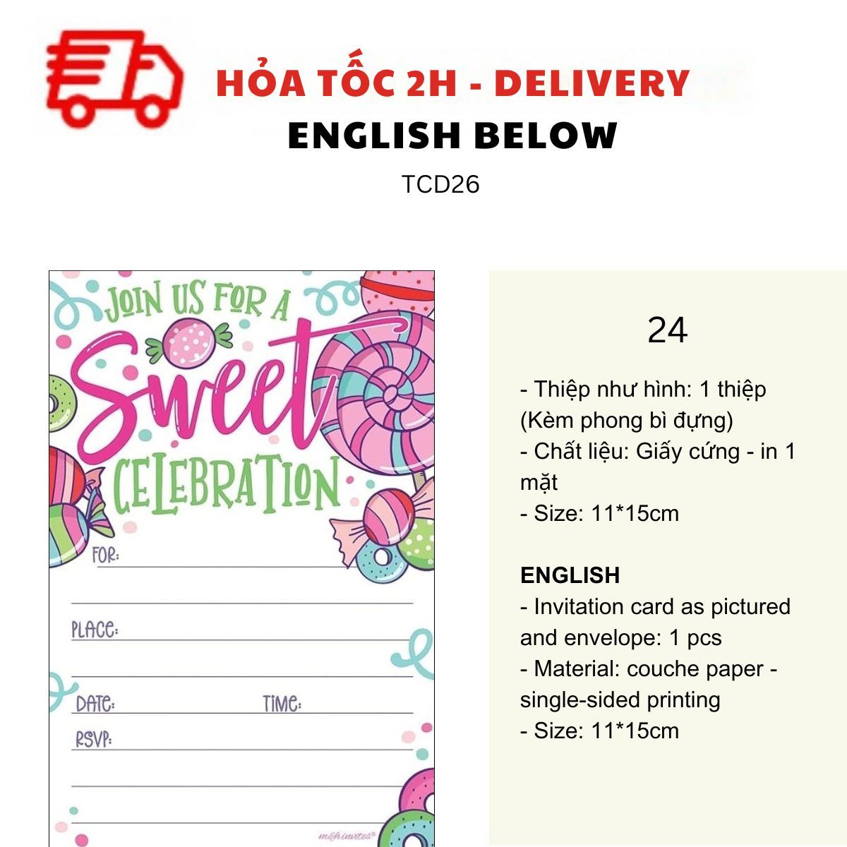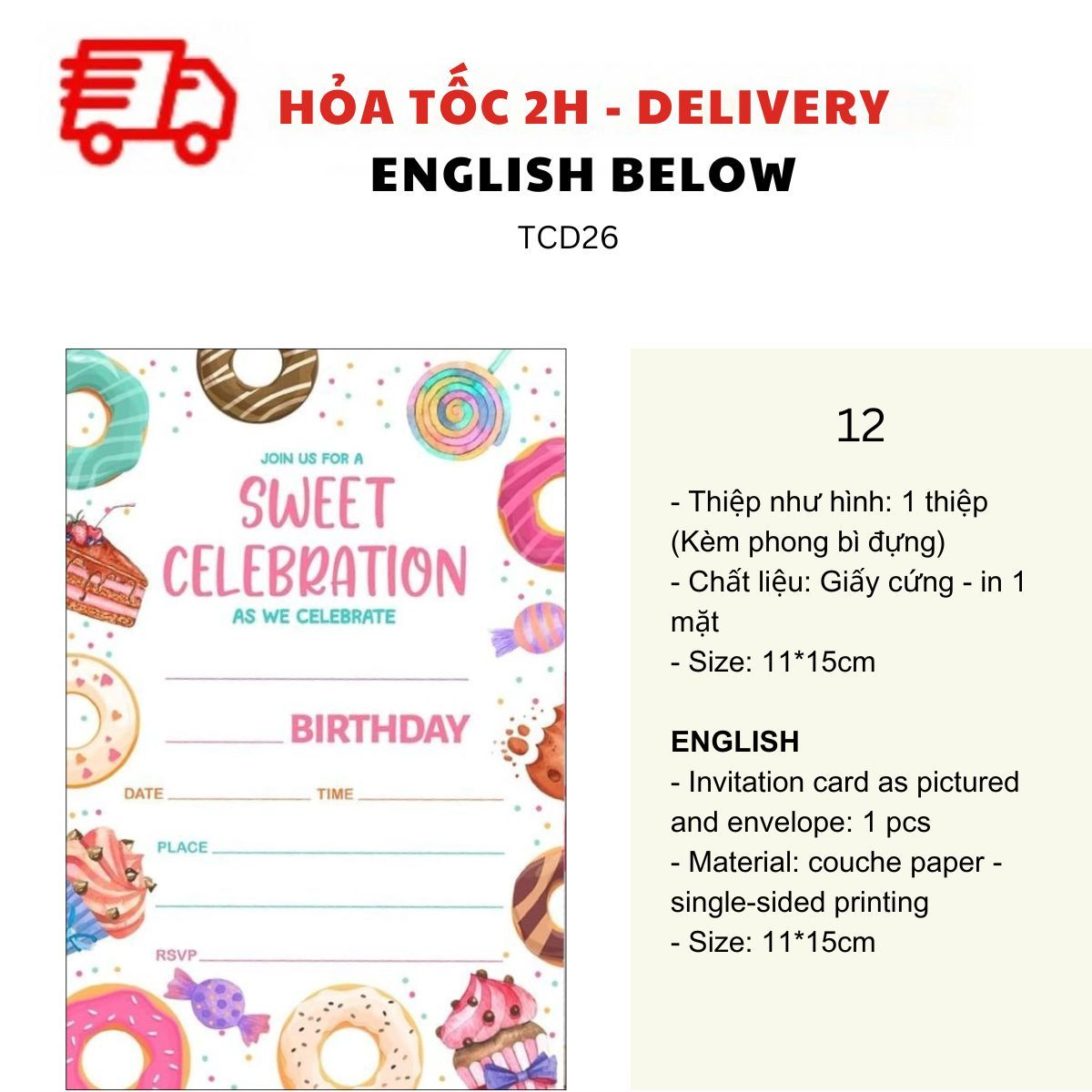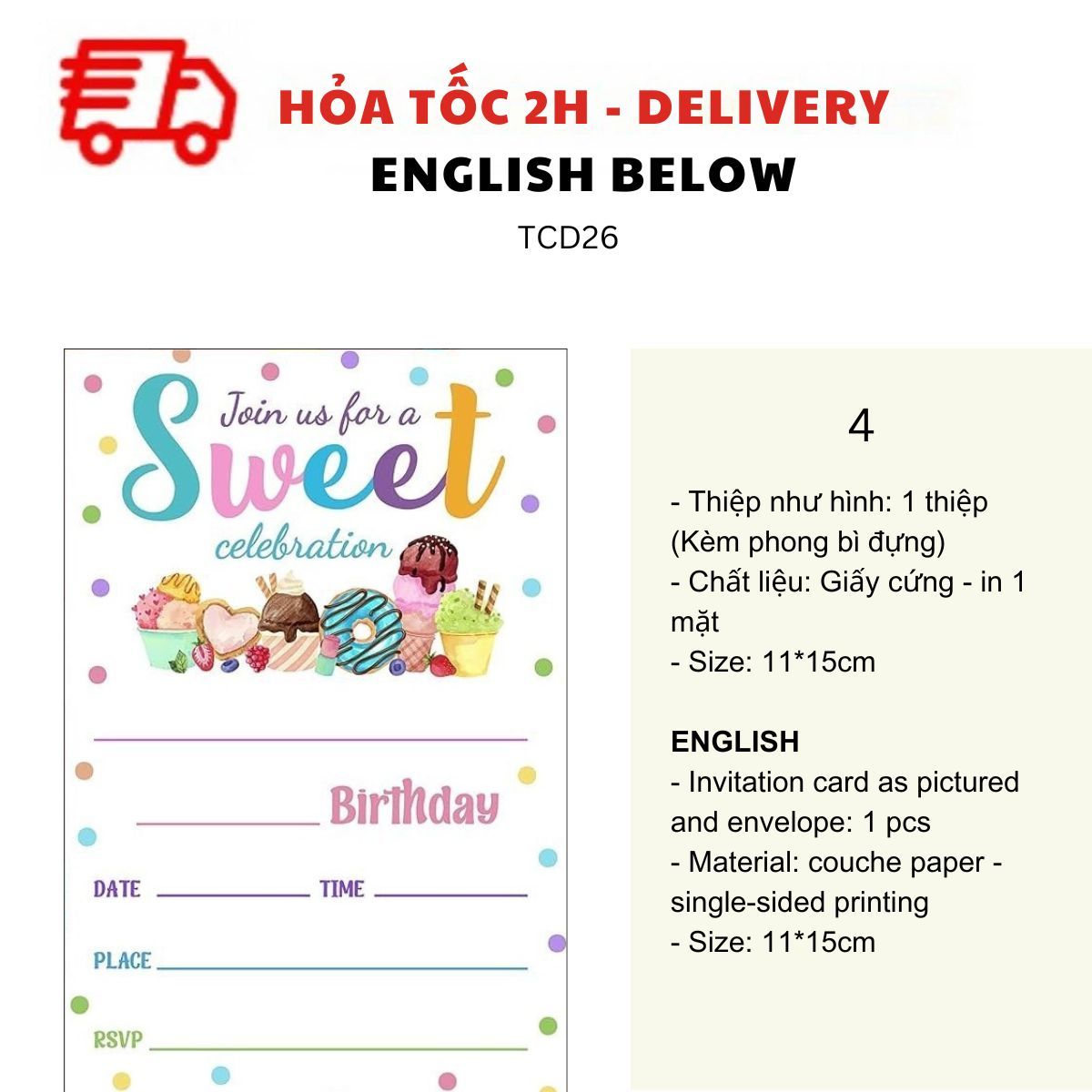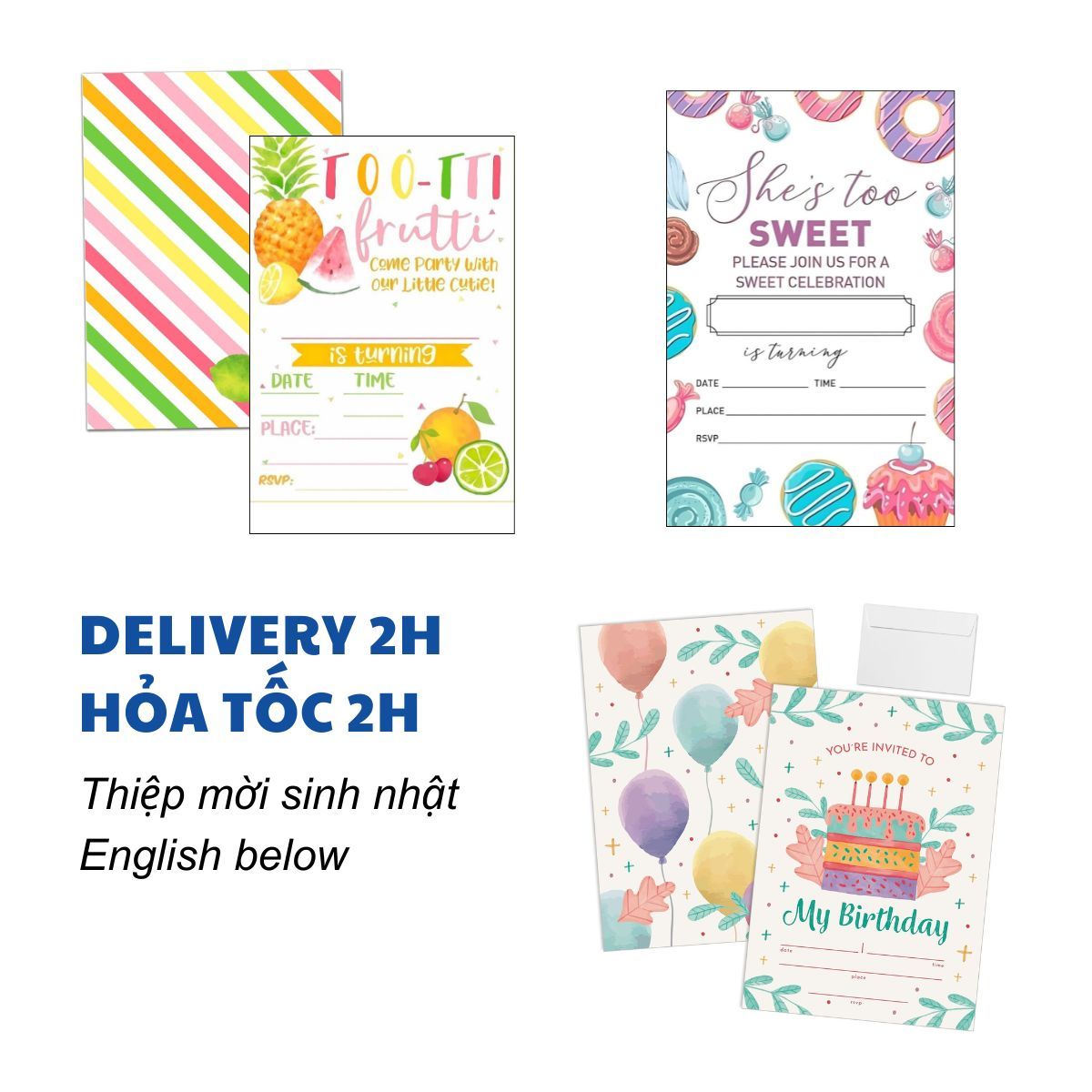 THIỆP MỜI SINH NHẬT CHỦ ĐỀ BÁNH NGỌT NHIỀU MẪU - SWEET BIRTHDAY INVITATION CARD MULTIPLE OPTIONS TCD26