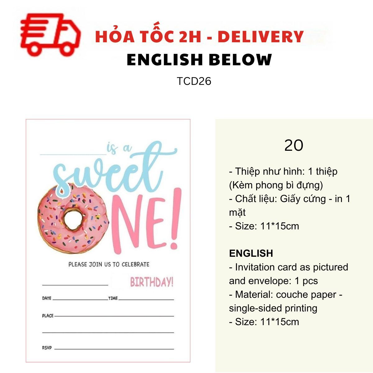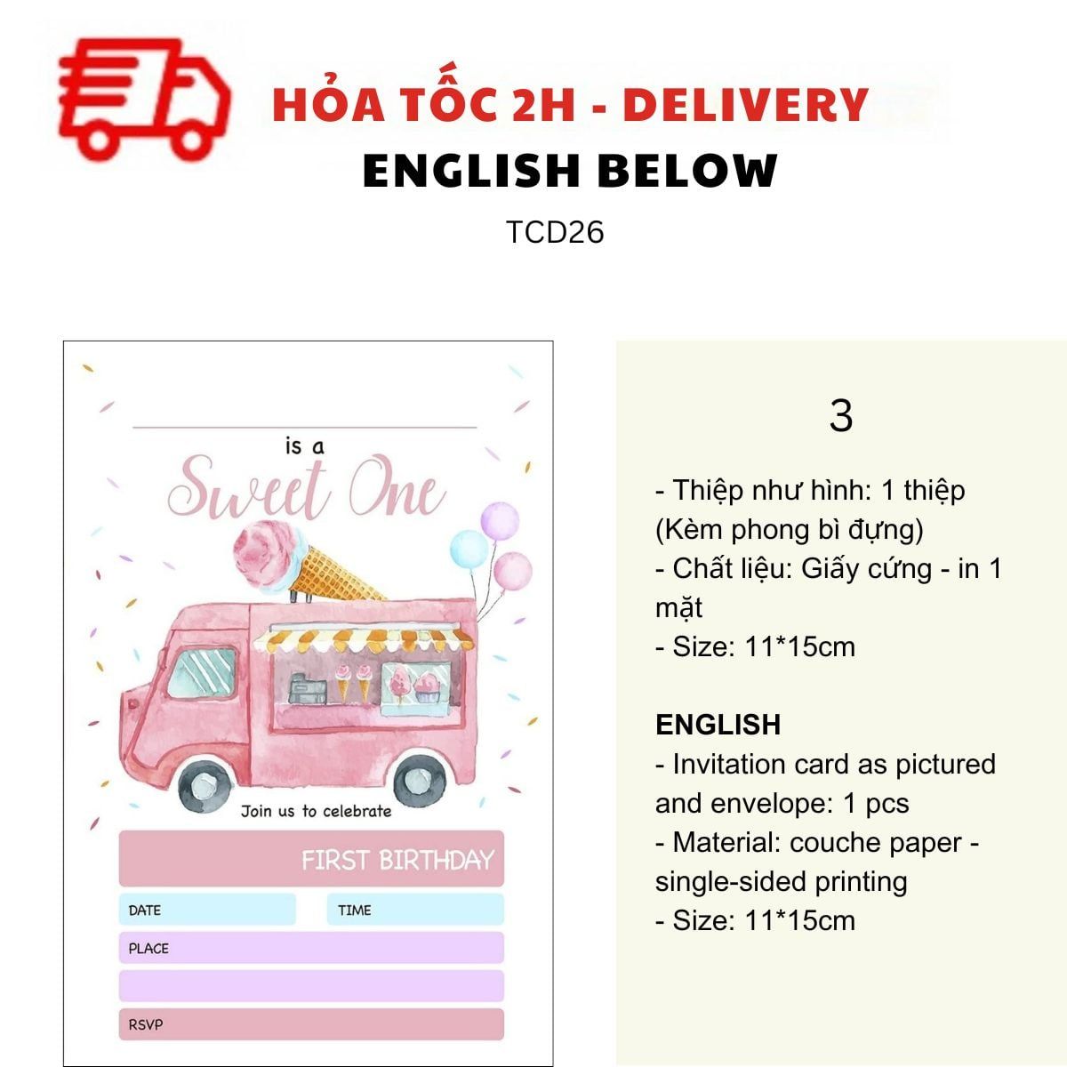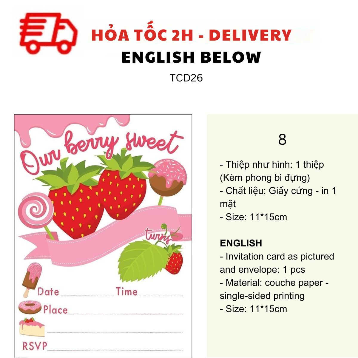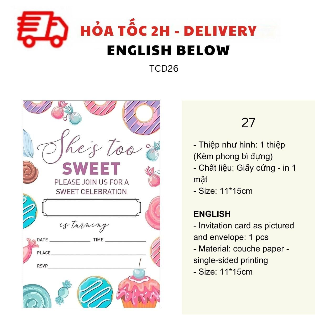 THIỆP MỜI SINH NHẬT CHỦ ĐỀ BÁNH NGỌT NHIỀU MẪU - SWEET BIRTHDAY INVITATION CARD MULTIPLE OPTIONS TCD26