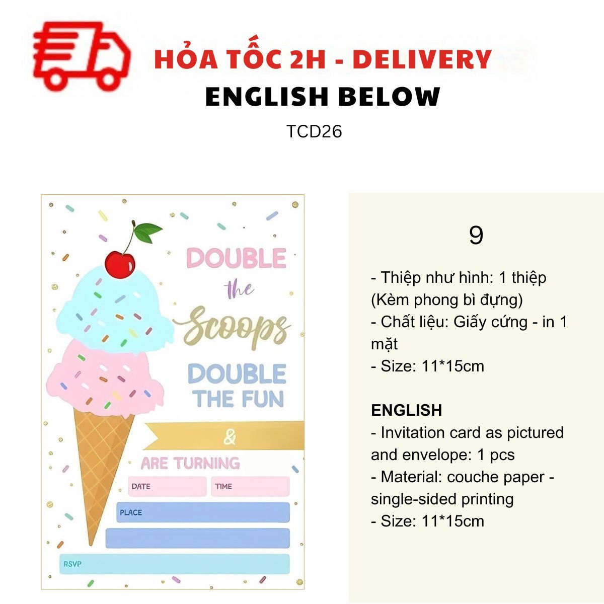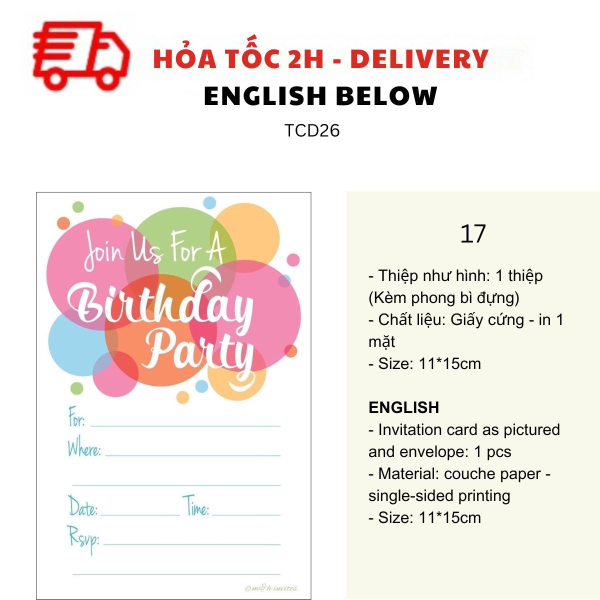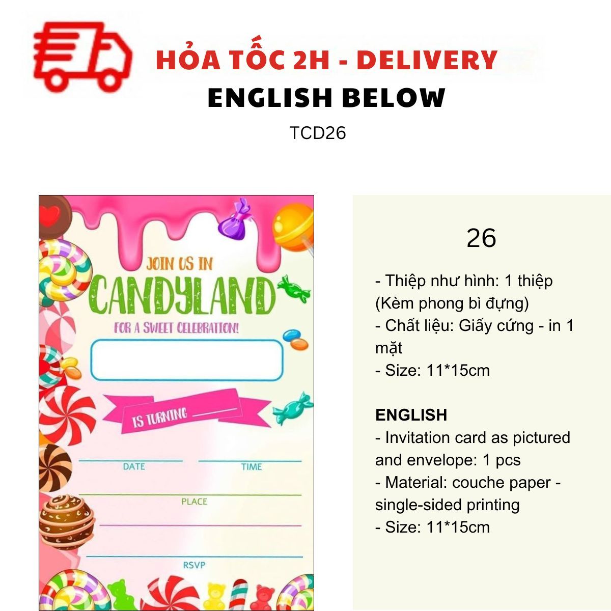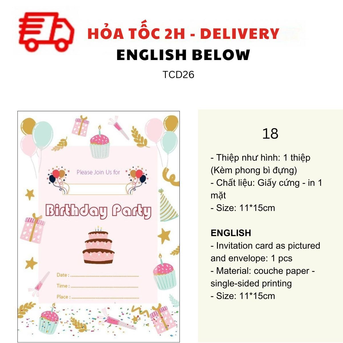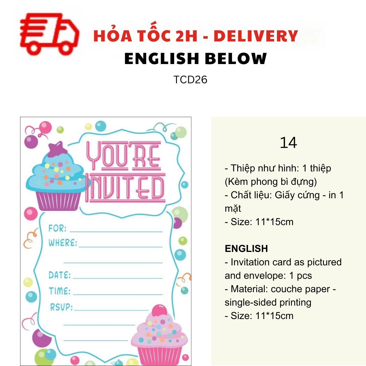 THIỆP MỜI SINH NHẬT CHỦ ĐỀ BÁNH NGỌT NHIỀU MẪU - SWEET BIRTHDAY INVITATION CARD MULTIPLE OPTIONS TCD26