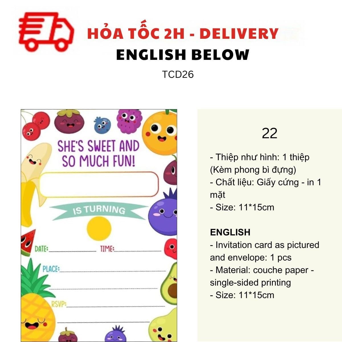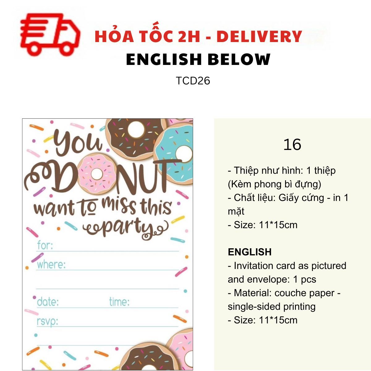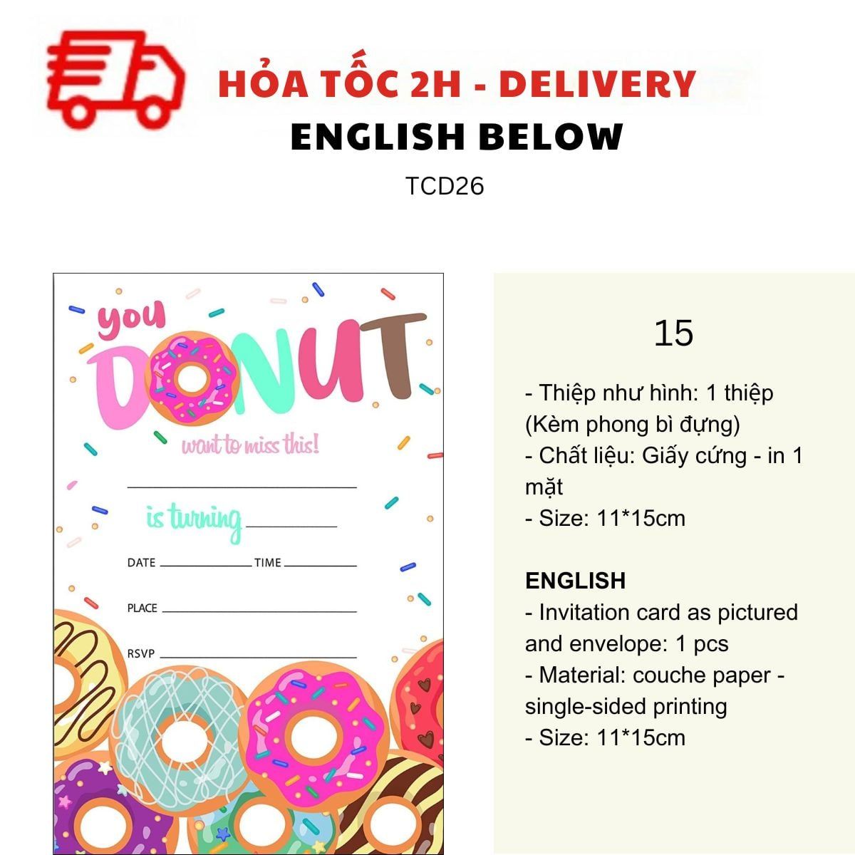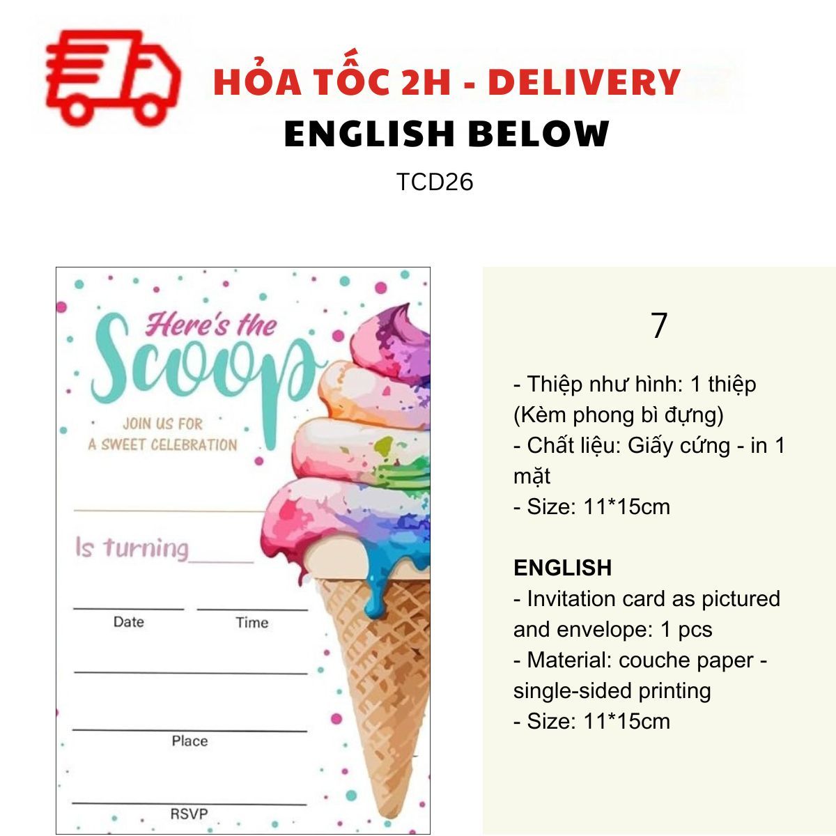 THIỆP MỜI SINH NHẬT CHỦ ĐỀ BÁNH NGỌT NHIỀU MẪU - SWEET BIRTHDAY INVITATION CARD MULTIPLE OPTIONS TCD26