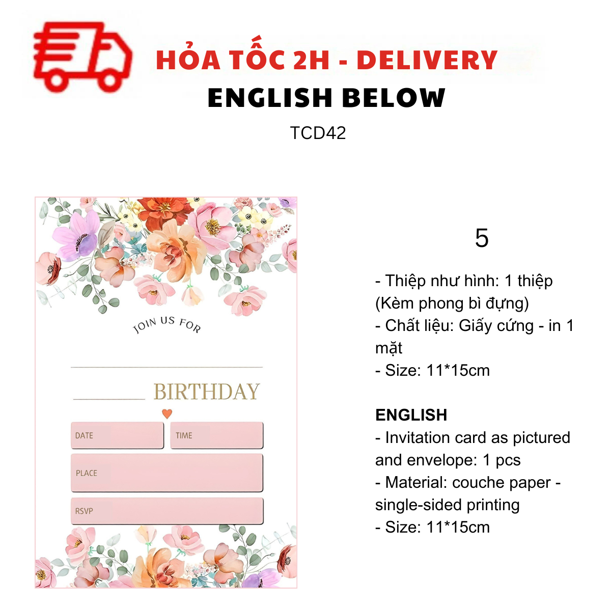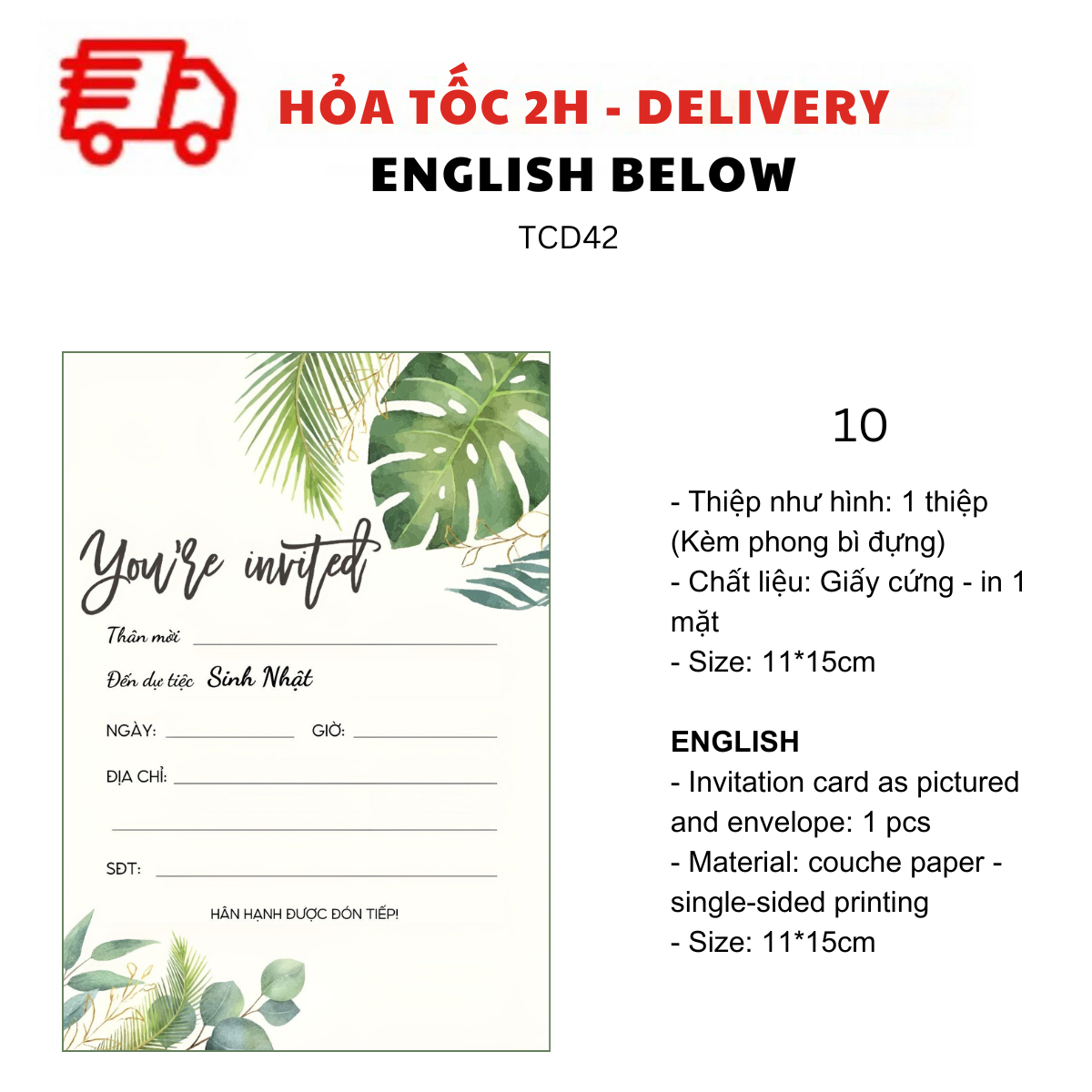 THIỆP MỜI SINH NHẬT CHỦ ĐỀ HOA LÁ TCD42
